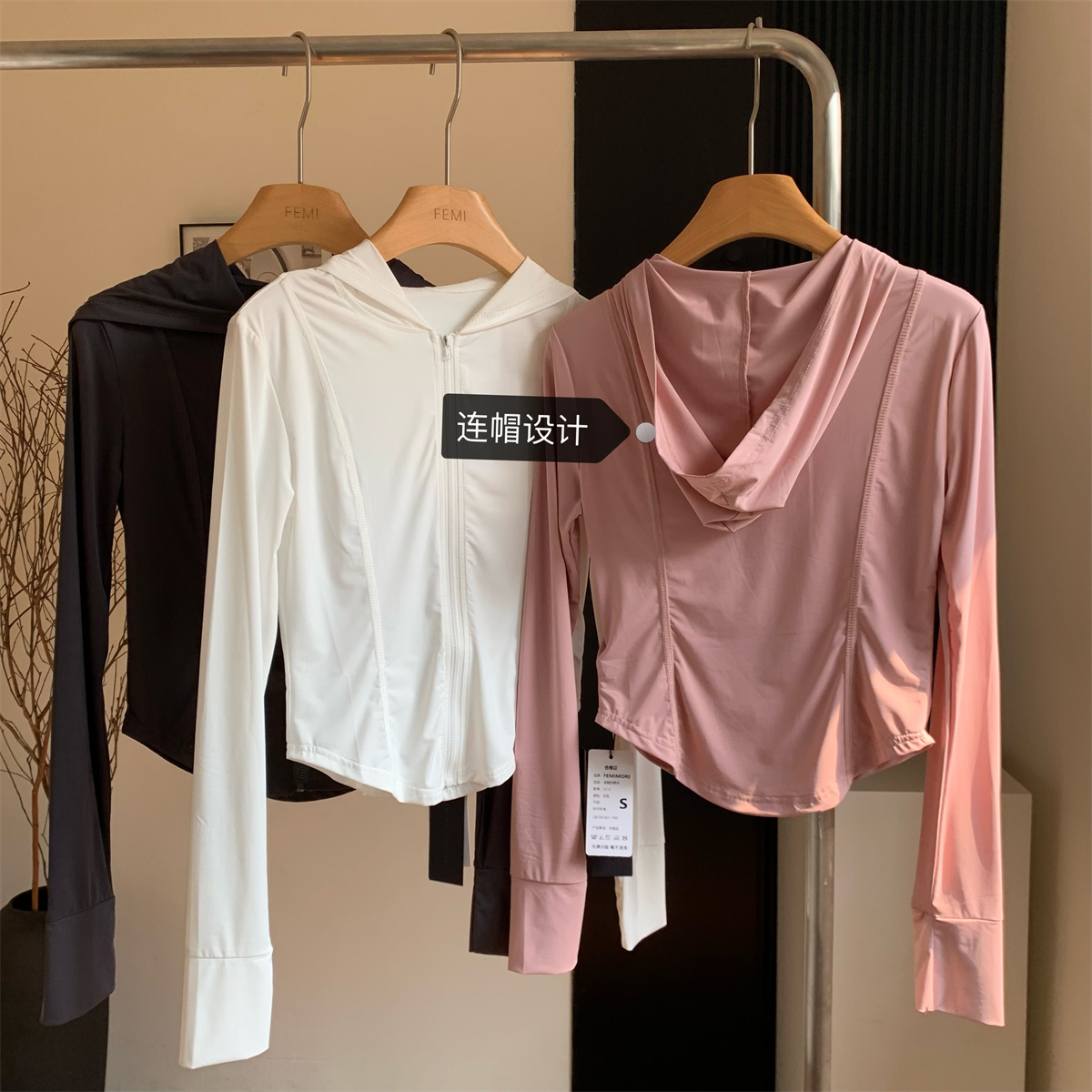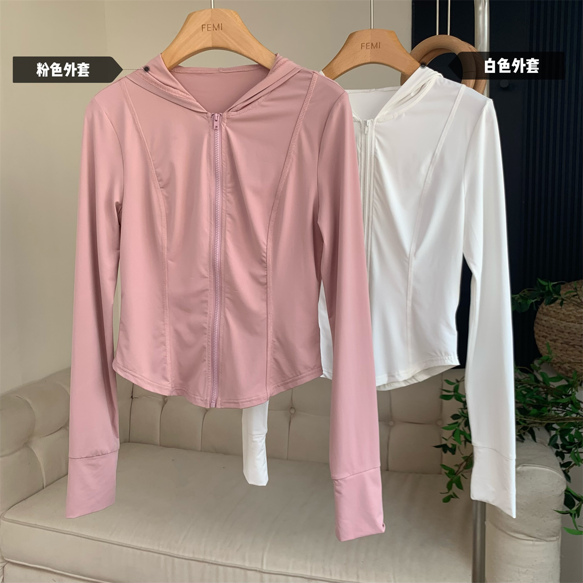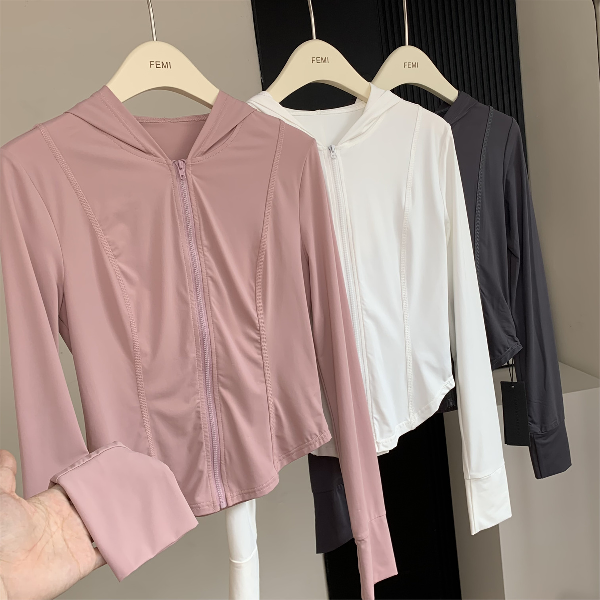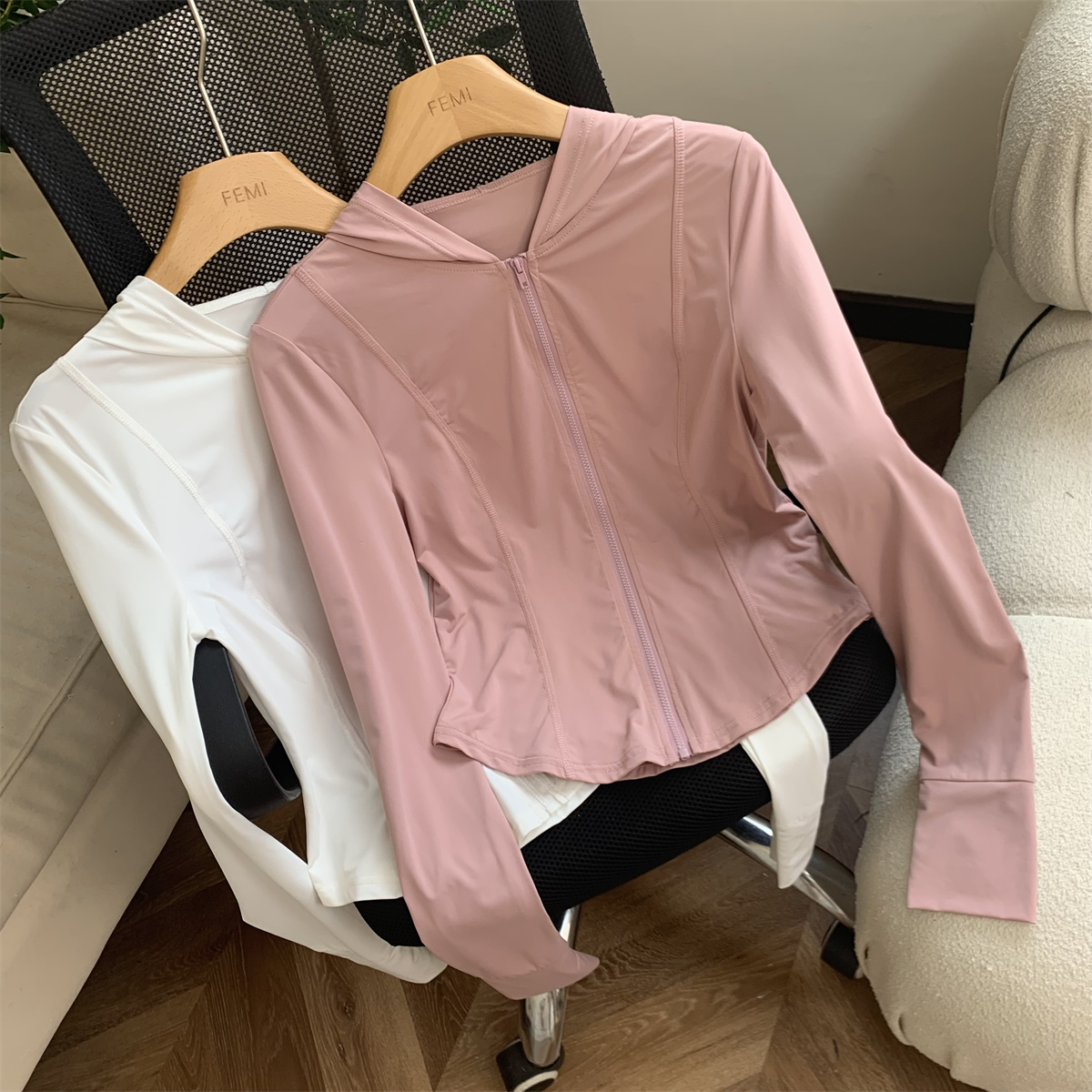 夏季防曬衣女2023新款輕薄冰絲運動健身透氣修身顯瘦連帽短款外套