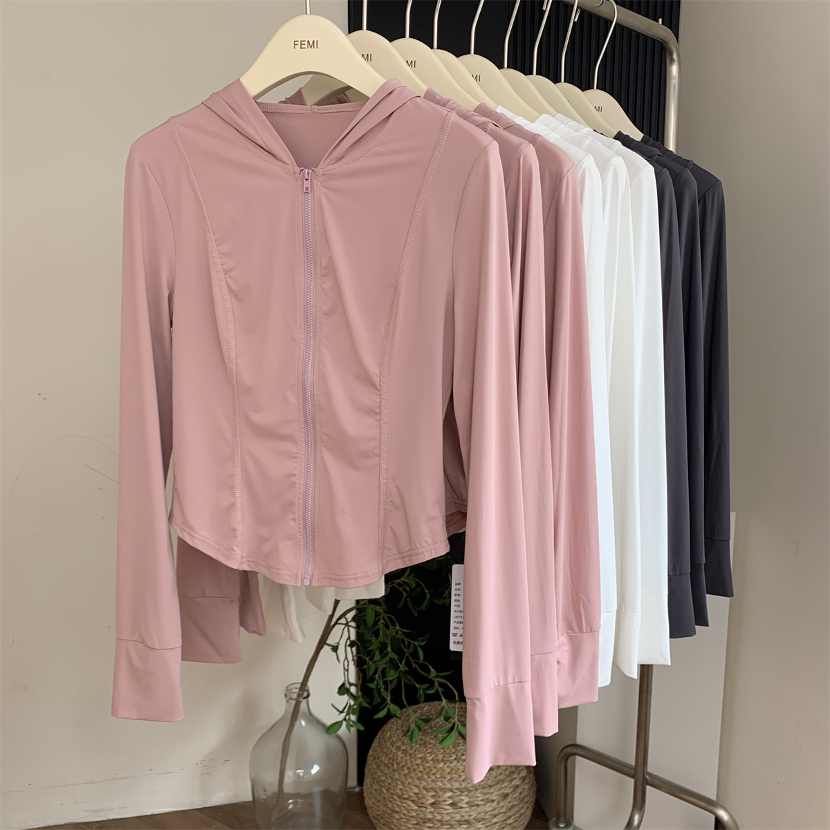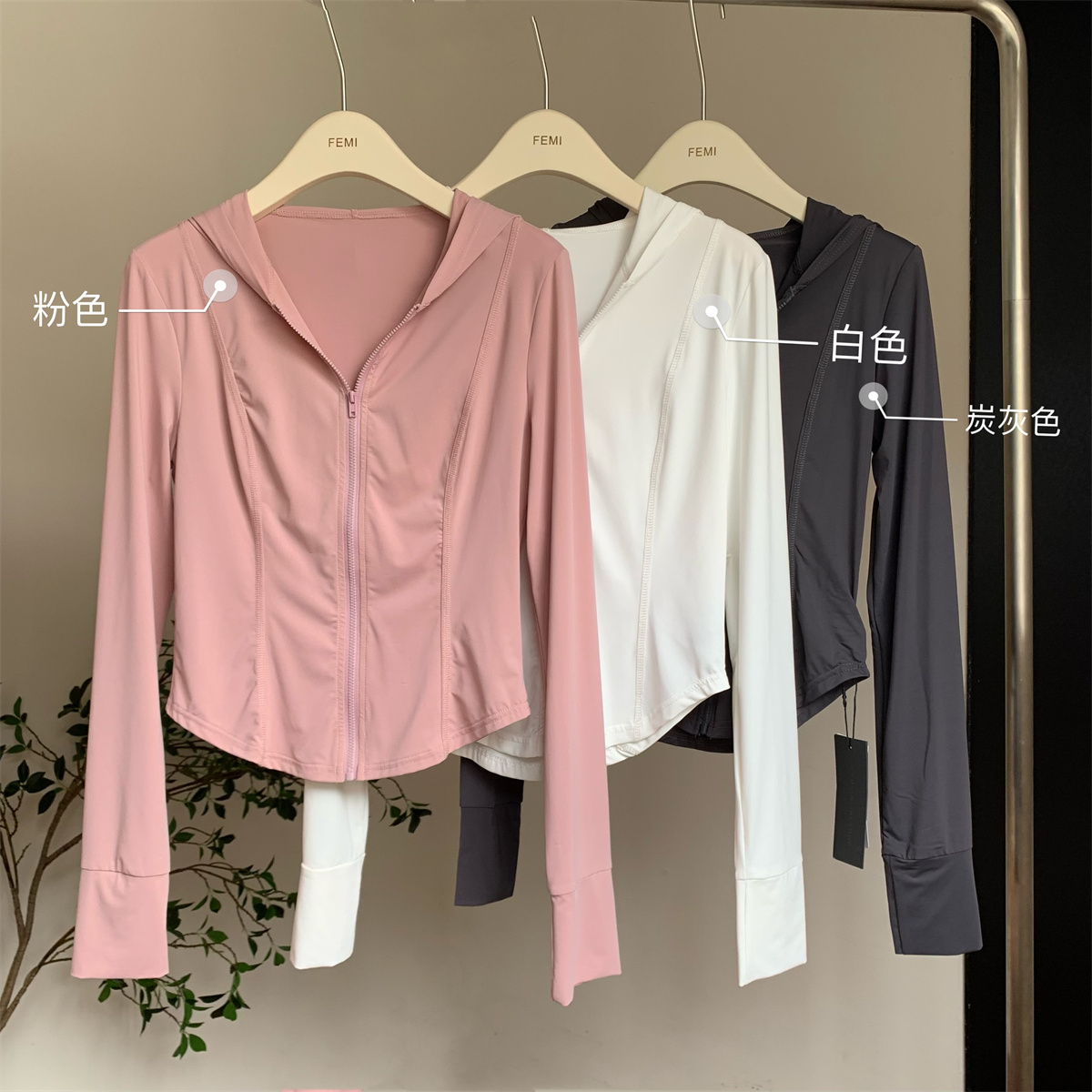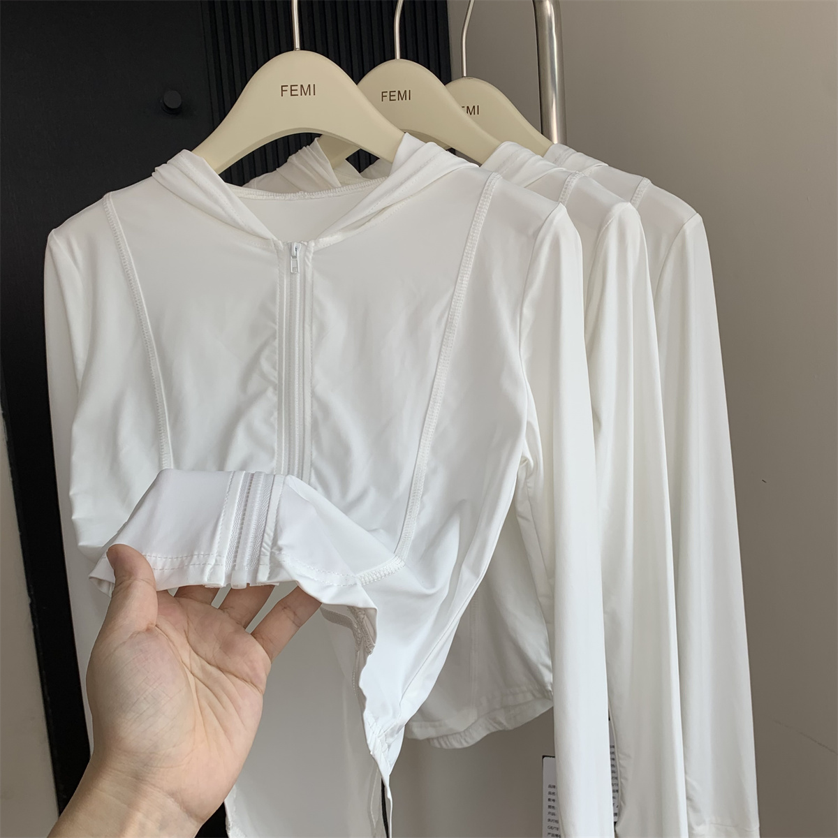 夏季防曬衣女2023新款輕薄冰絲運動健身透氣修身顯瘦連帽短款外套