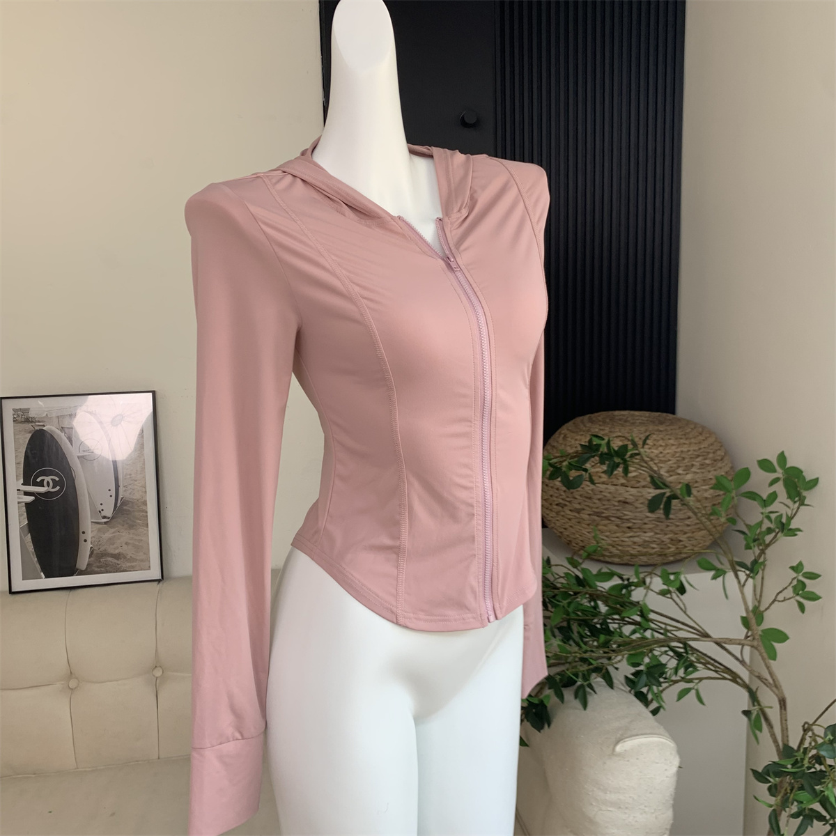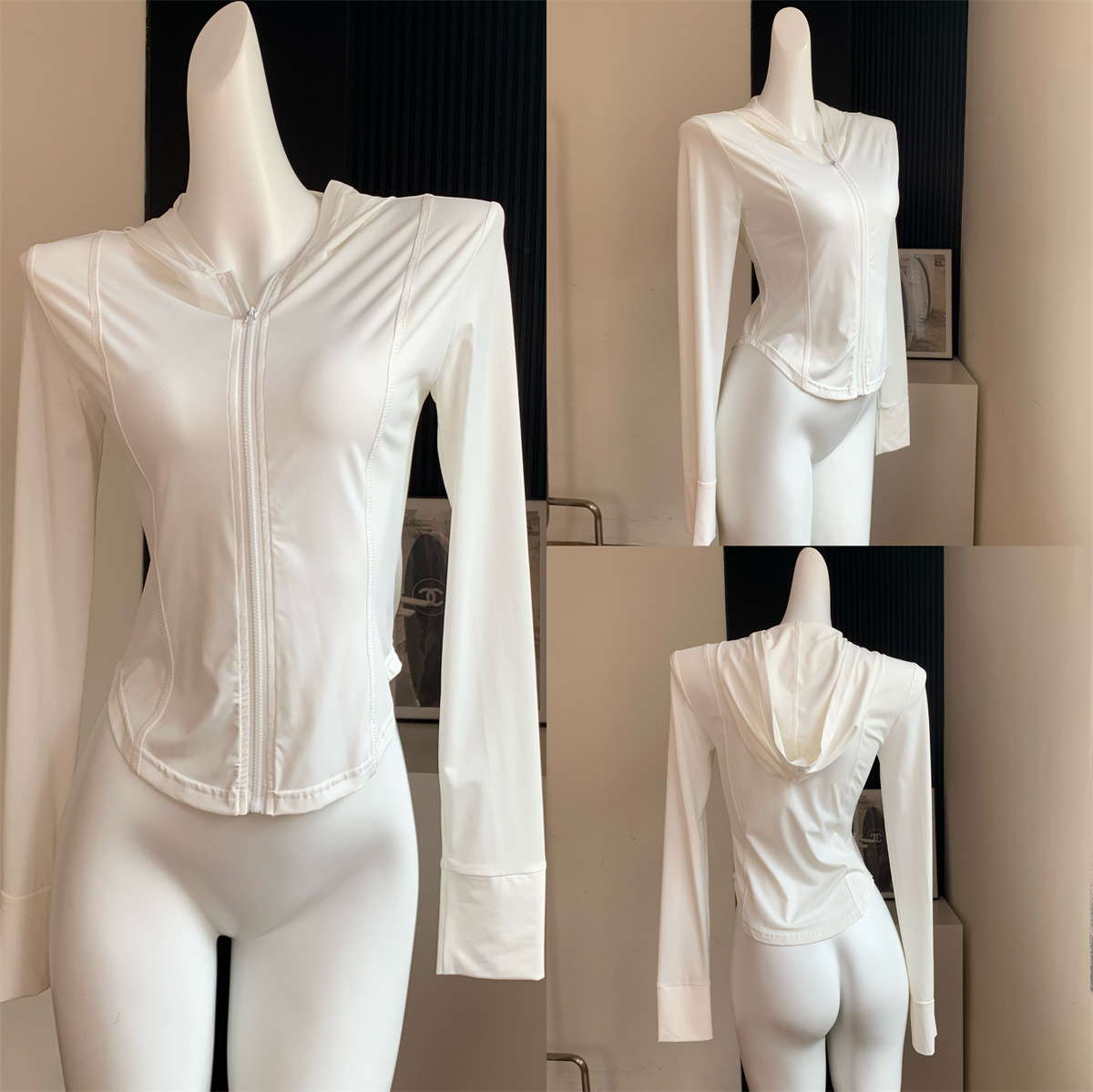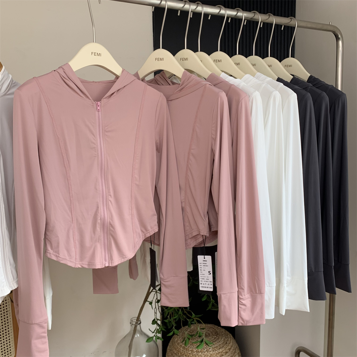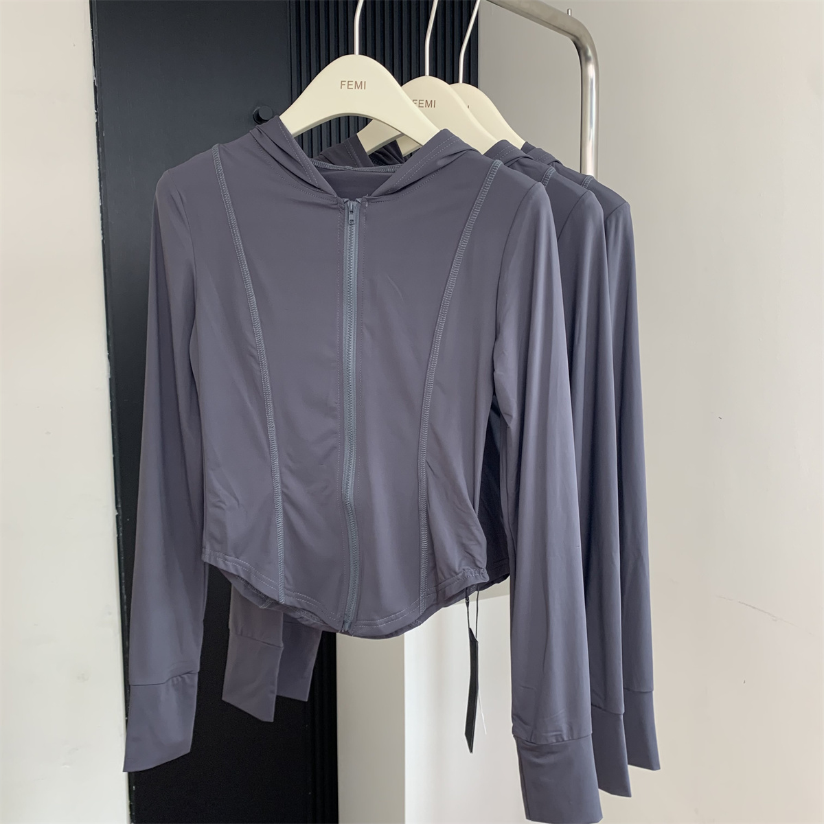 夏季防曬衣女2023新款輕薄冰絲運動健身透氣修身顯瘦連帽短款外套