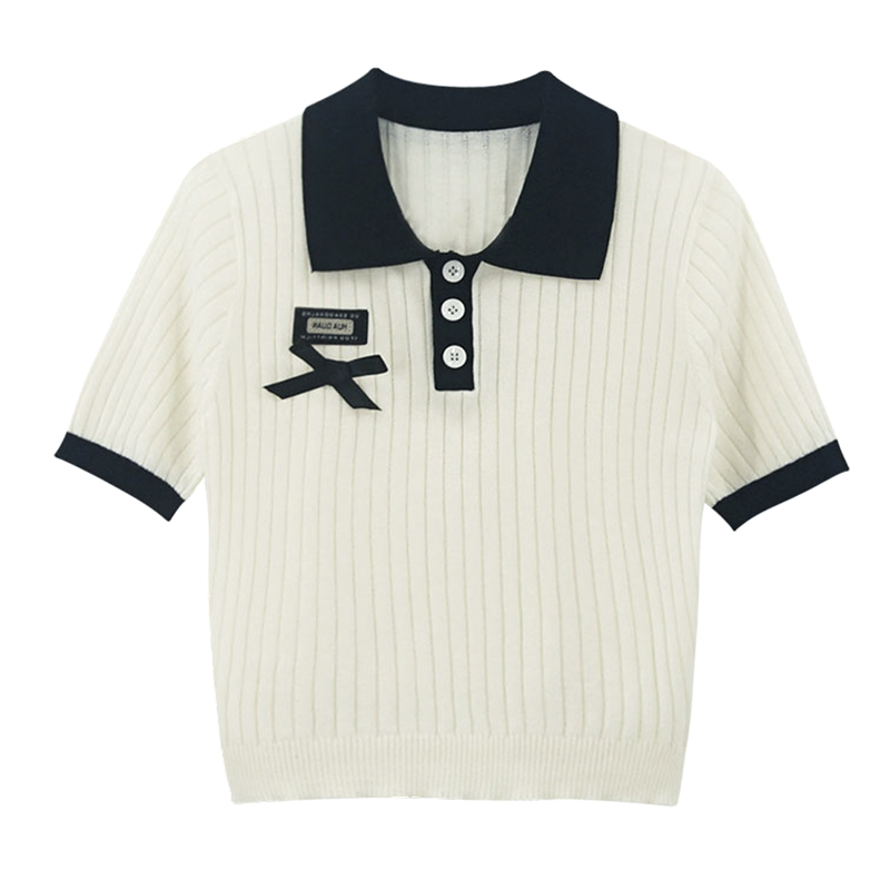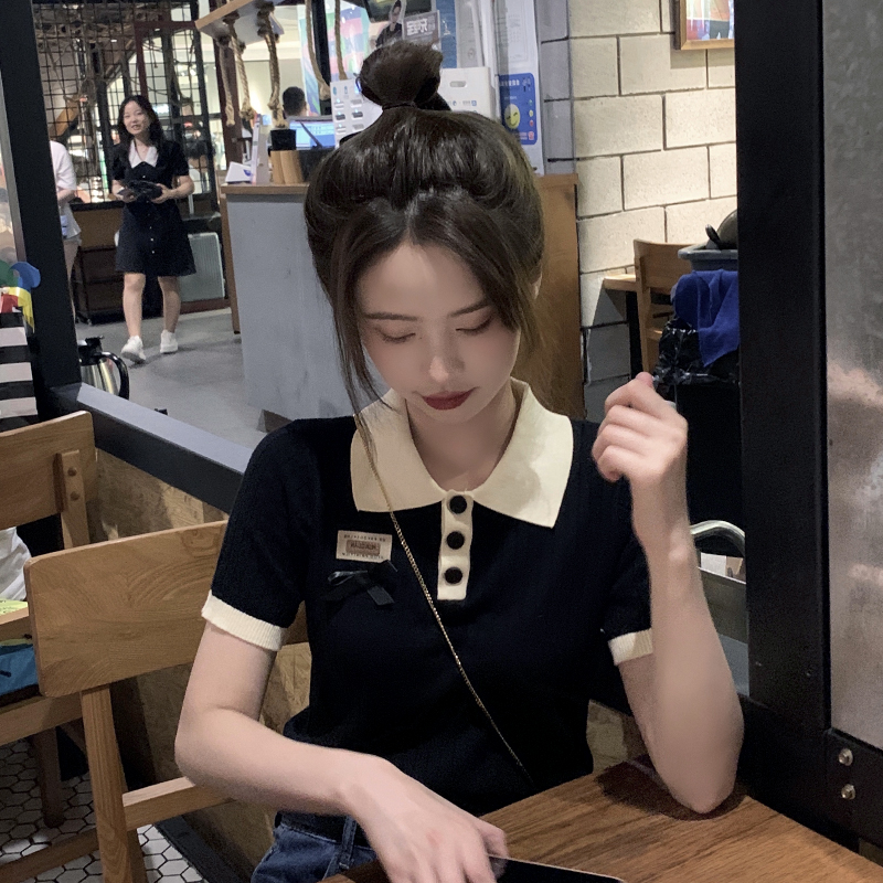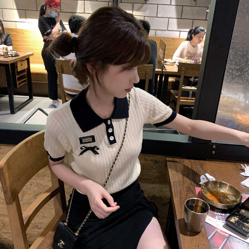 Polo領短袖針織T恤女設計感小眾別致超火夏季網紅甜酷小香風上衣