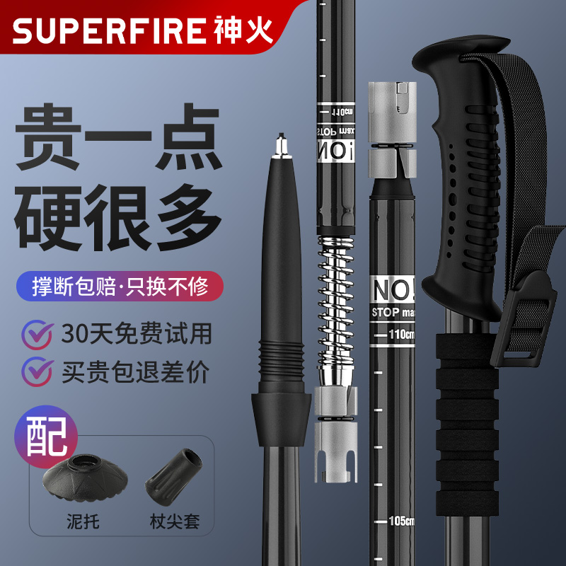 神火超輕登山杖手仗男女伸縮爬山多功能柺杖戶外徒步摺疊款防身棍