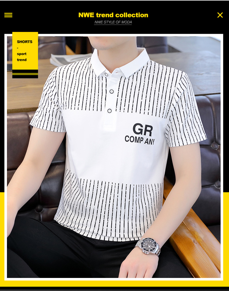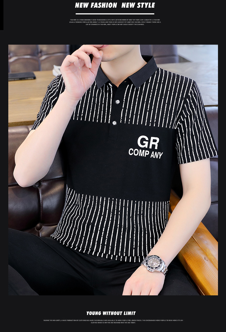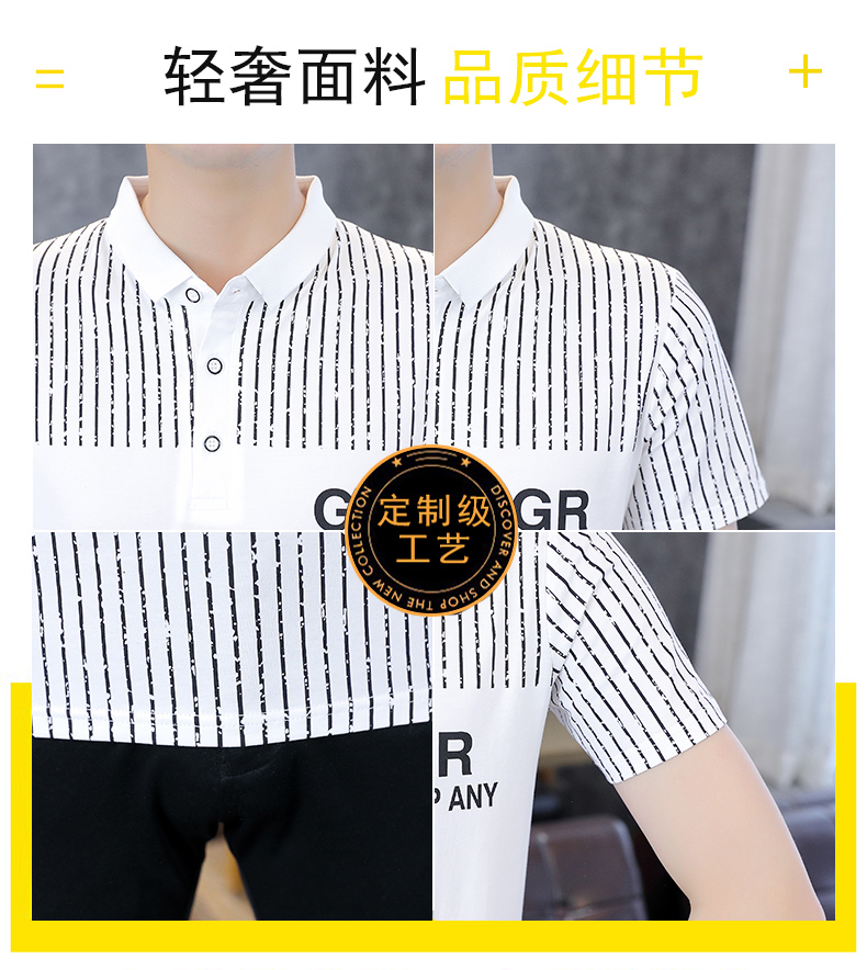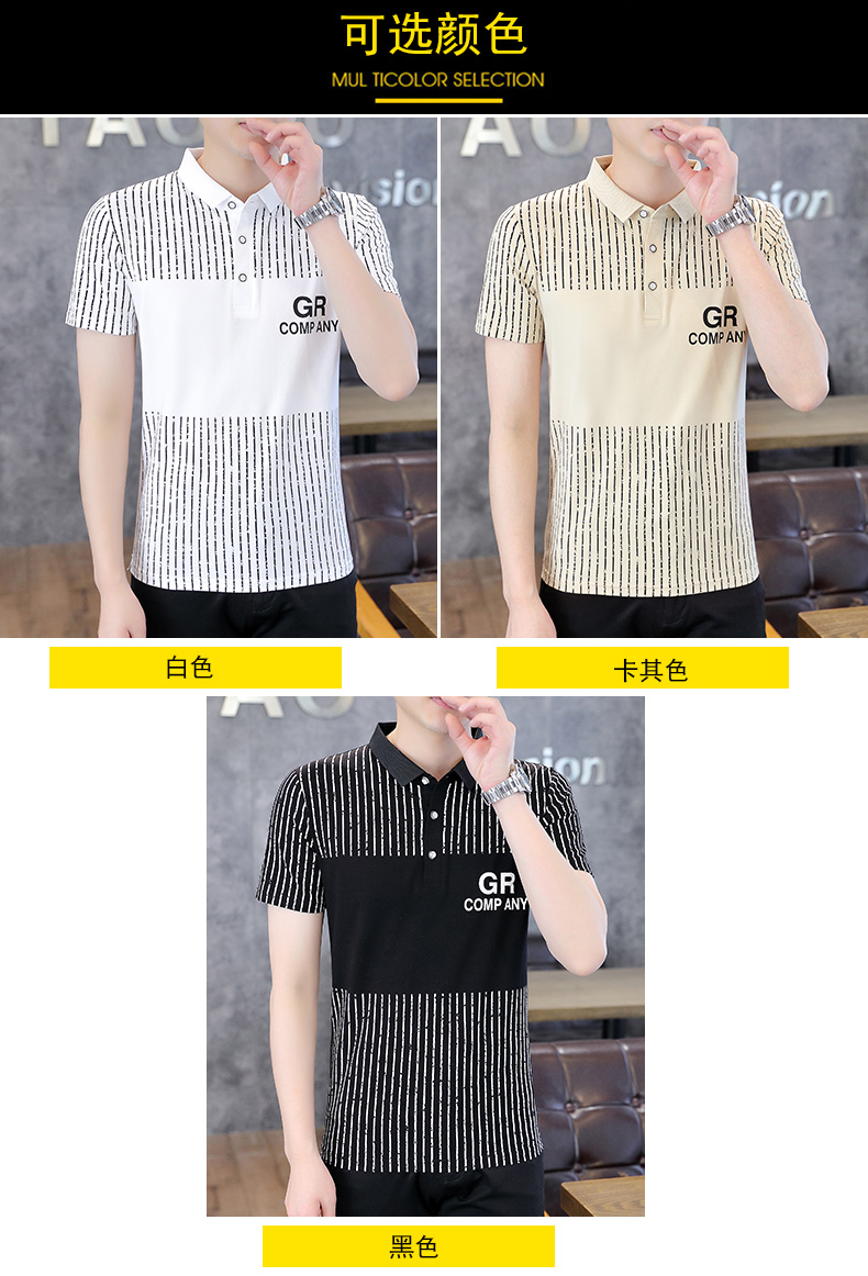 冰絲短袖t恤男士夏季潮流翻領polo衫有領純棉夏裝半袖有領上衣服