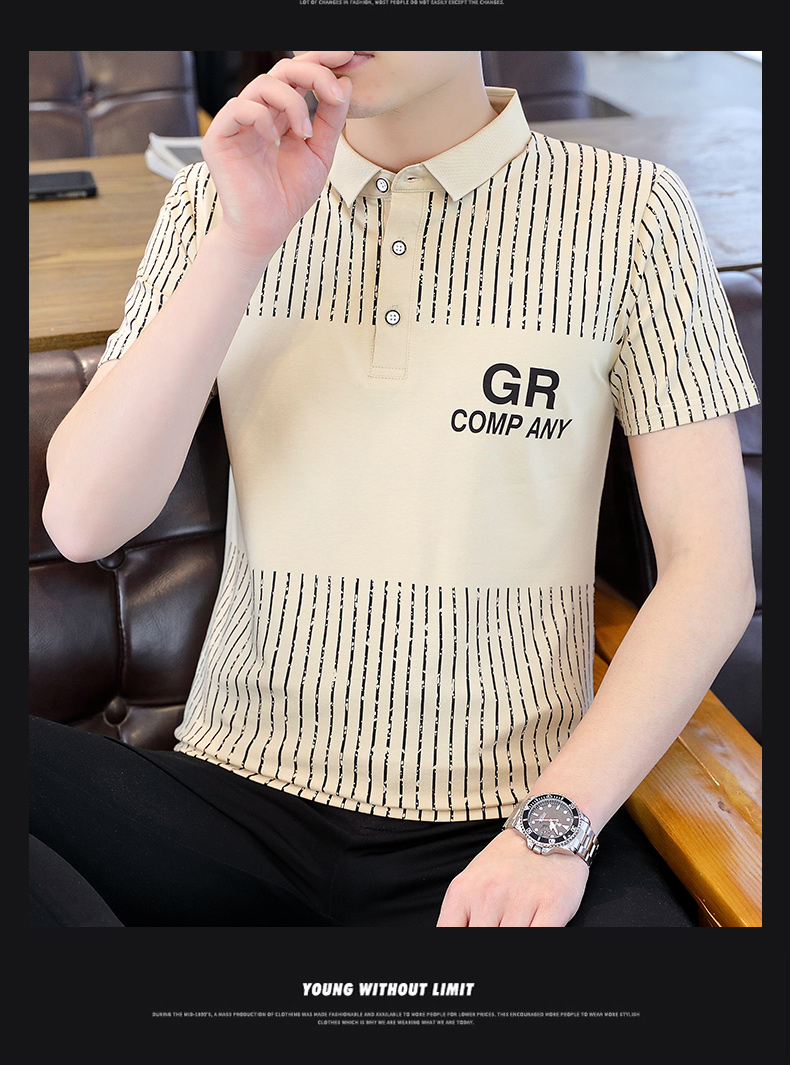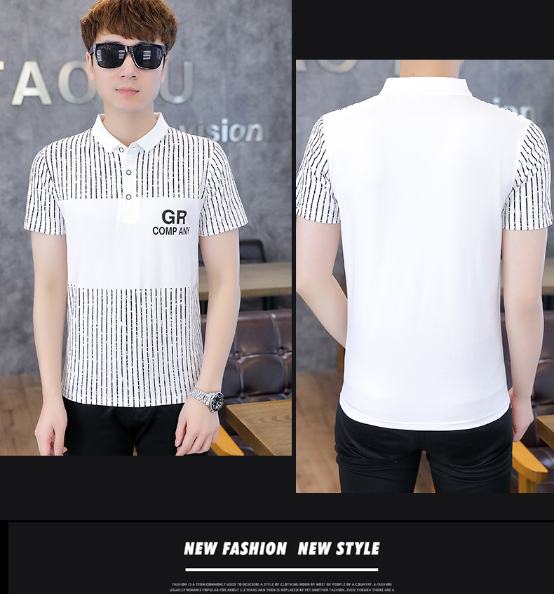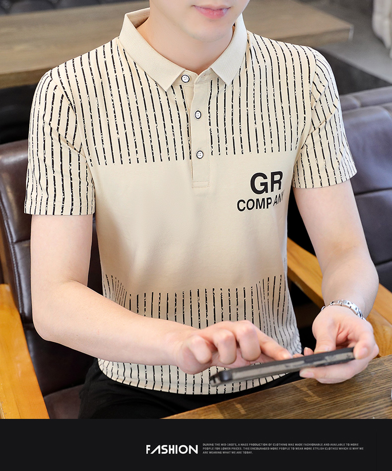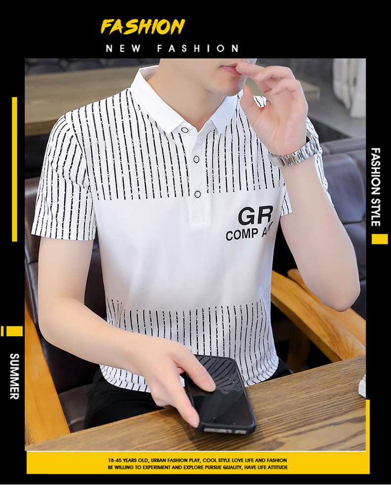 冰絲短袖t恤男士夏季潮流翻領polo衫有領純棉夏裝半袖有領上衣服