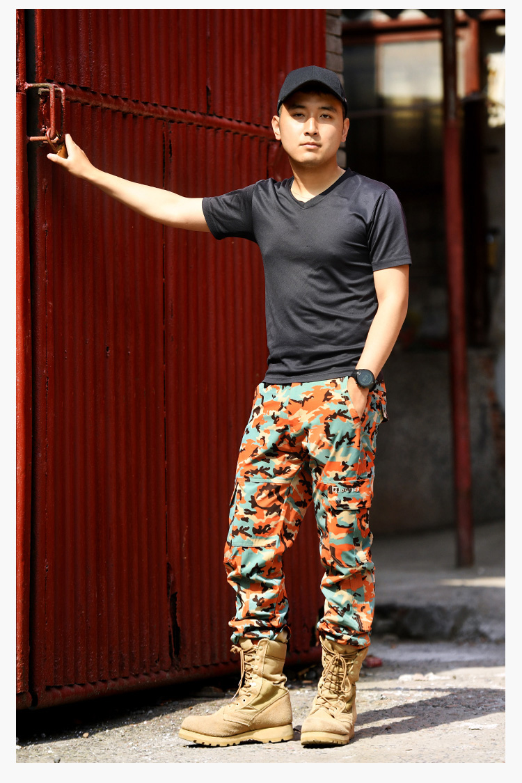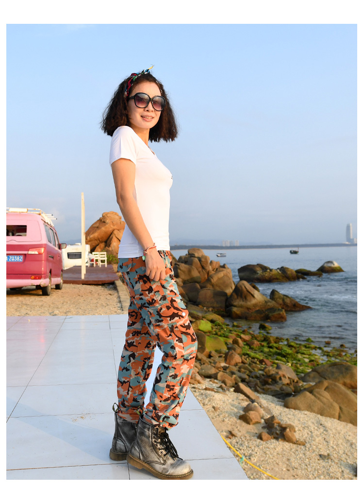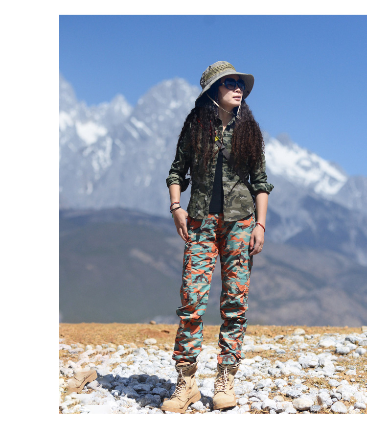 北京森林戶外旅行透氣修身休閒多袋4面彈迷彩速乾褲大尺碼男女式