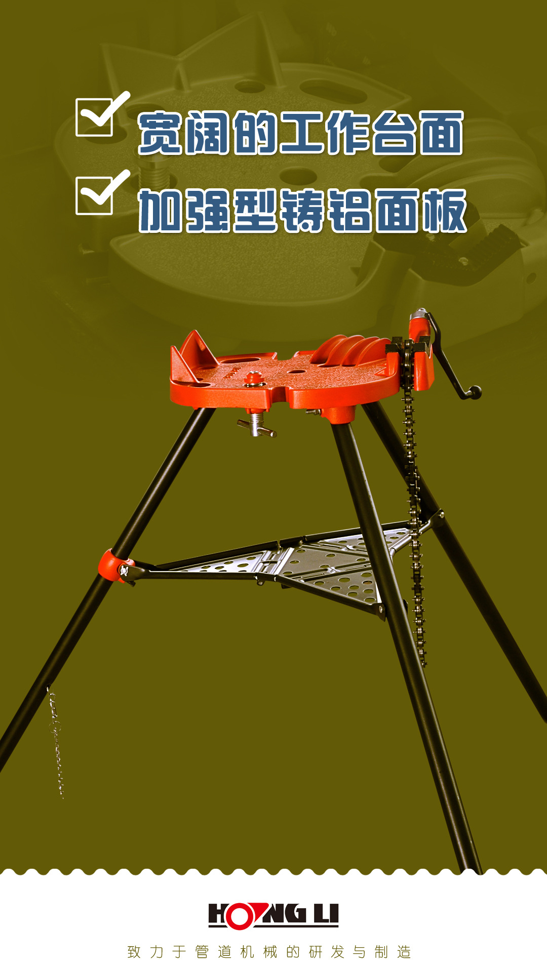 虎王1/8-6寸重负荷三脚架管道加工通用台钳链钳管子支架托架H401
