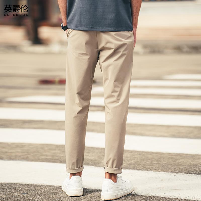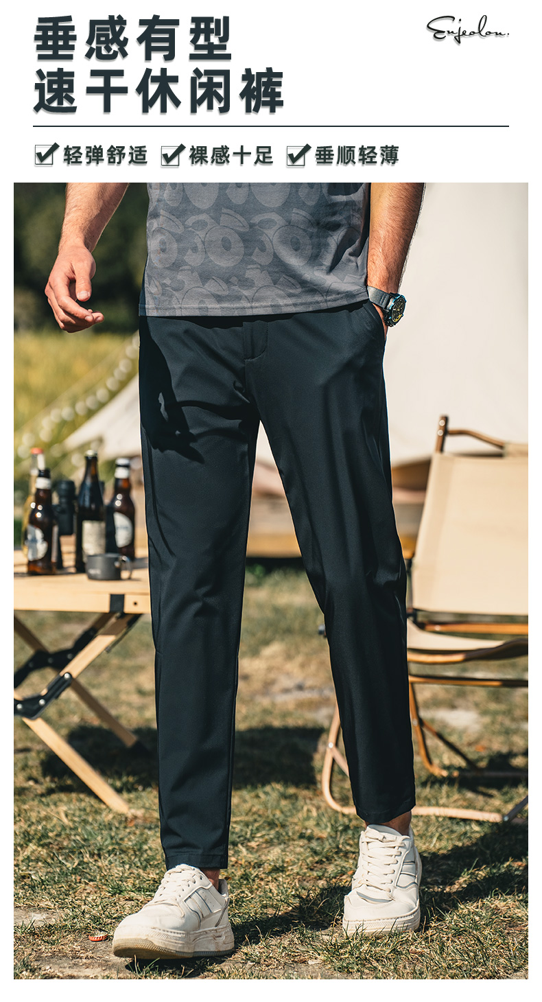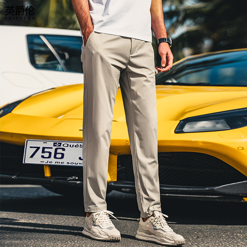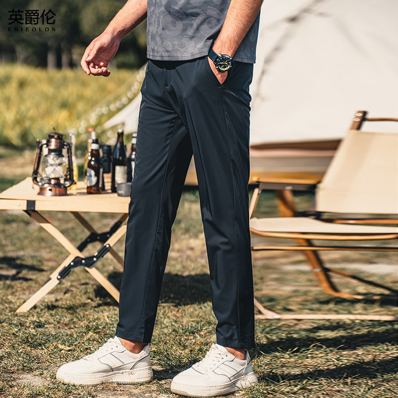 英爵倫冰絲速幹休閒長褲男夏季薄款直筒寬鬆垂感褲子涼感男士西褲