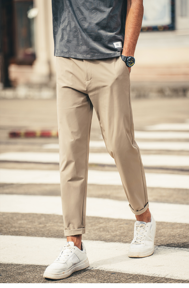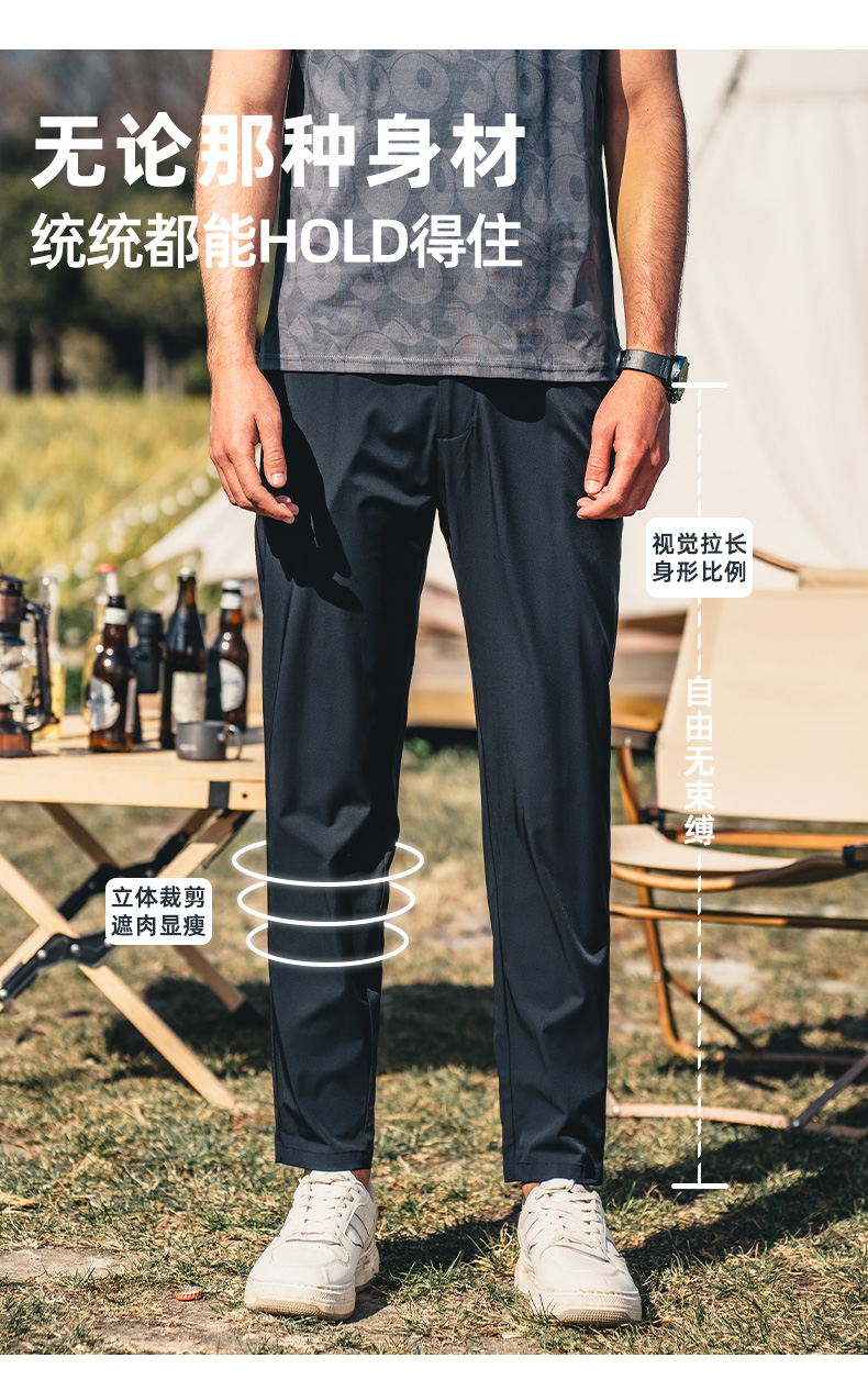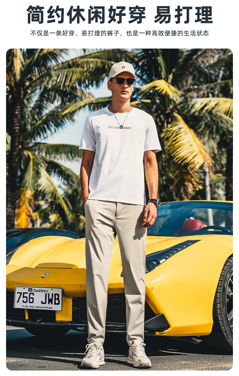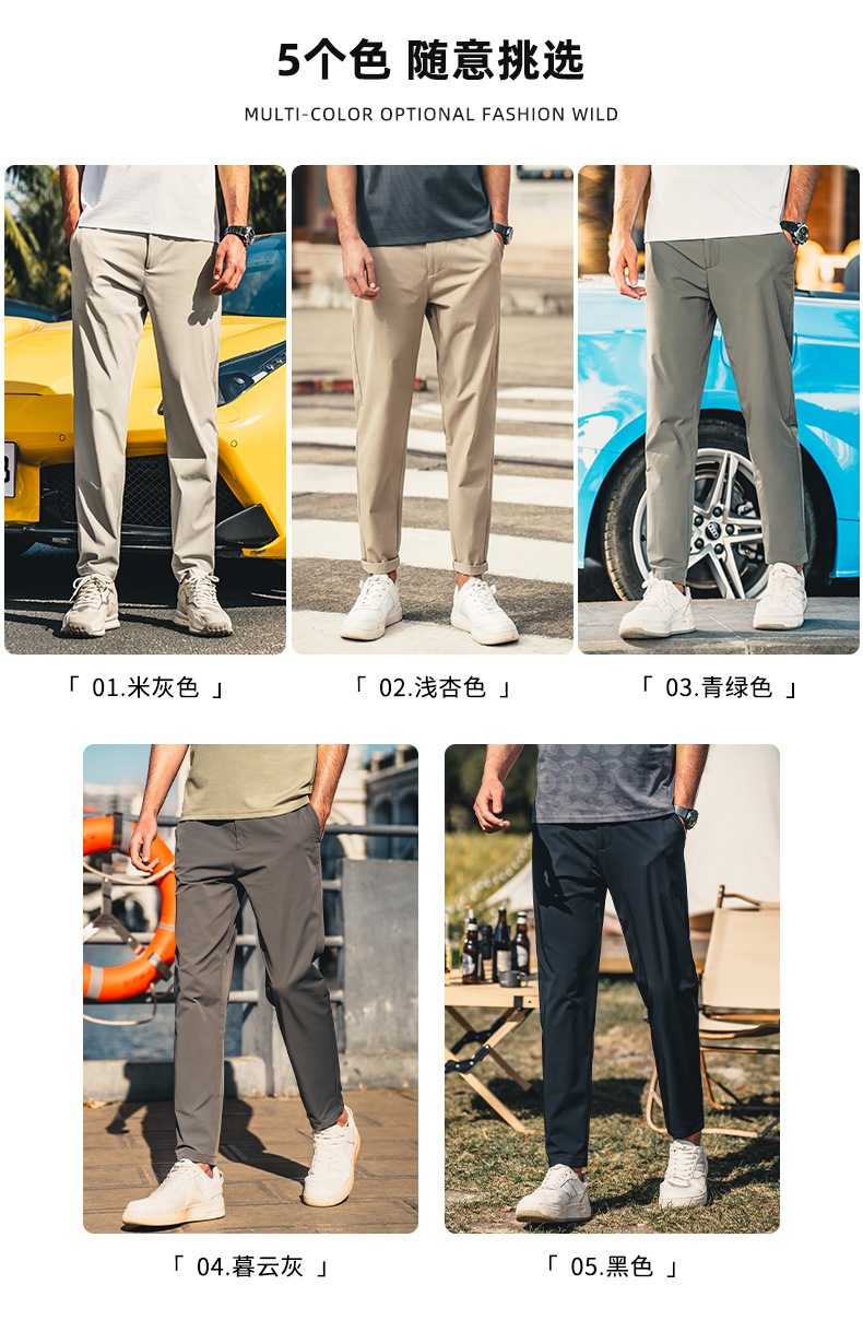 英爵倫冰絲速幹休閒長褲男夏季薄款直筒寬鬆垂感褲子涼感男士西褲