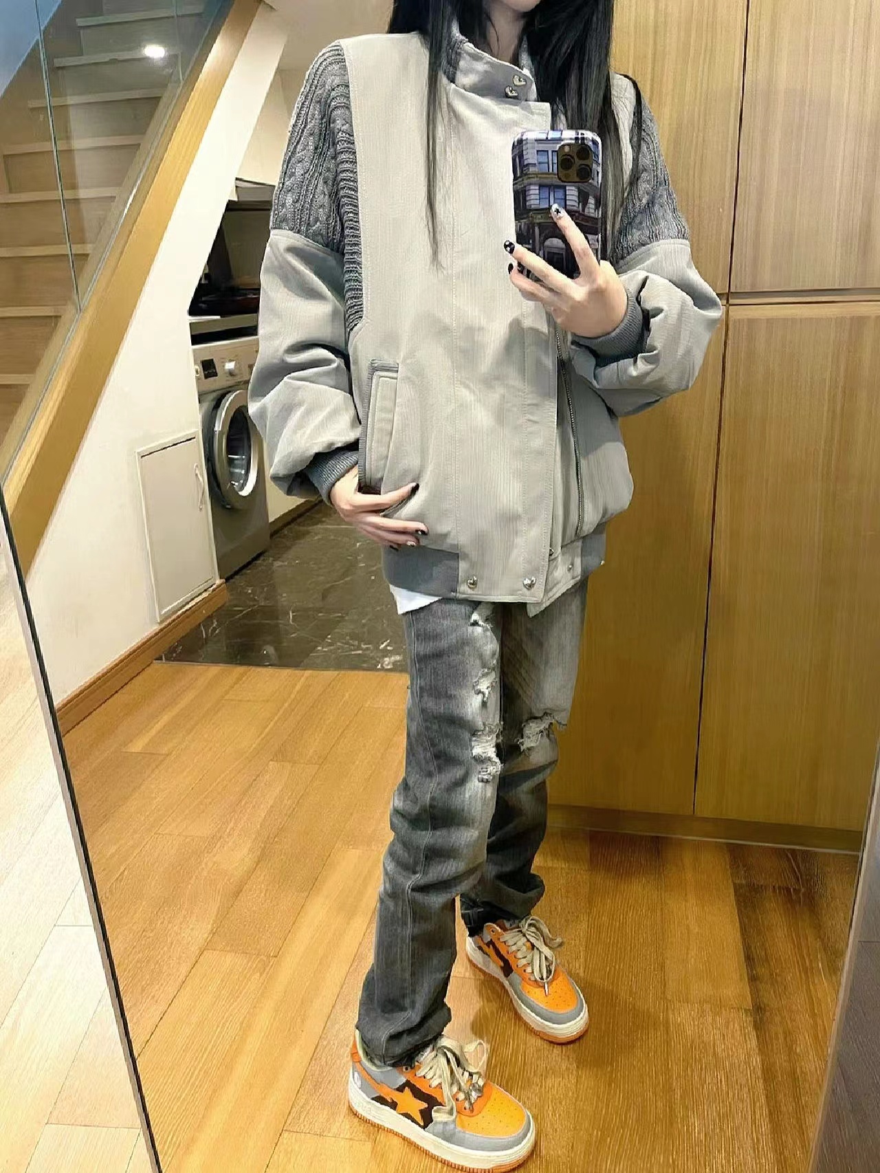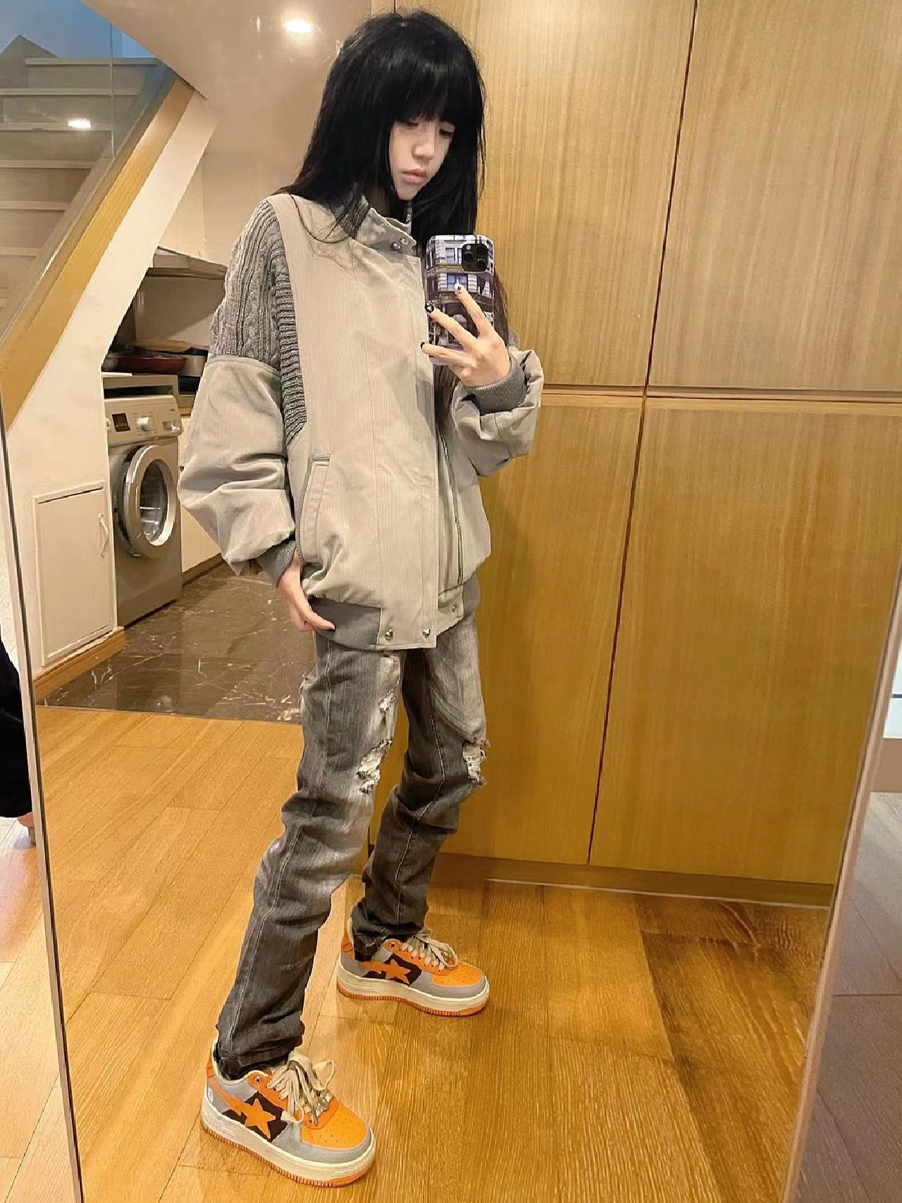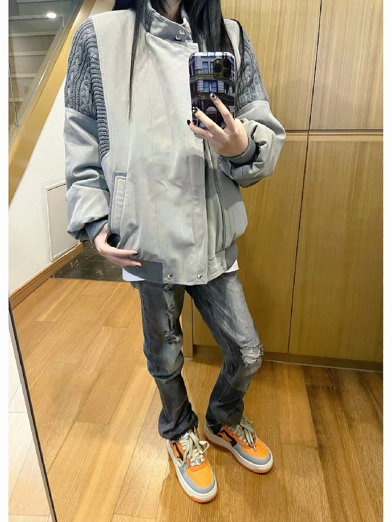 新款歐美式拼接飛行員夾克女復古棒球服vintage韓系慵懶風外套秋