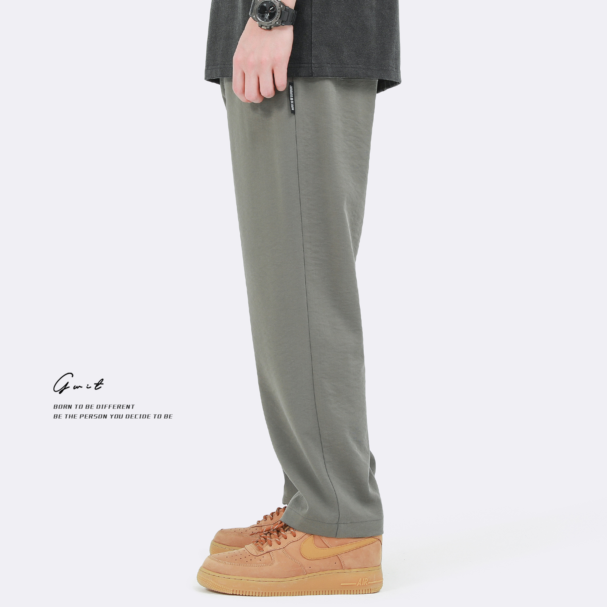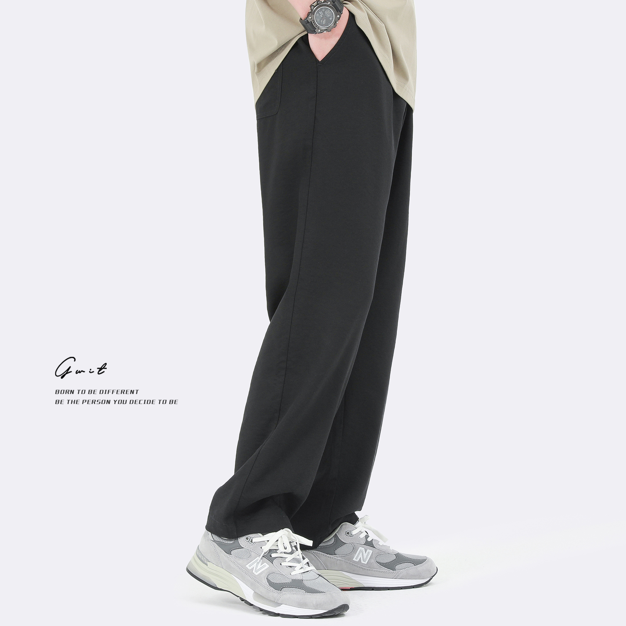 GWIT 冰感霧面天絲棉 輕薄夏季新款潮流冰絲拖地垂感薄款休閒褲男