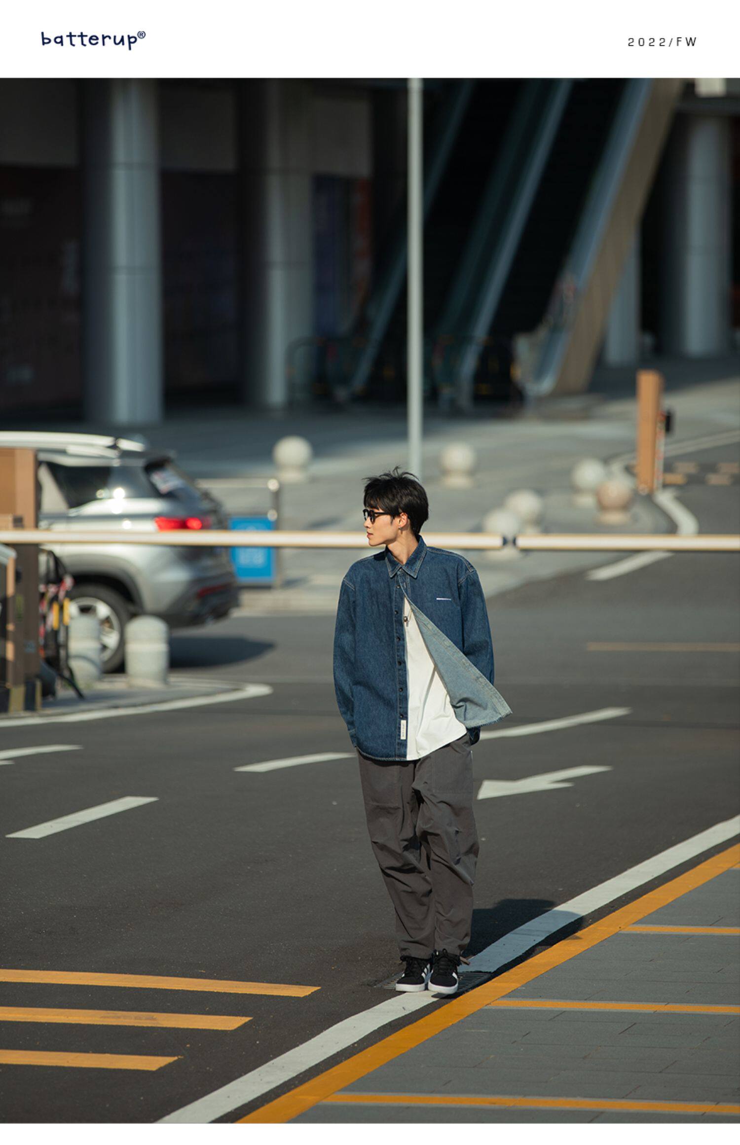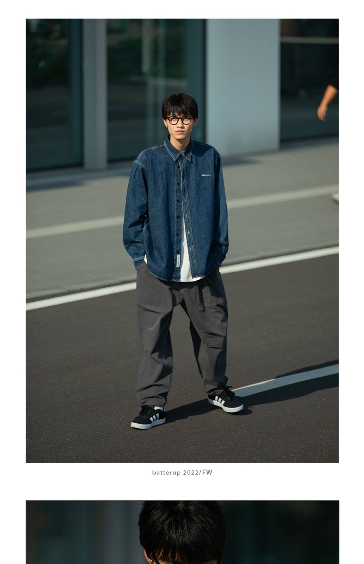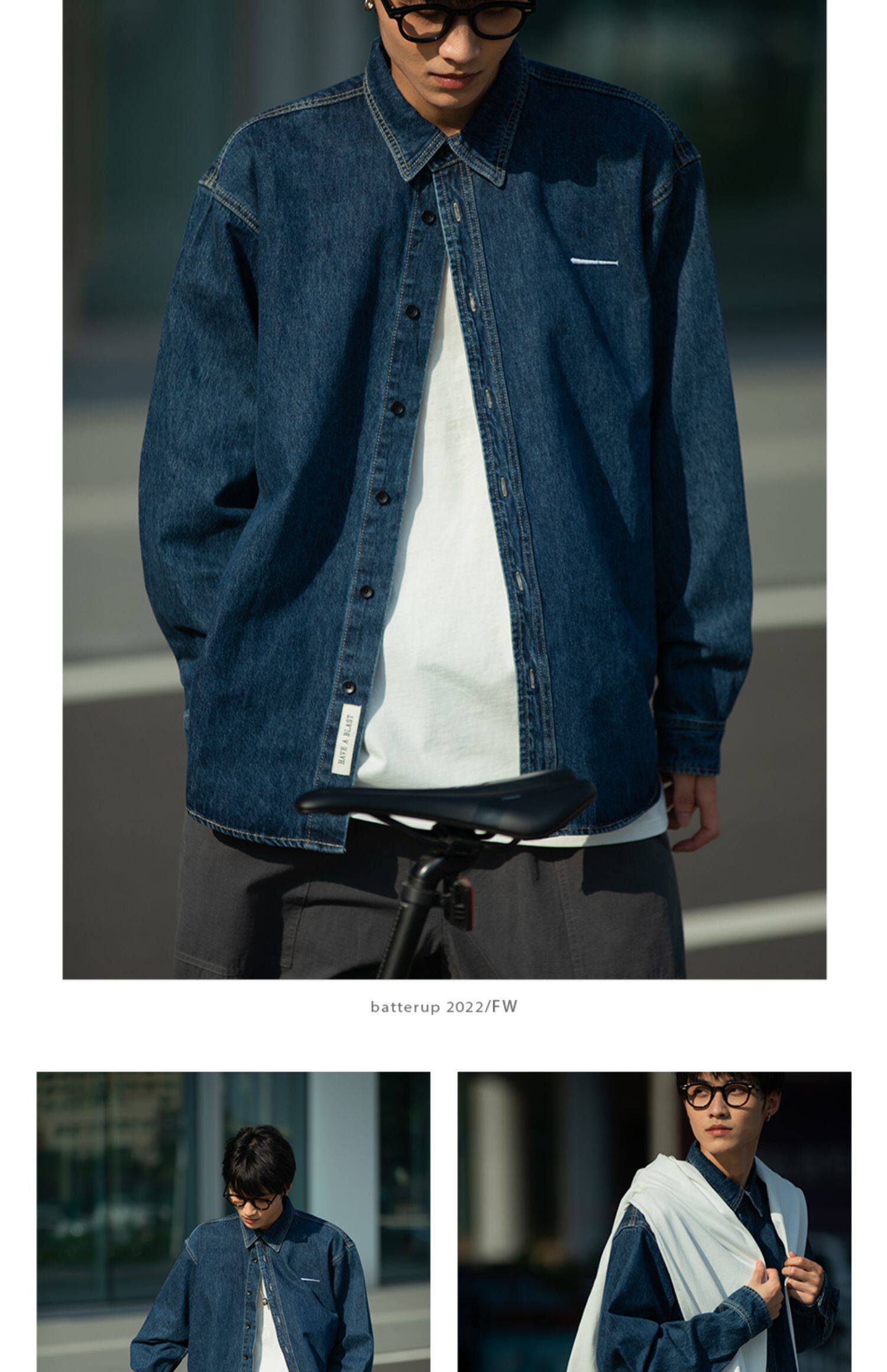 Batterup春秋新款牛仔外套日系寬鬆廓形水洗休閒長袖襯衫男潮牌