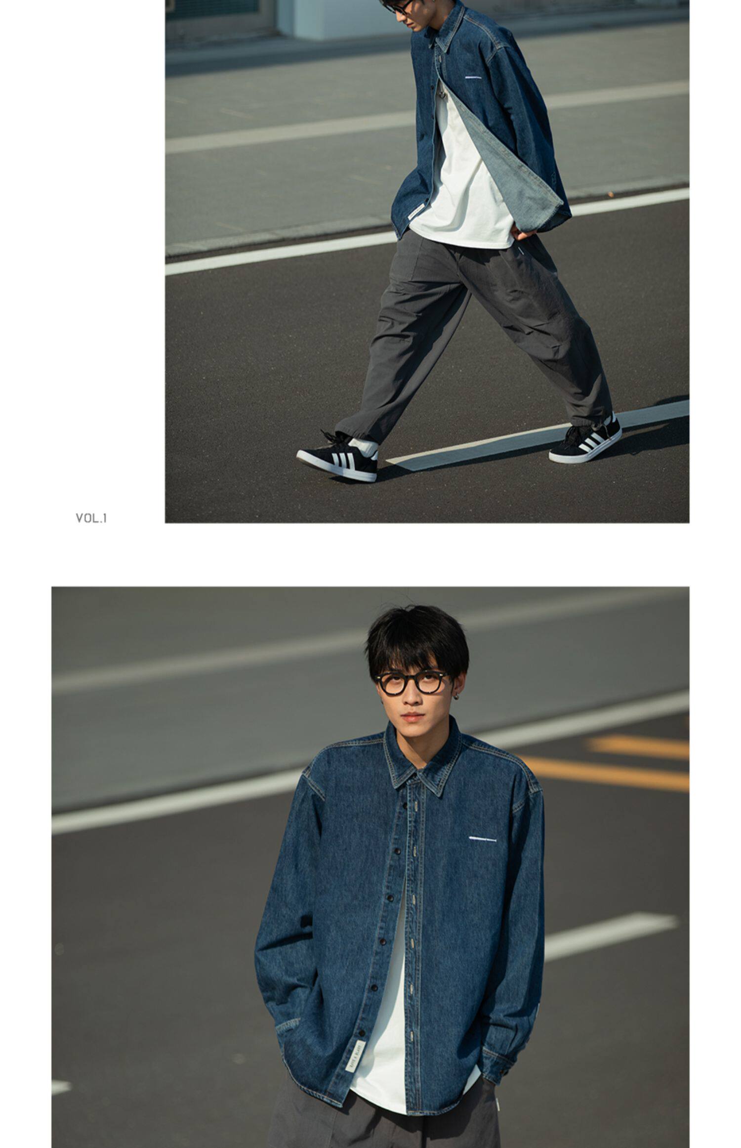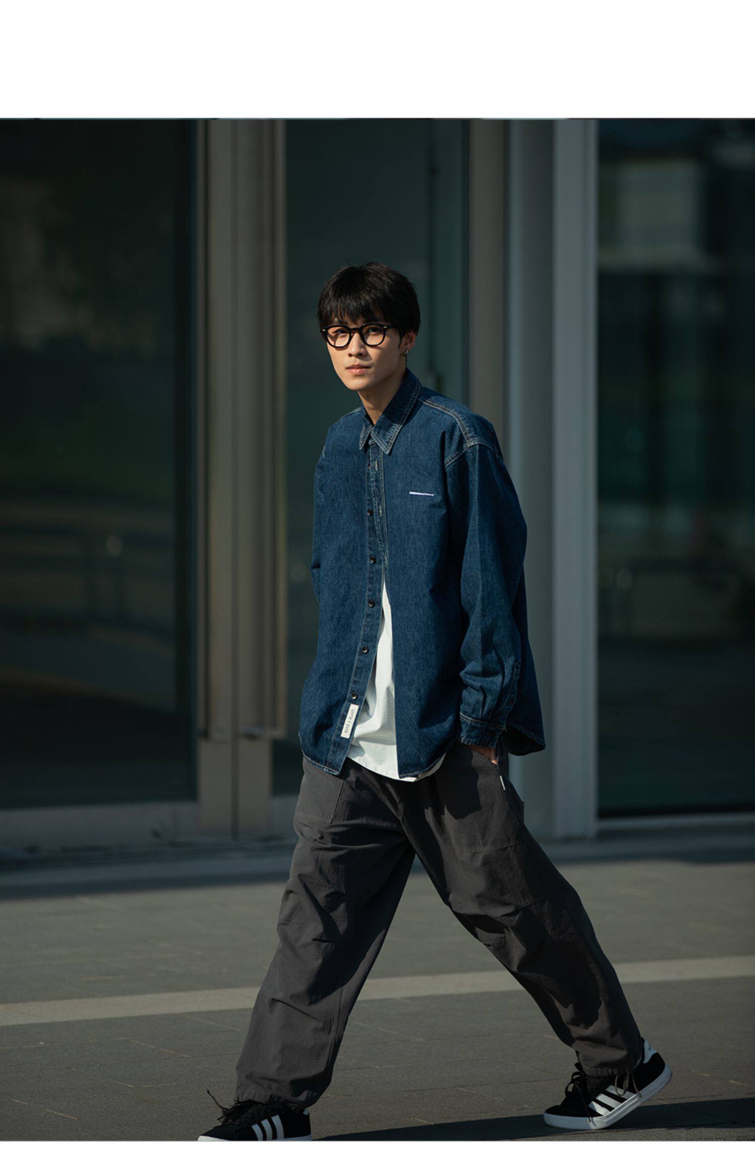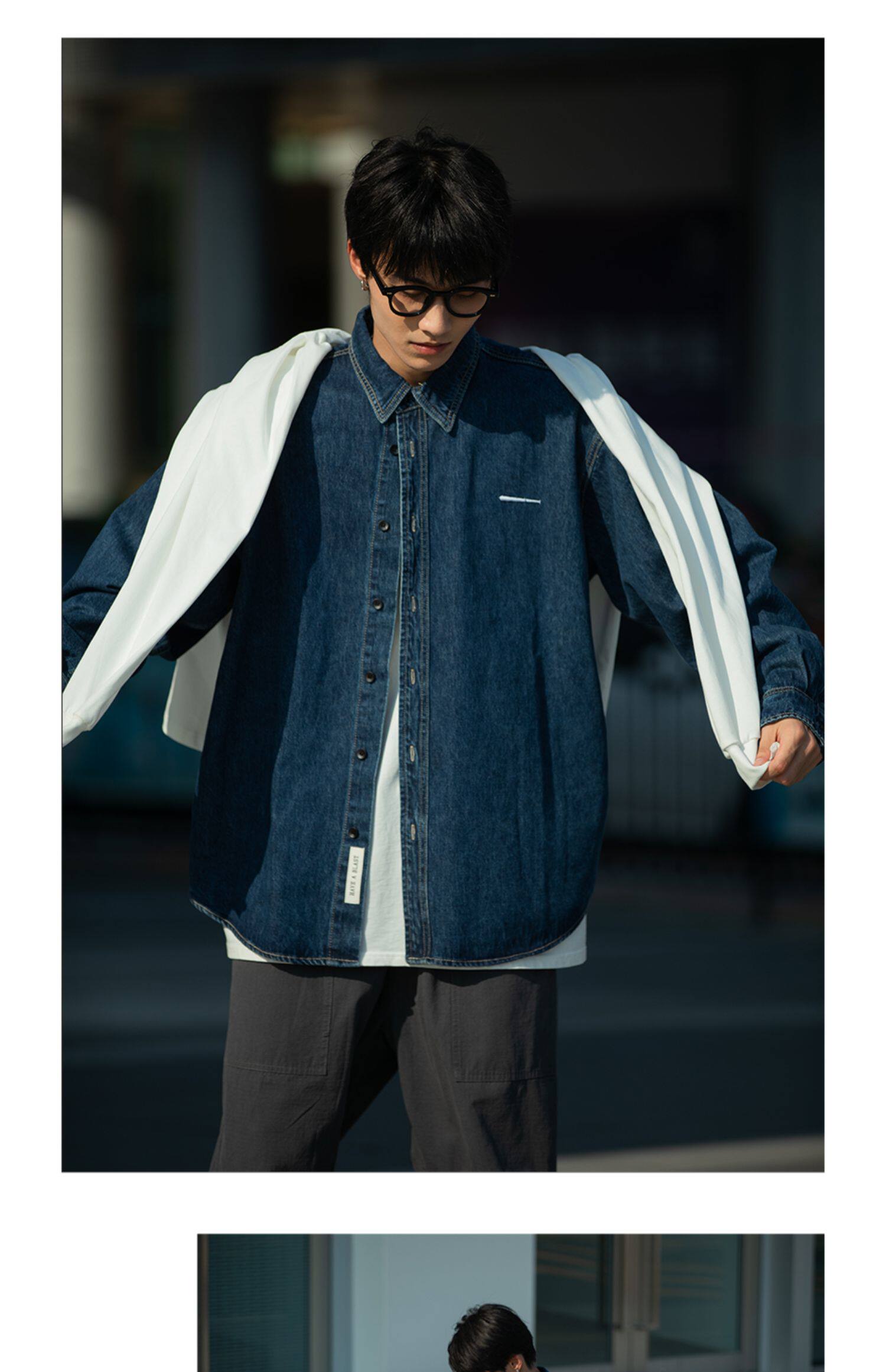 Batterup春秋新款牛仔外套日系寬鬆廓形水洗休閒長袖襯衫男潮牌