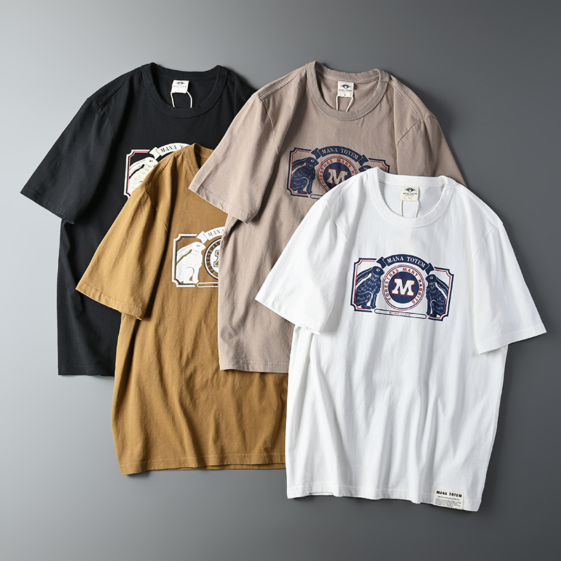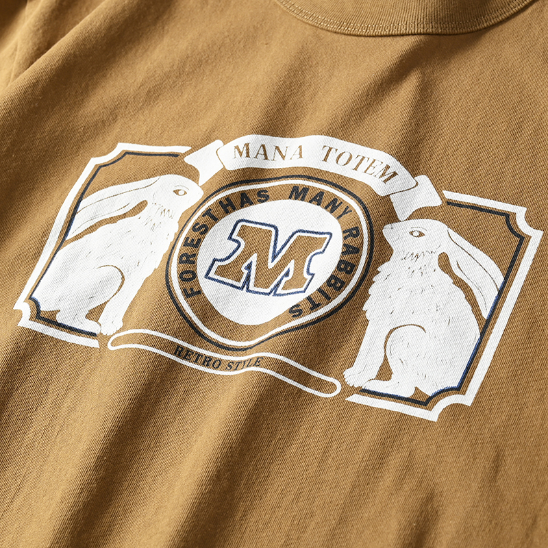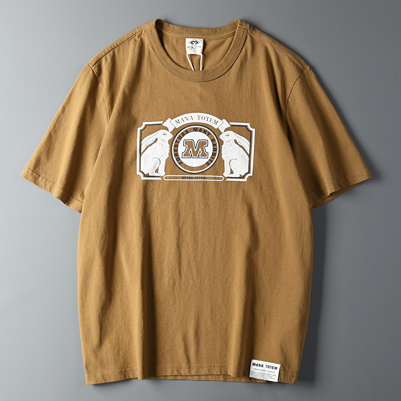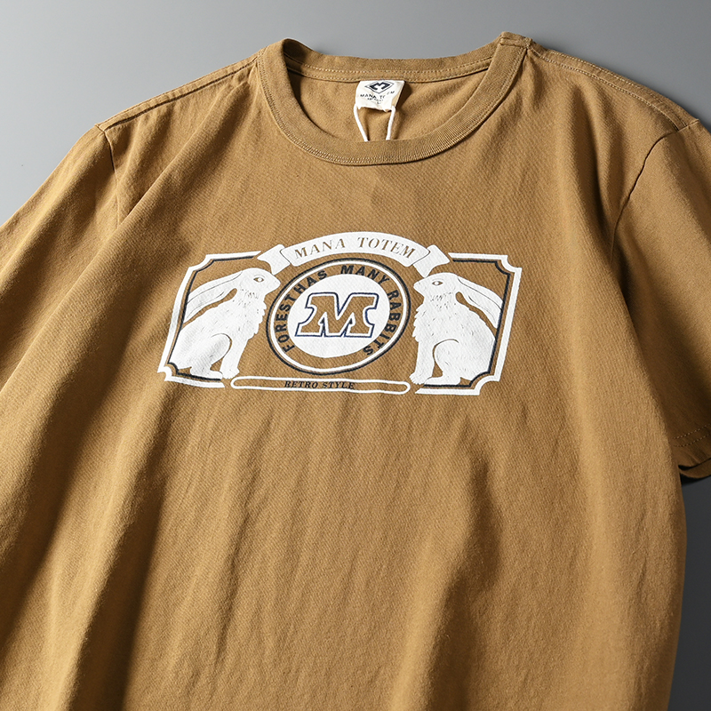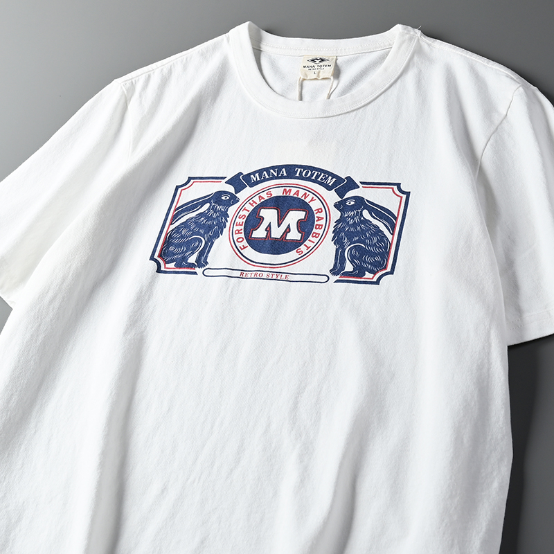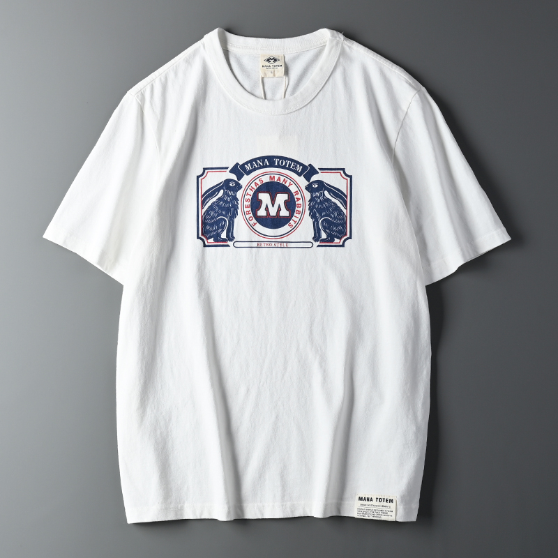 外貿原單客供水洗磨毛棉夏季男士撞色兔子字母印花短袖T恤打底衫