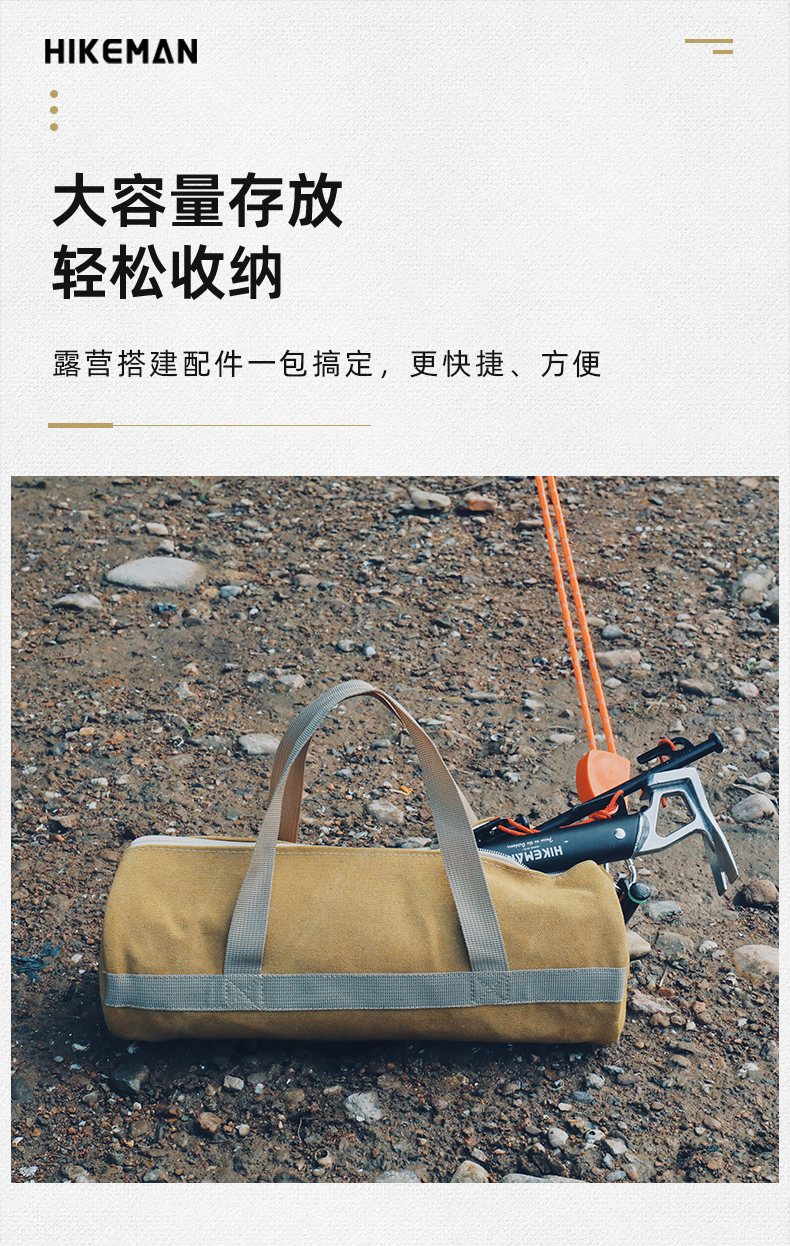 HIKEMAN戶外露營帳篷天幕搭建地釘風繩鎚子套餐可攜式包帆布收納包