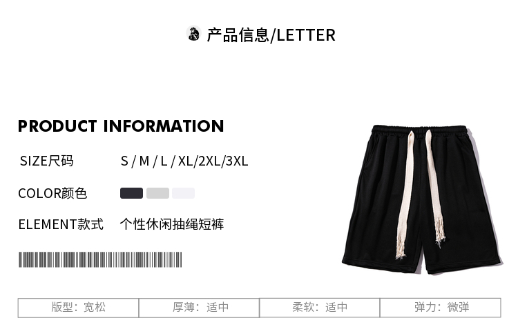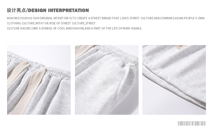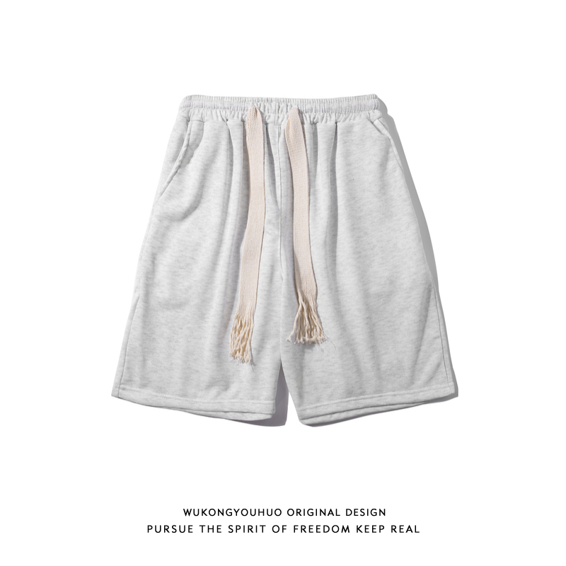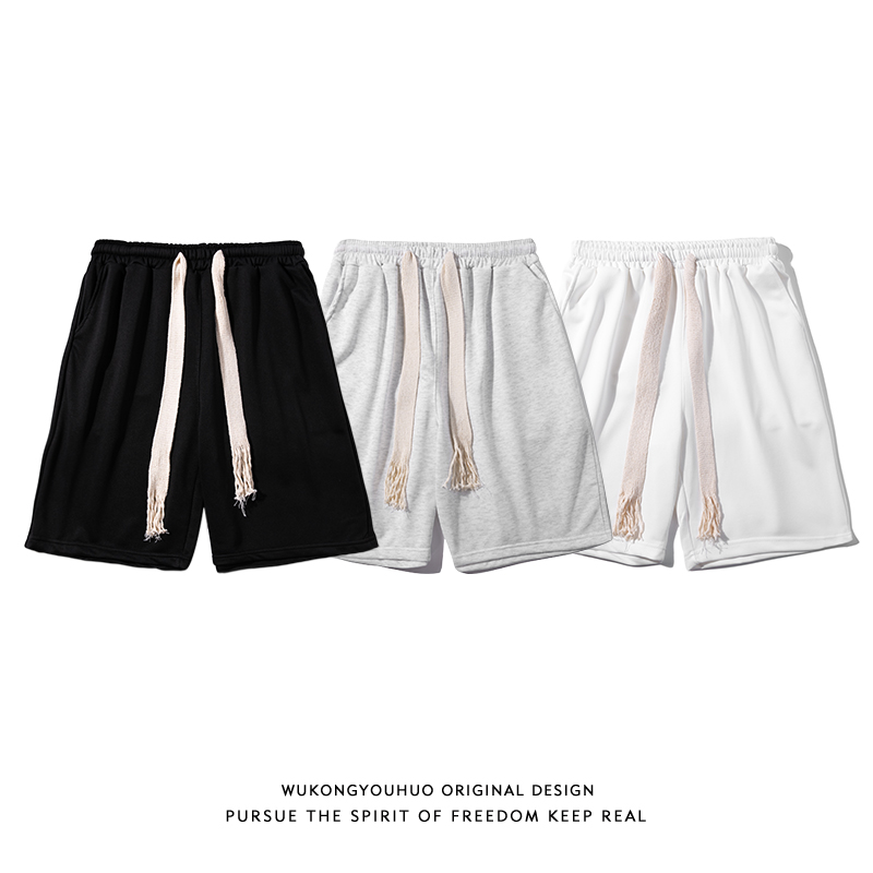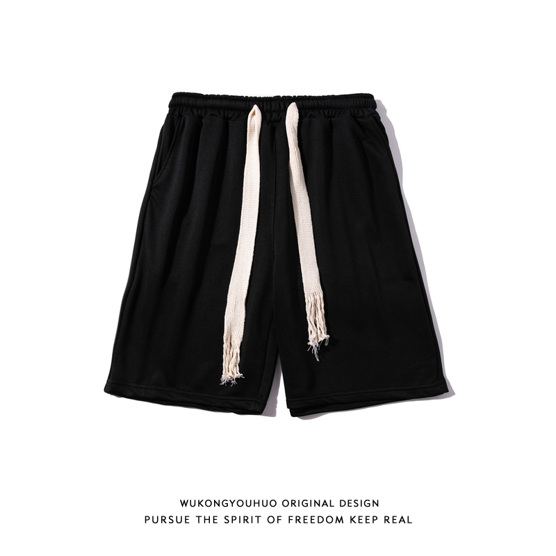 悟空有貨簡約純色編織抽繩運動短褲男女潮牌街頭寬鬆闊腿五分衛褲