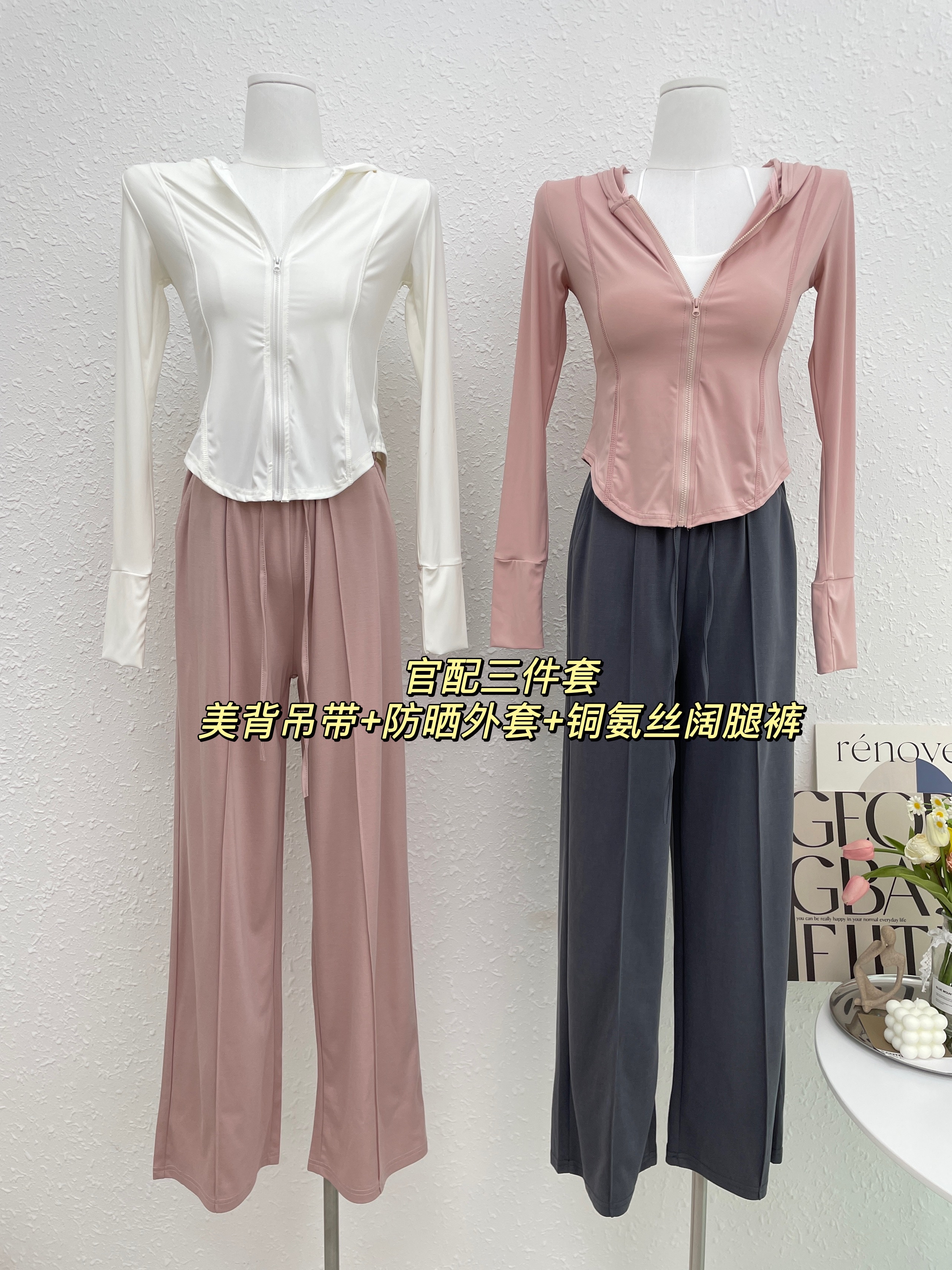 顏色分類 粉紅上衣,深灰上衣,白色上衣,深灰褲子
