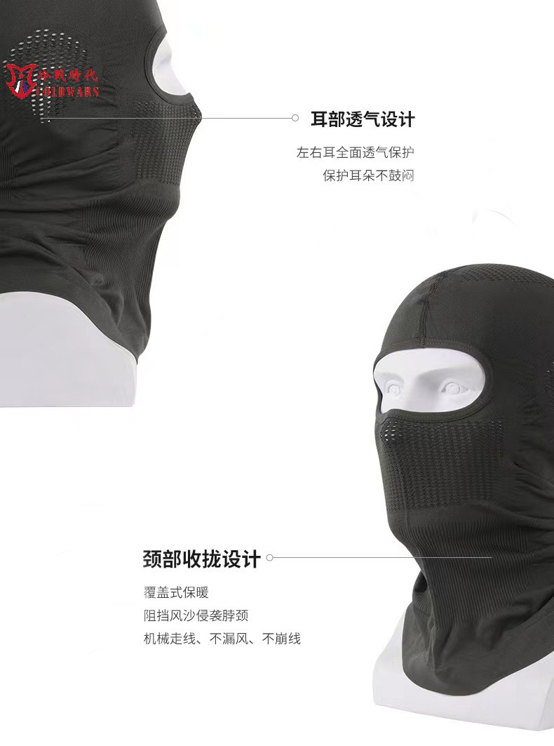 比较适合搭配头盔等装备,在春夏秋冬三季使用,复合材料,面料亲肤,弹力不小,包裹性好,防晒、速干、透气,鼻口、耳侧都有透气网状结构,外贸产品质量不错,不拍不吹,此款性价比比较高,大家可以尝试。