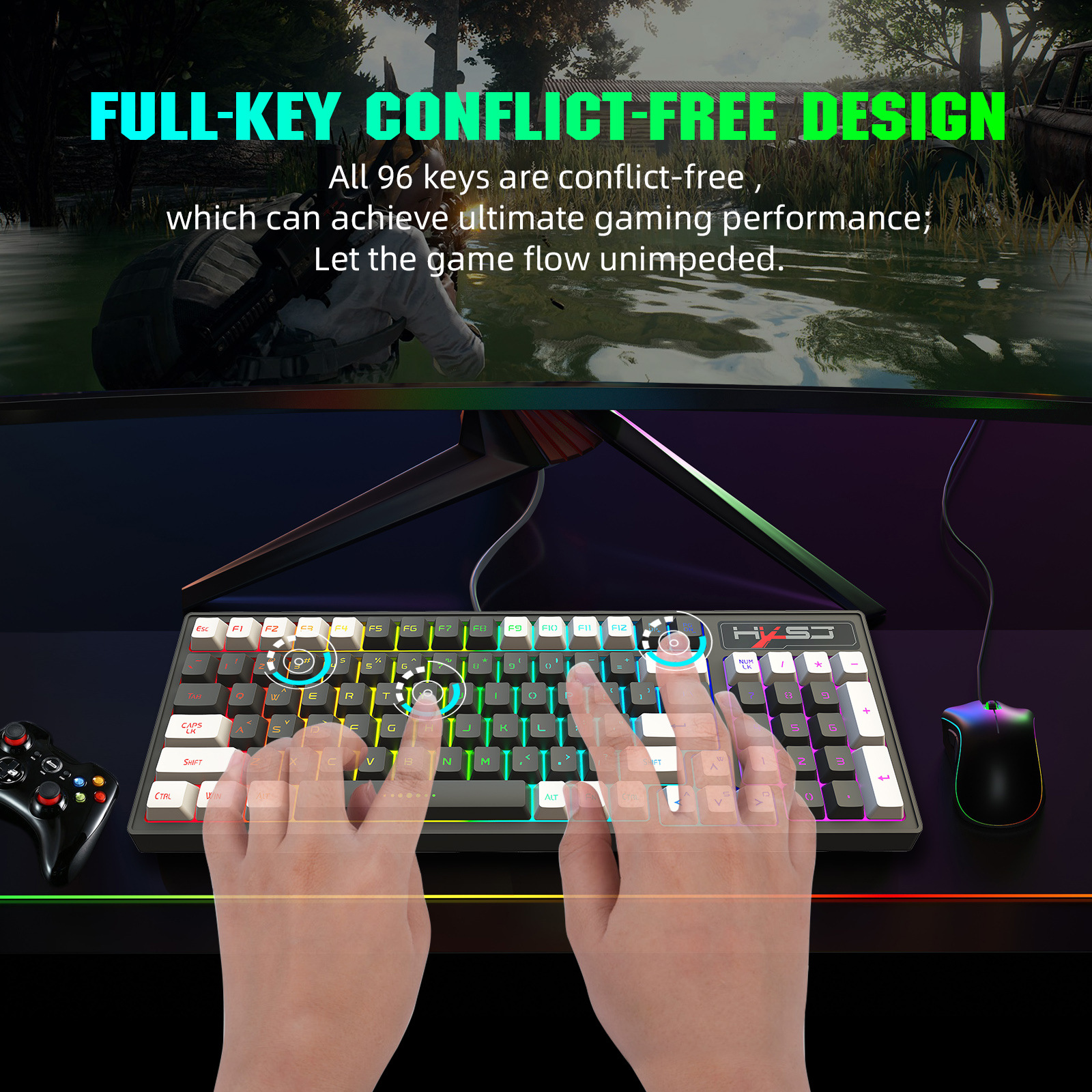 (2) Backlight breathing rate and horse racing speed control: adjusted by FN+ “←”/FN+ “→”,