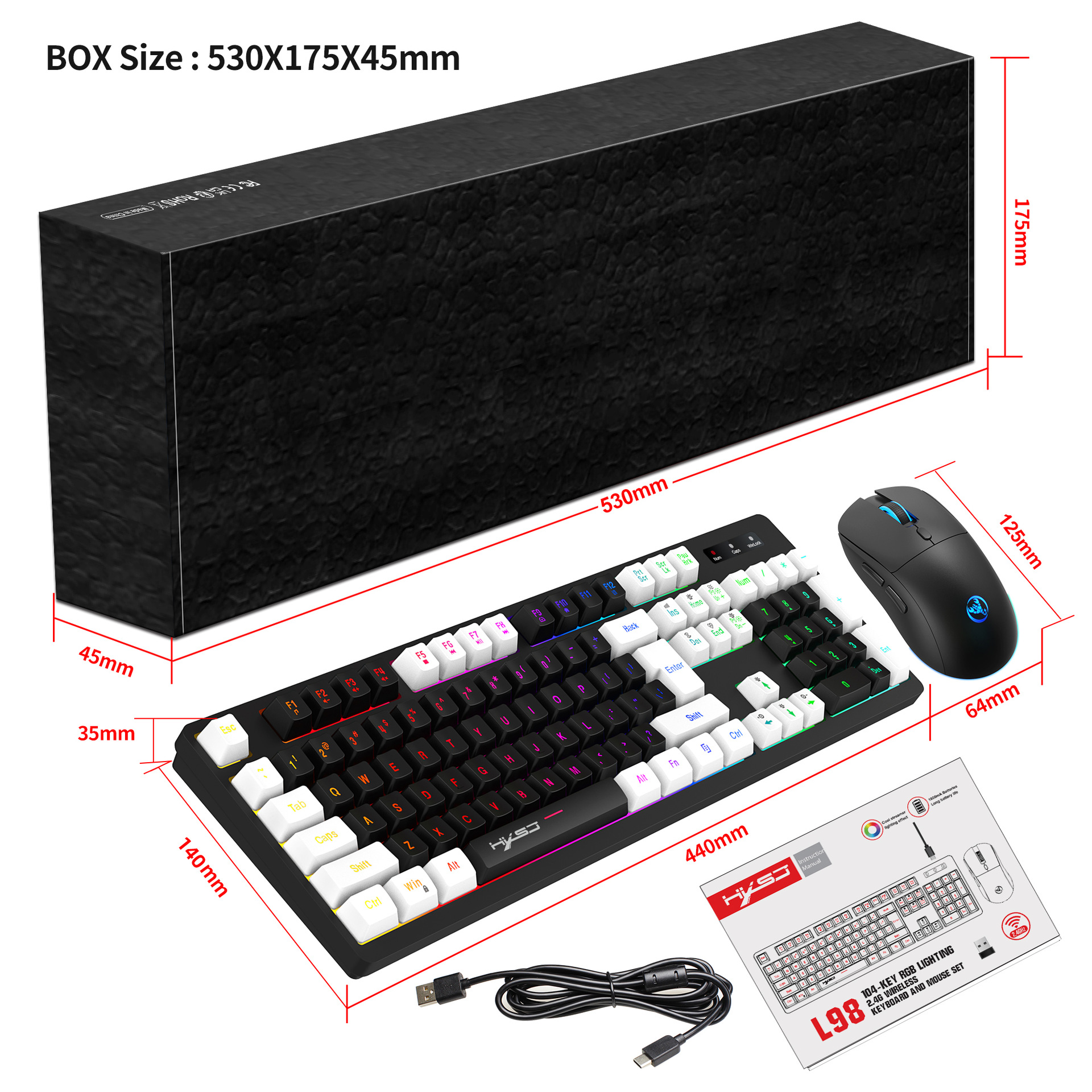 Specification item:96-KEY wireless mouse and keyboard set