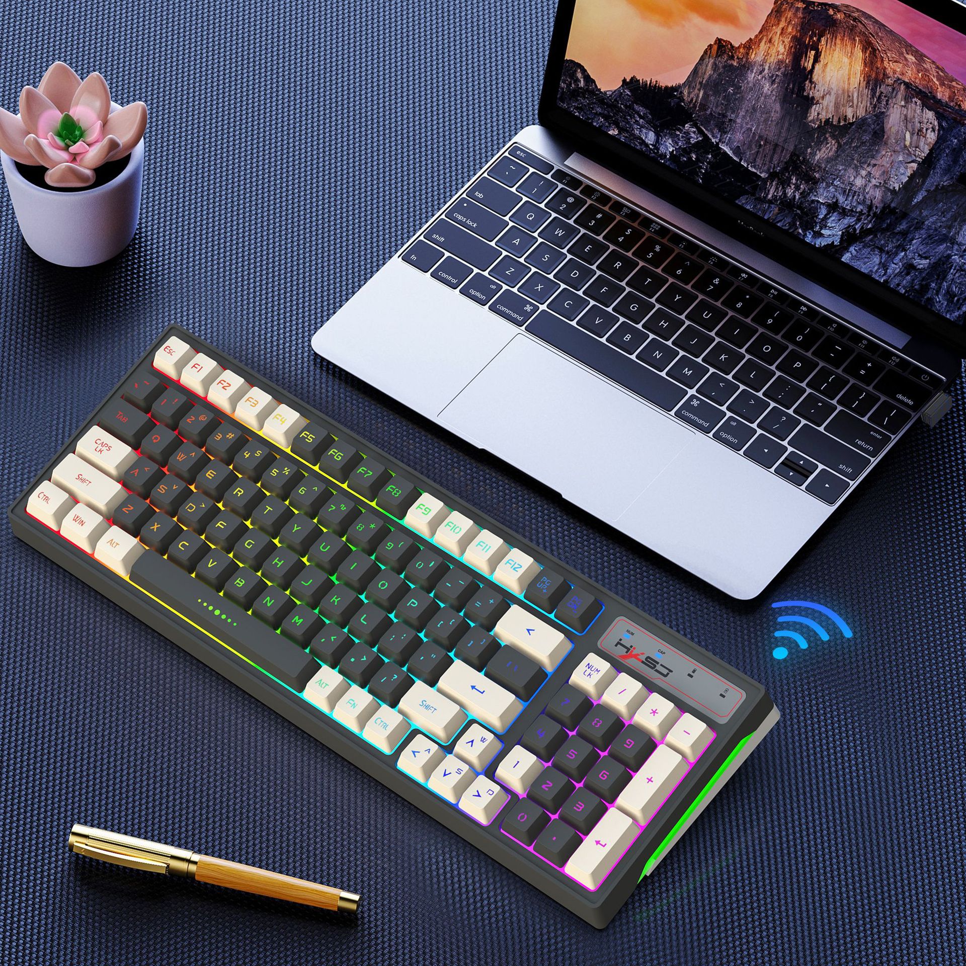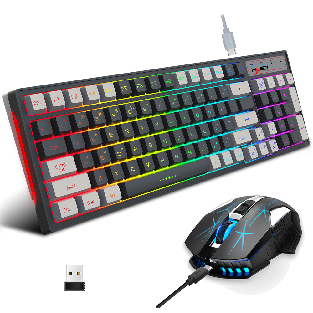2023新品无线2.4G键鼠套装七炫彩背光游戏电竞鼠标RGB炫酷96键盘