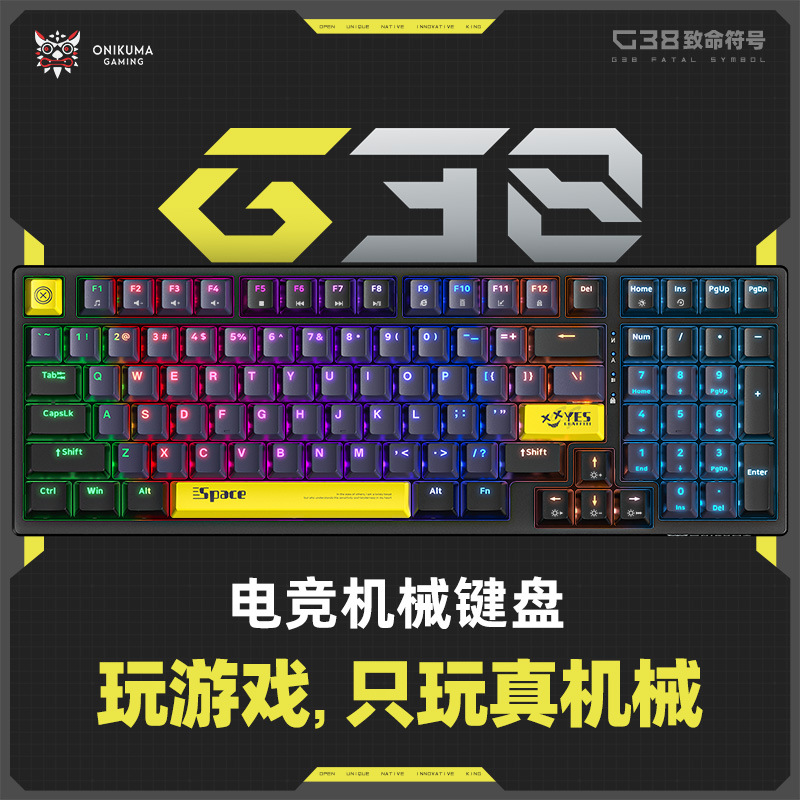 ONIKUMA G38真机械键盘电脑办公游戏有线键盘电竞青轴98键键盘