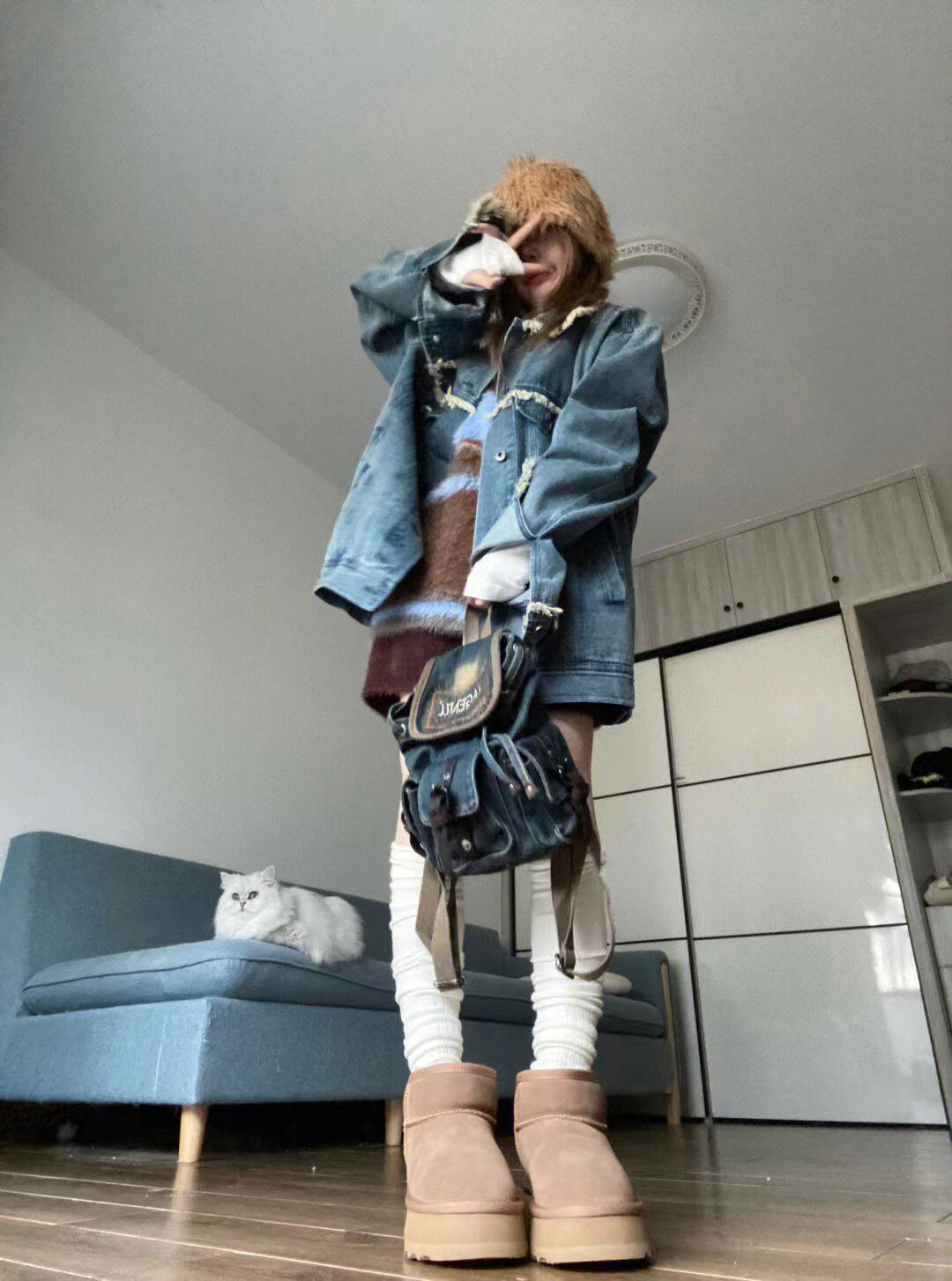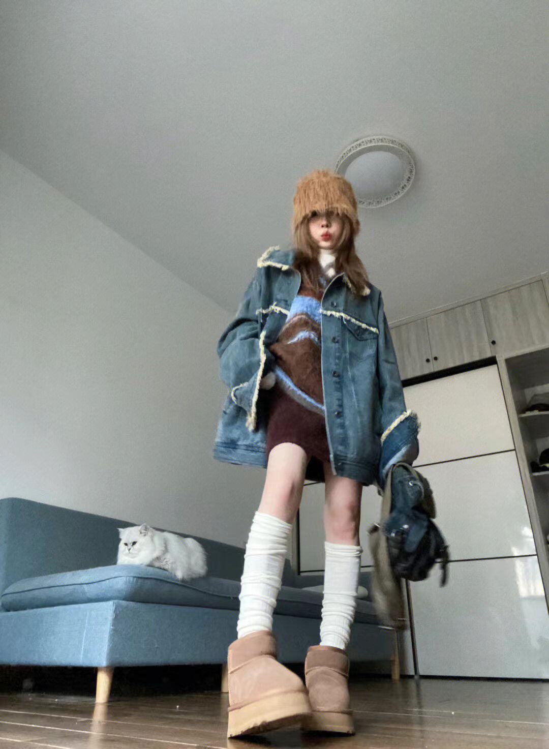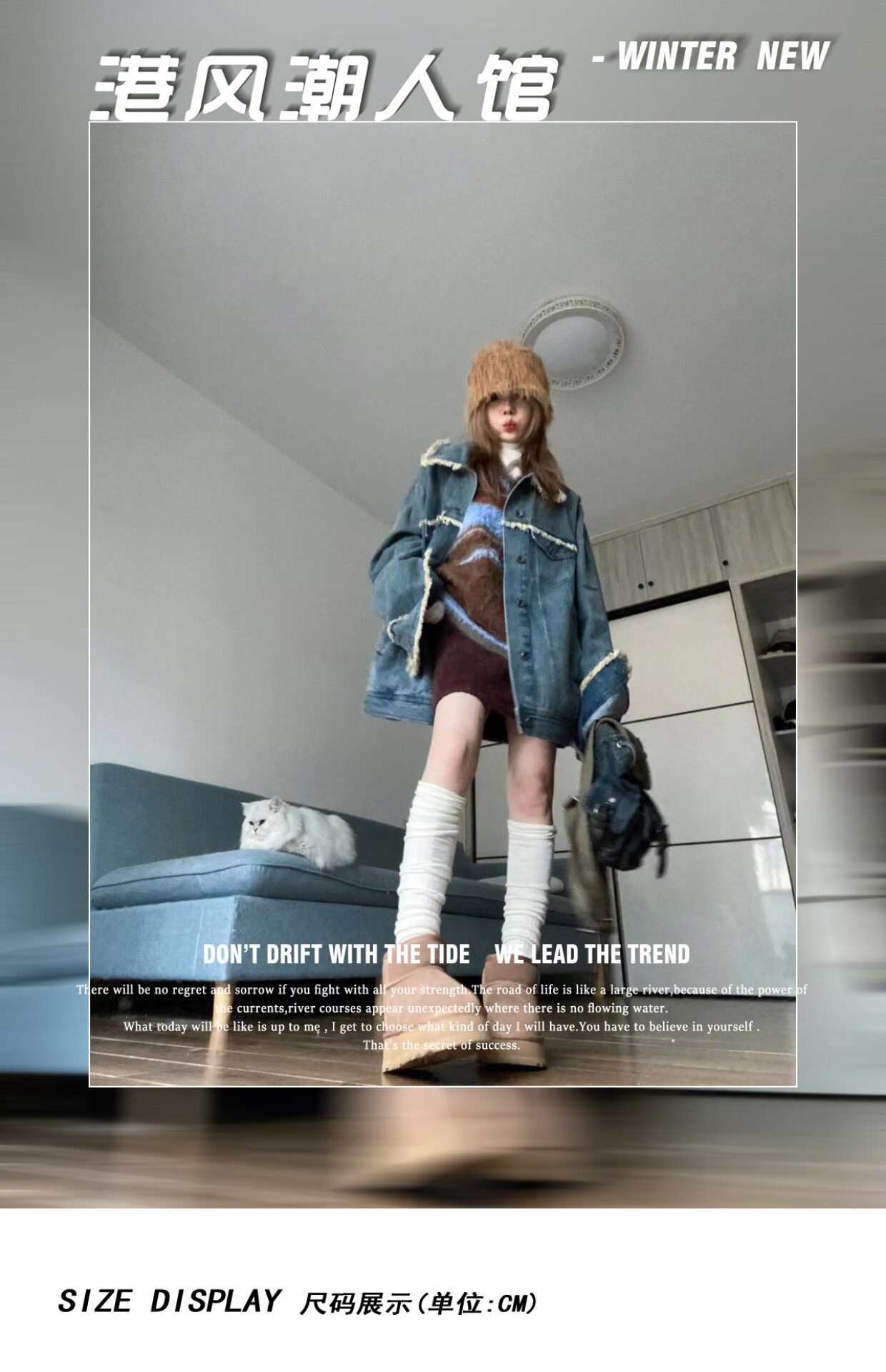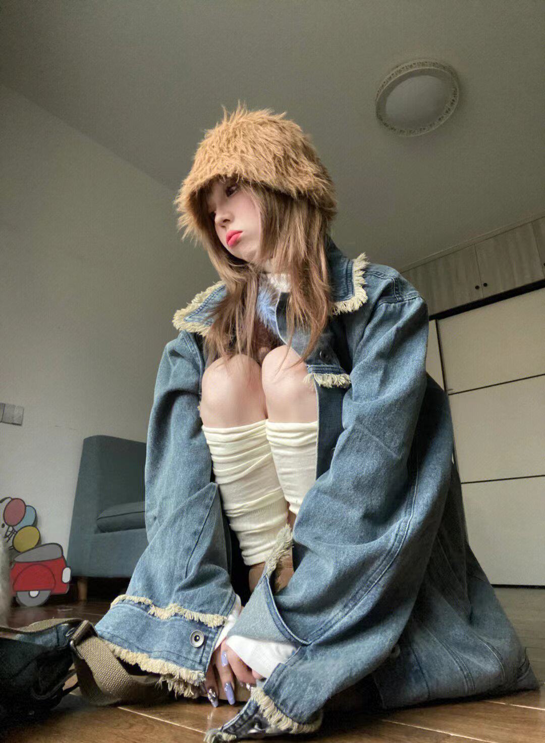 美式復古古著vintage牛仔外套女2023春秋新款港風設計感外搭夾克