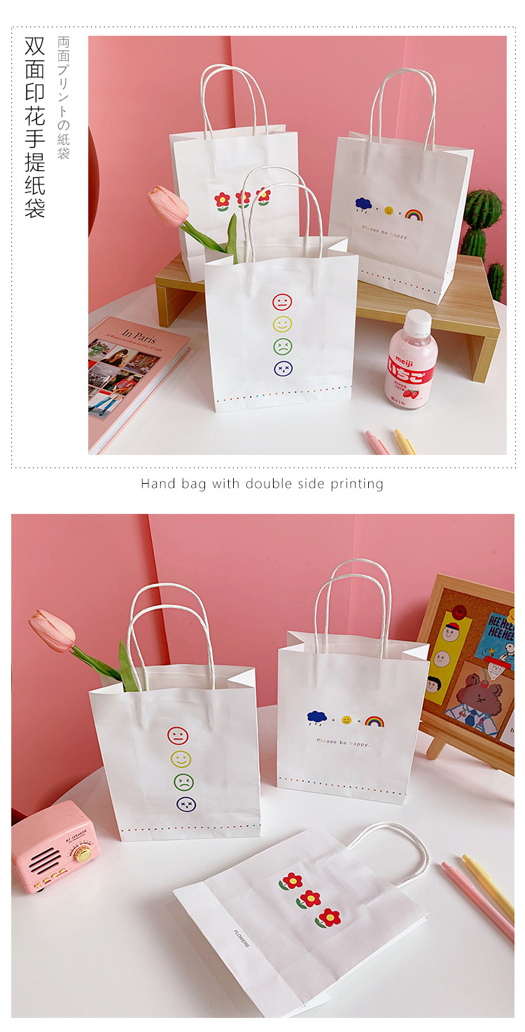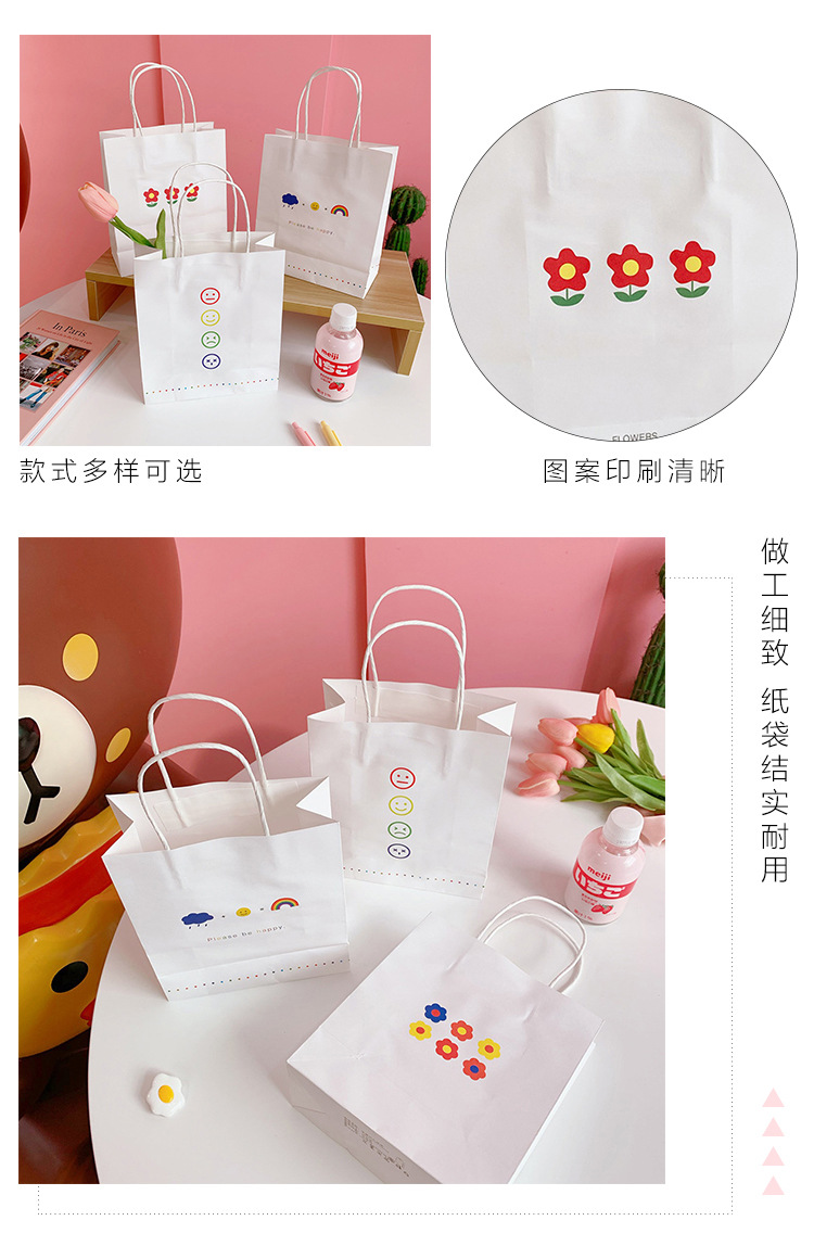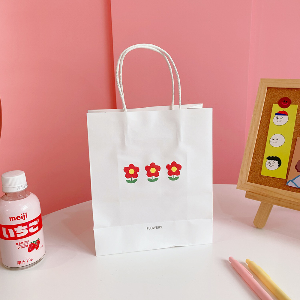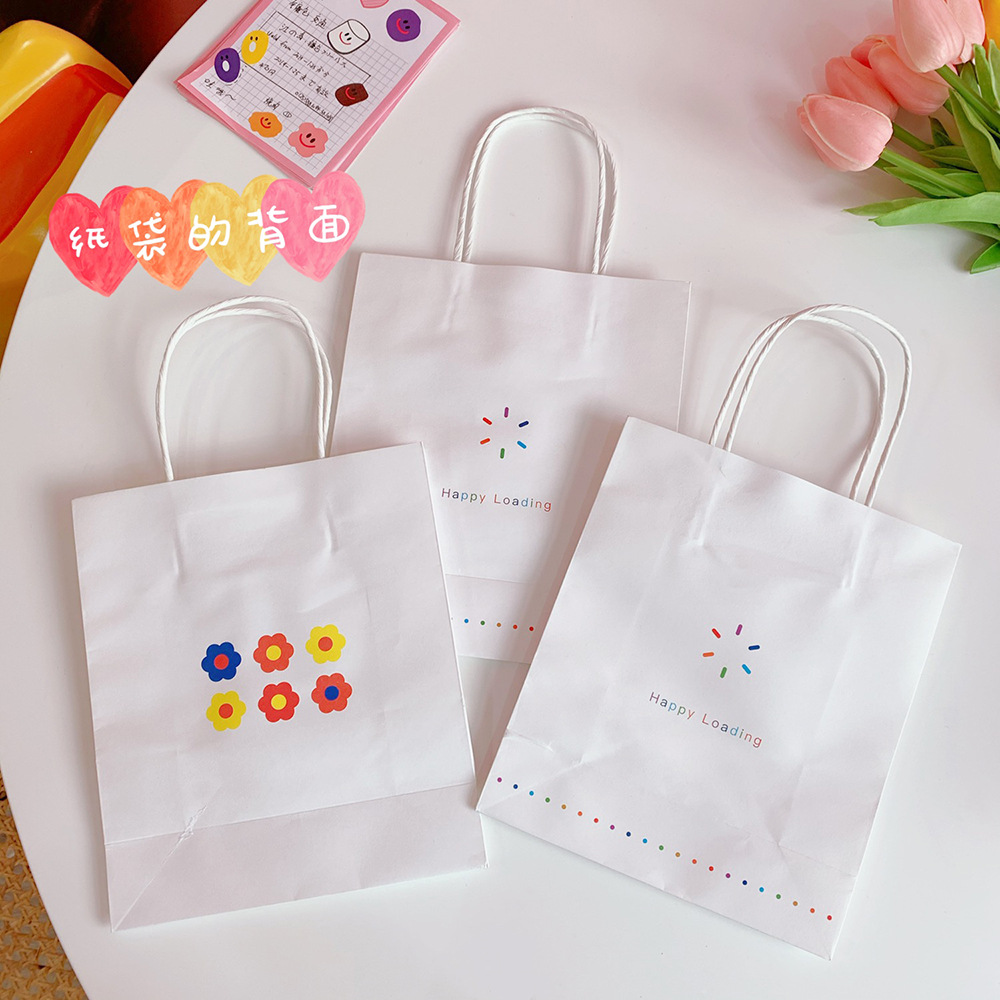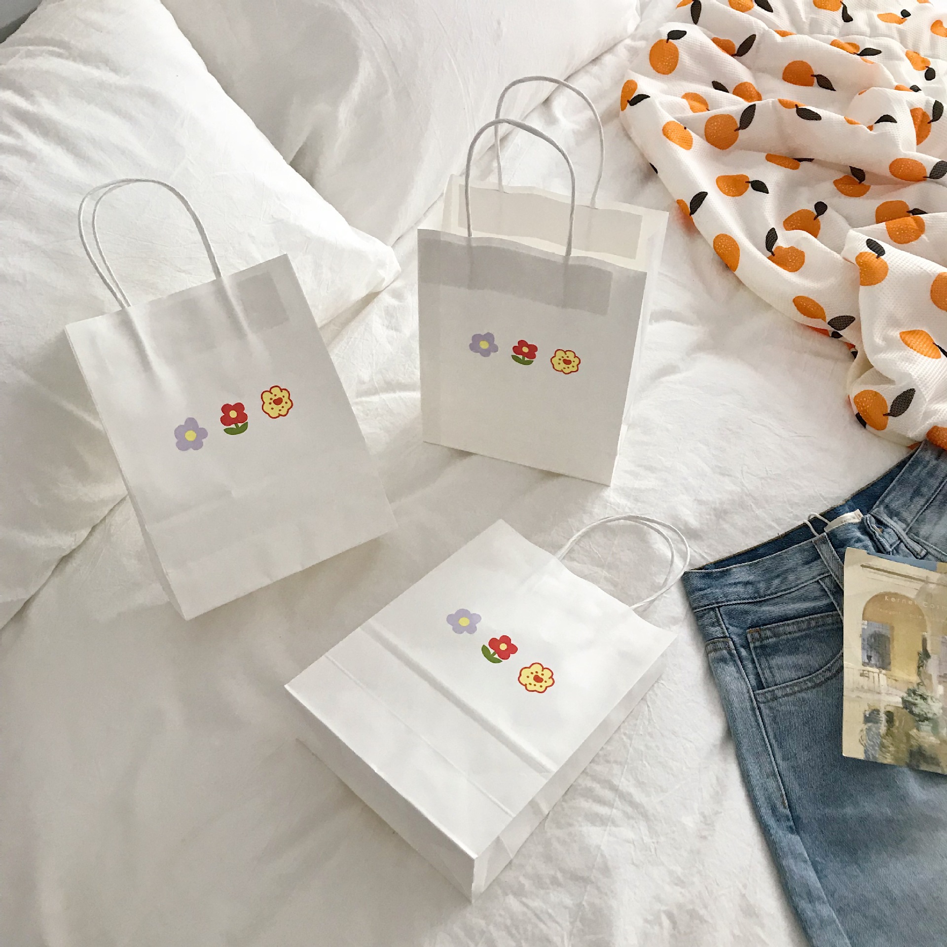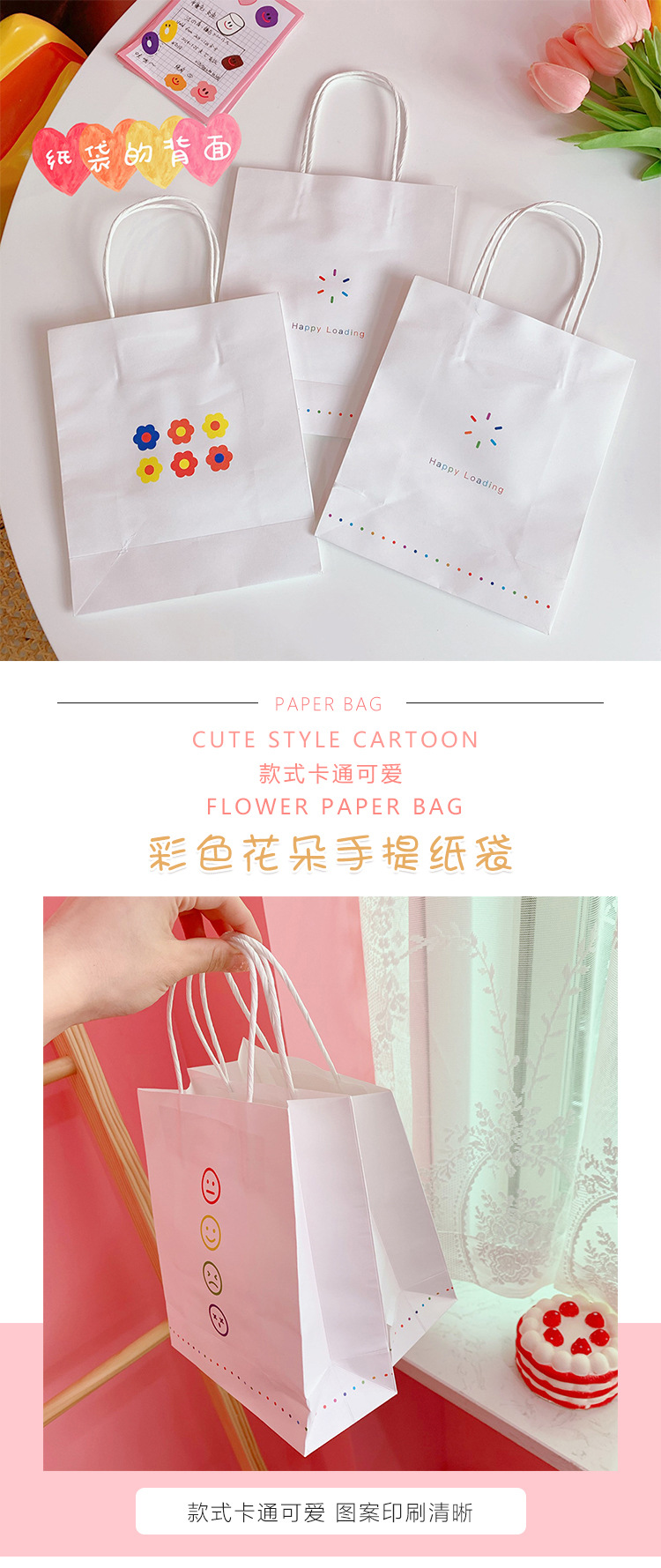 韩风ins 简约彩色花朵双面印花白色简约手提袋购物礼品袋拍照道具