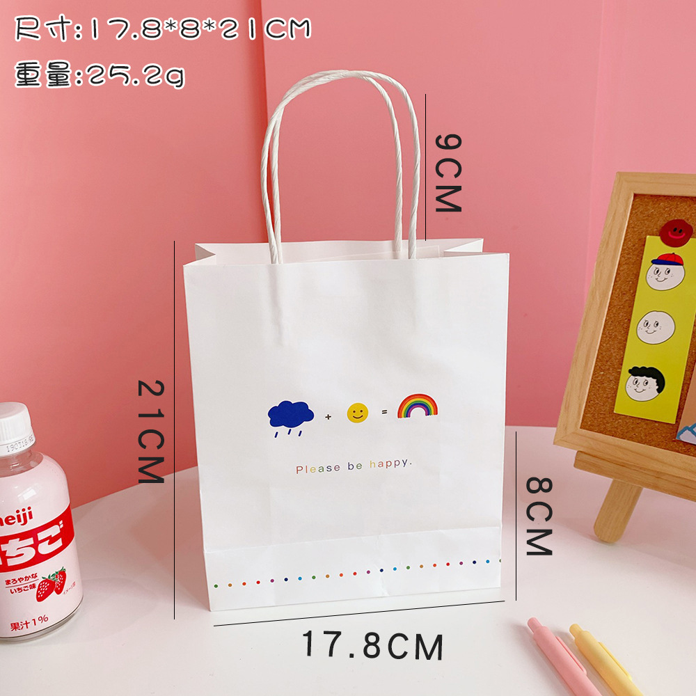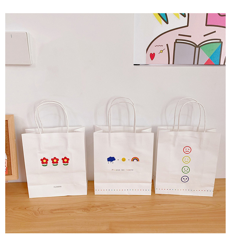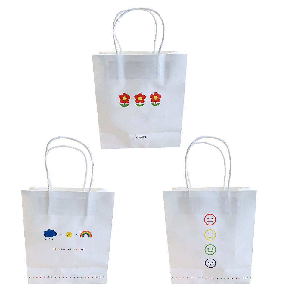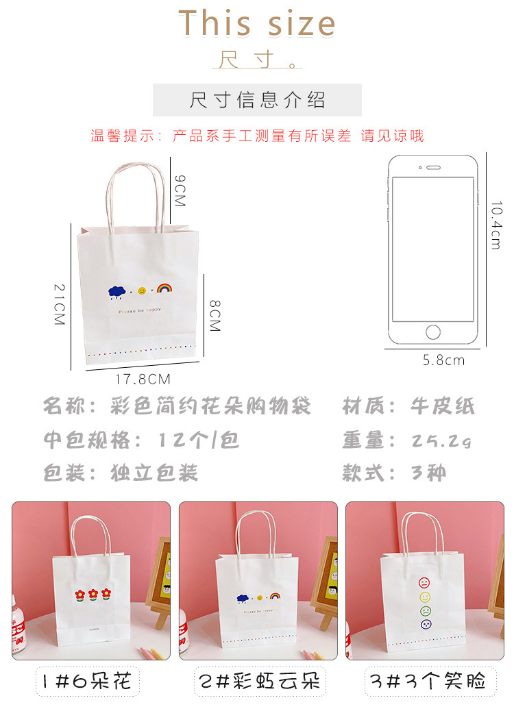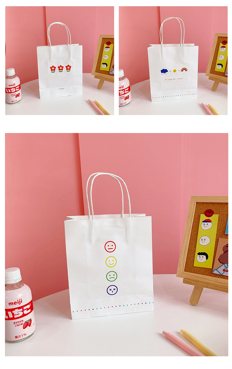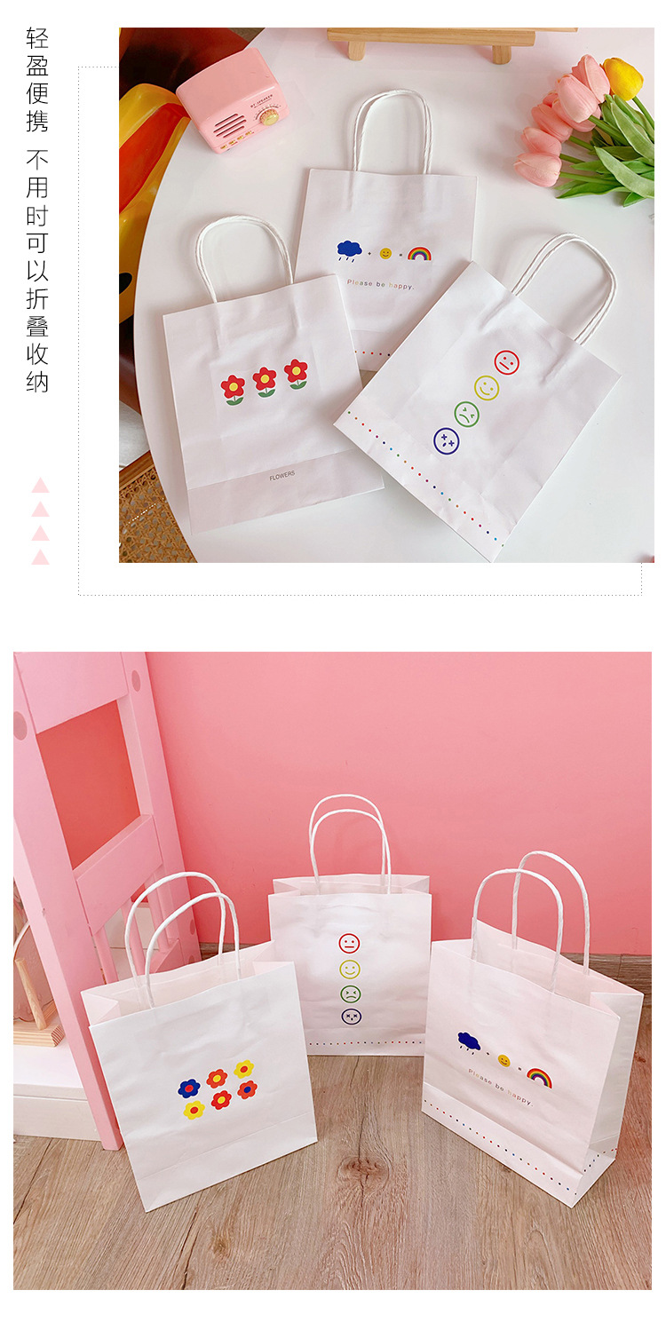 韩风ins 简约彩色花朵双面印花白色简约手提袋购物礼品袋拍照道具
