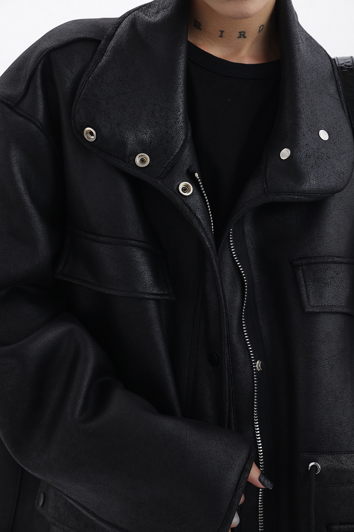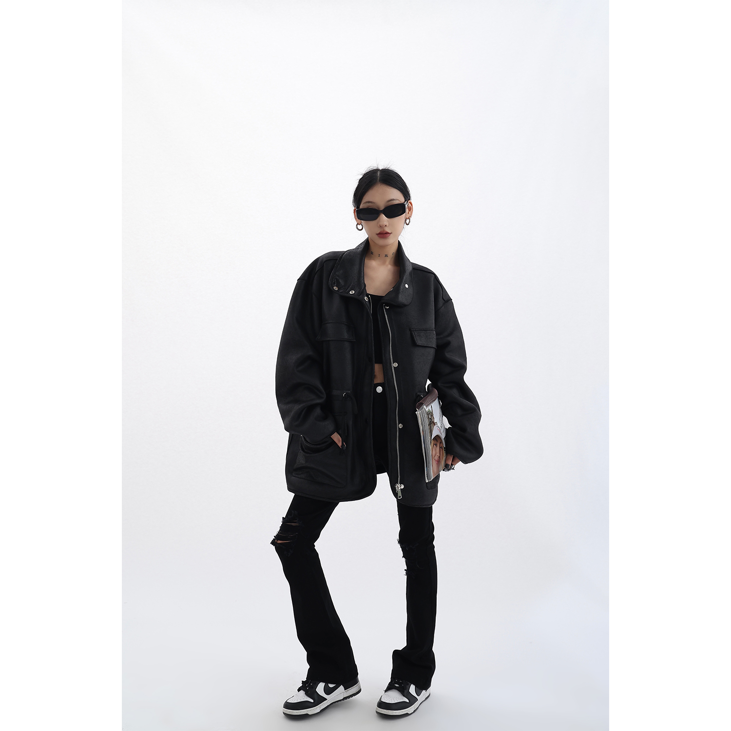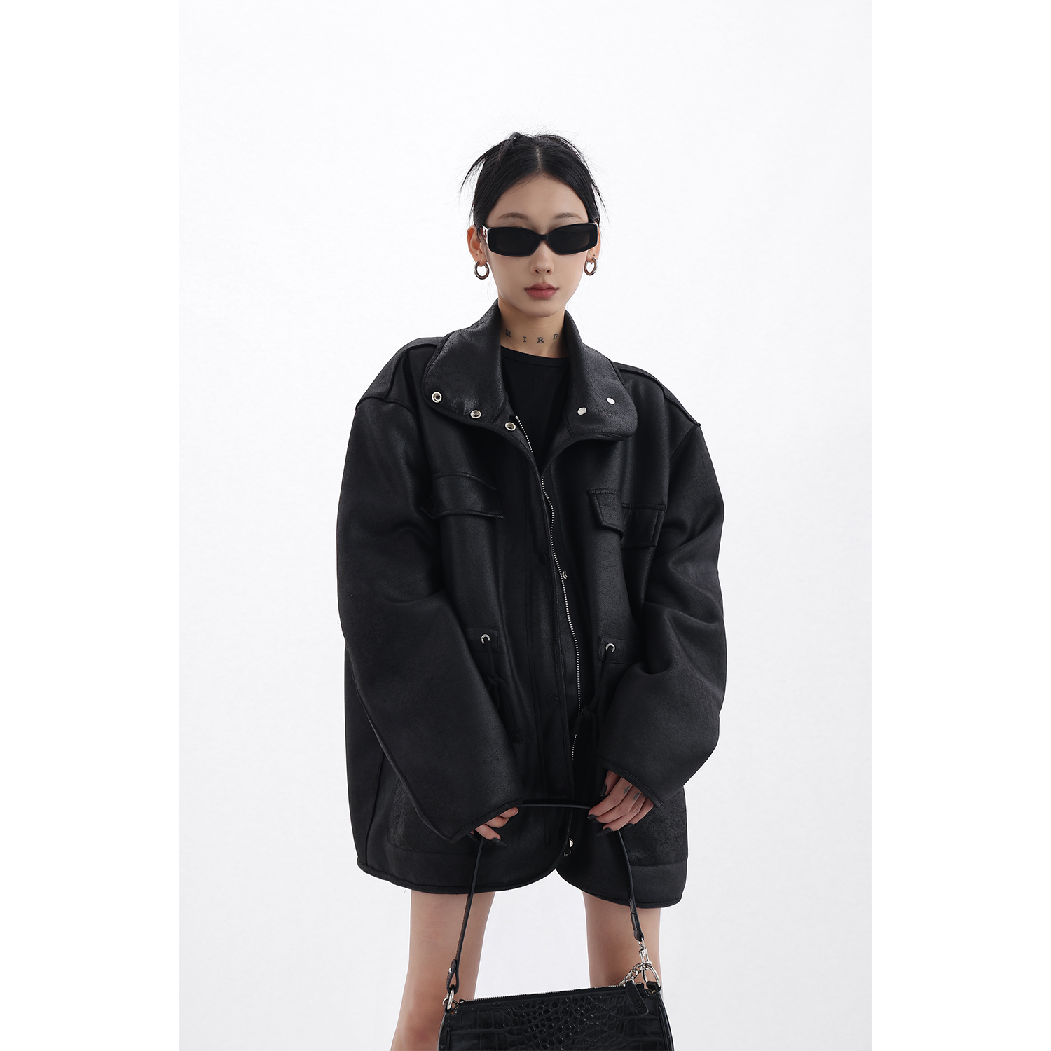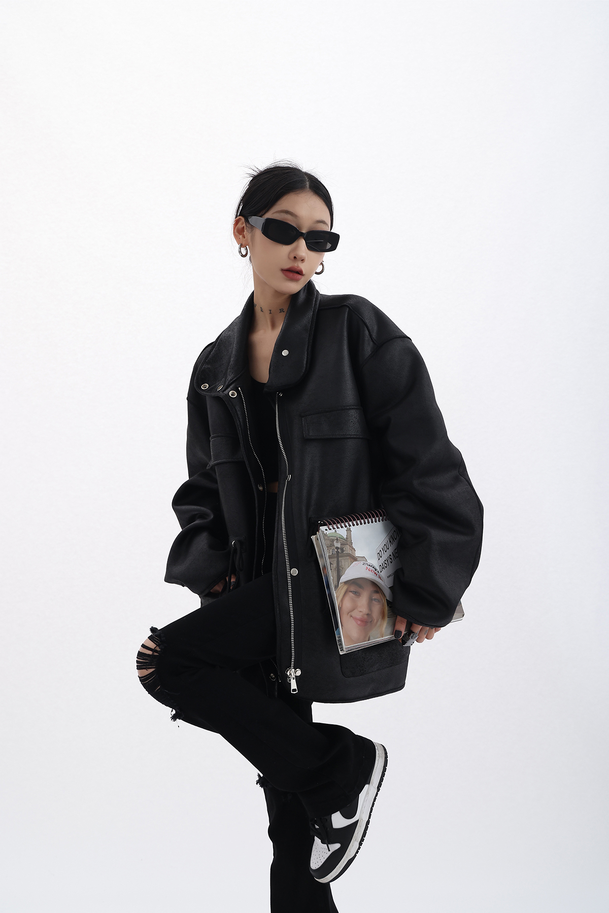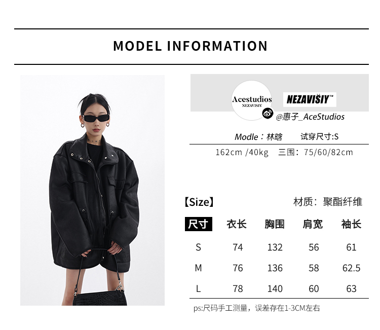 Acestudios 設計感寬鬆黑色皮衣外套女2023春季新款高街皮夾克潮