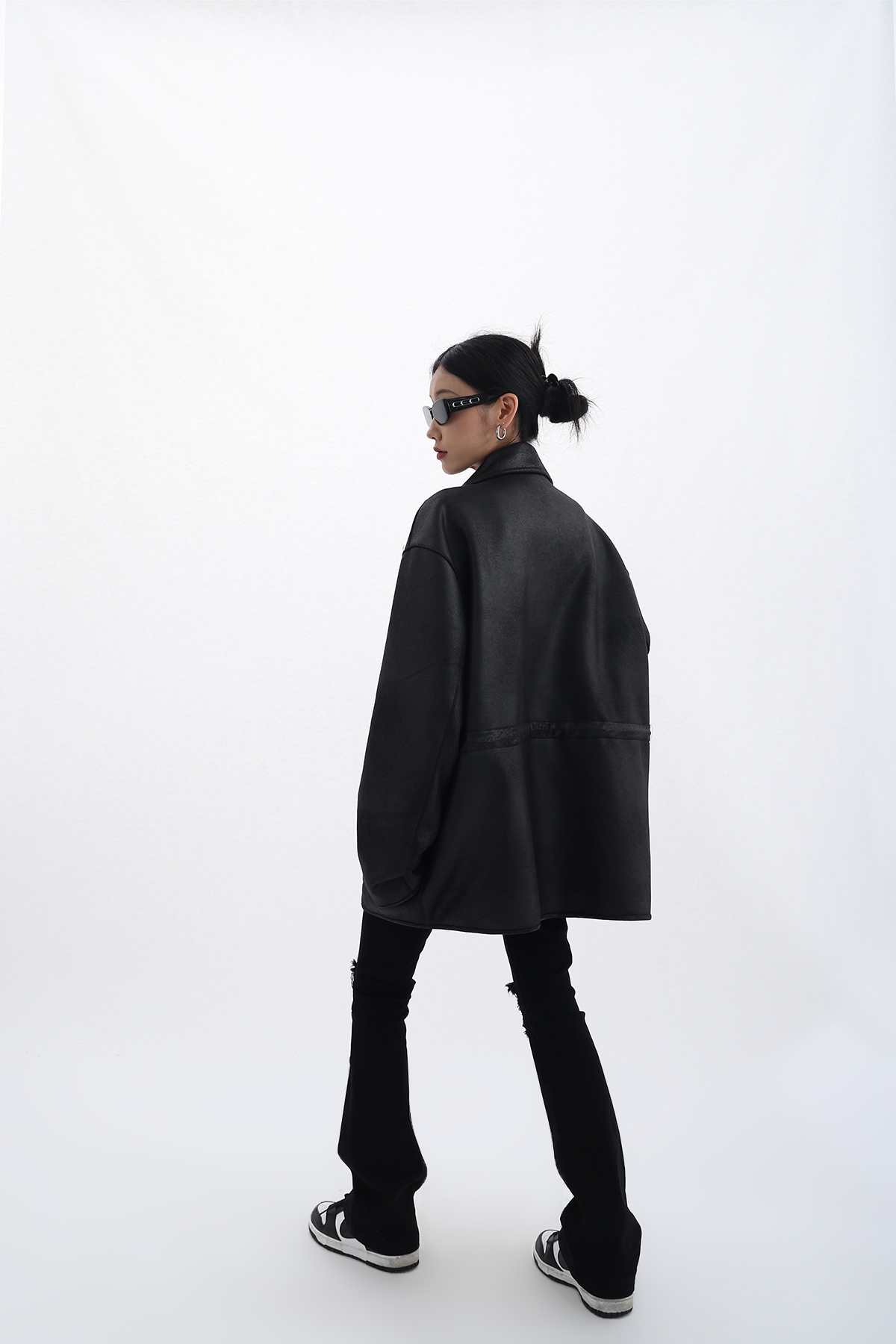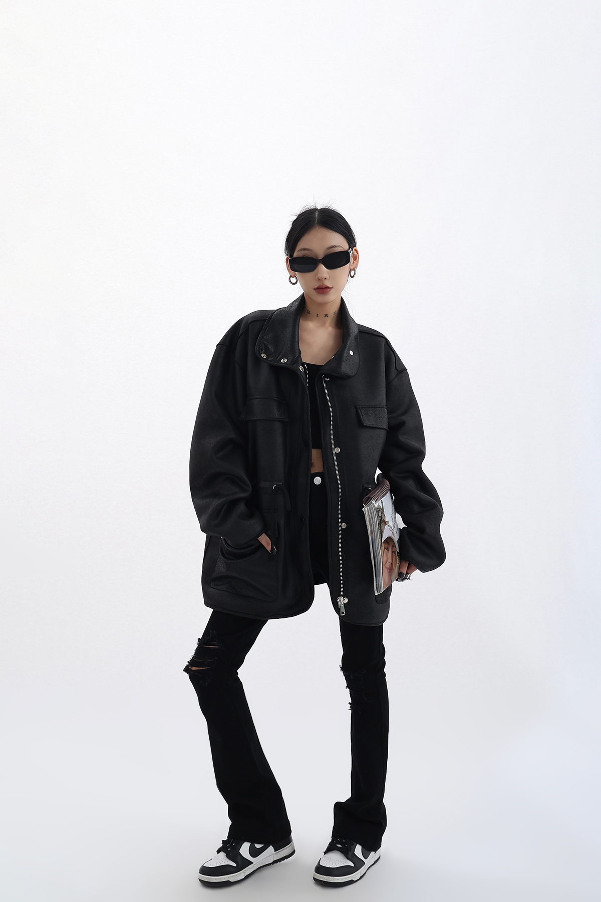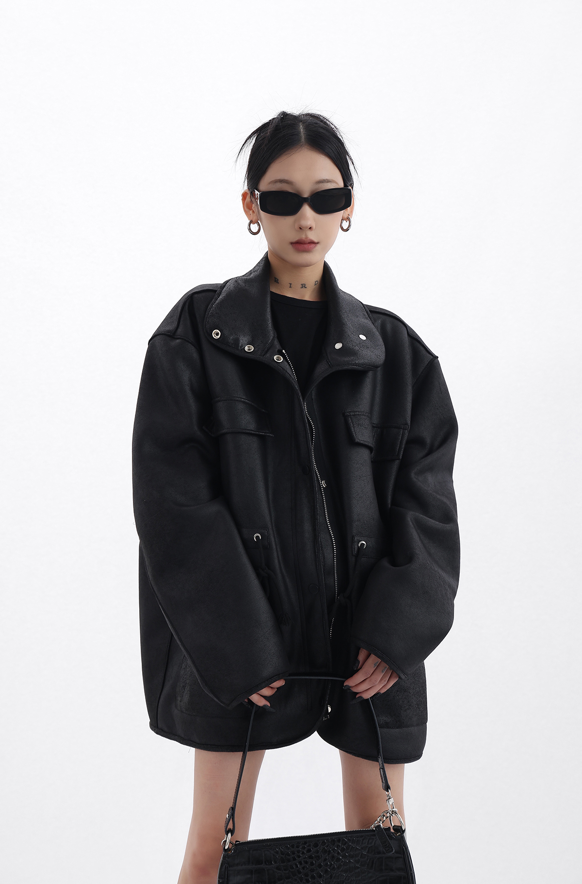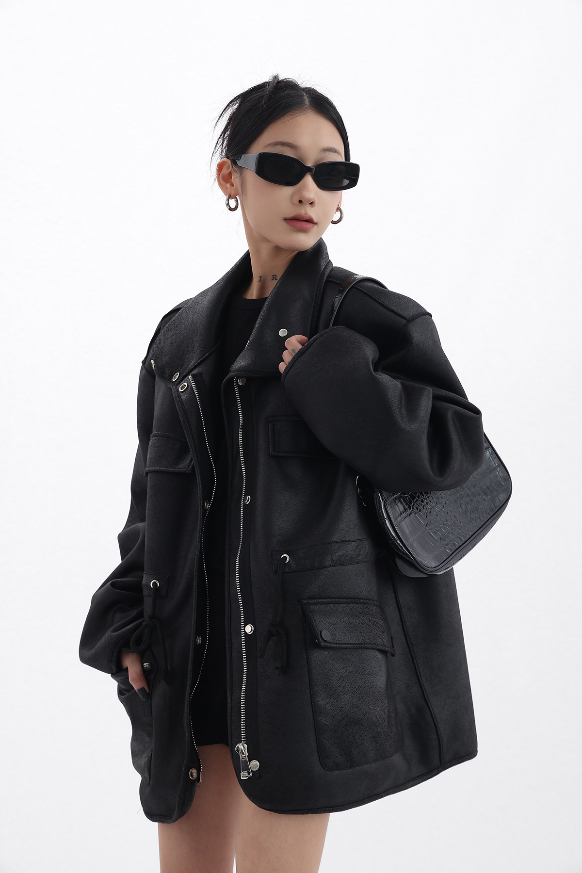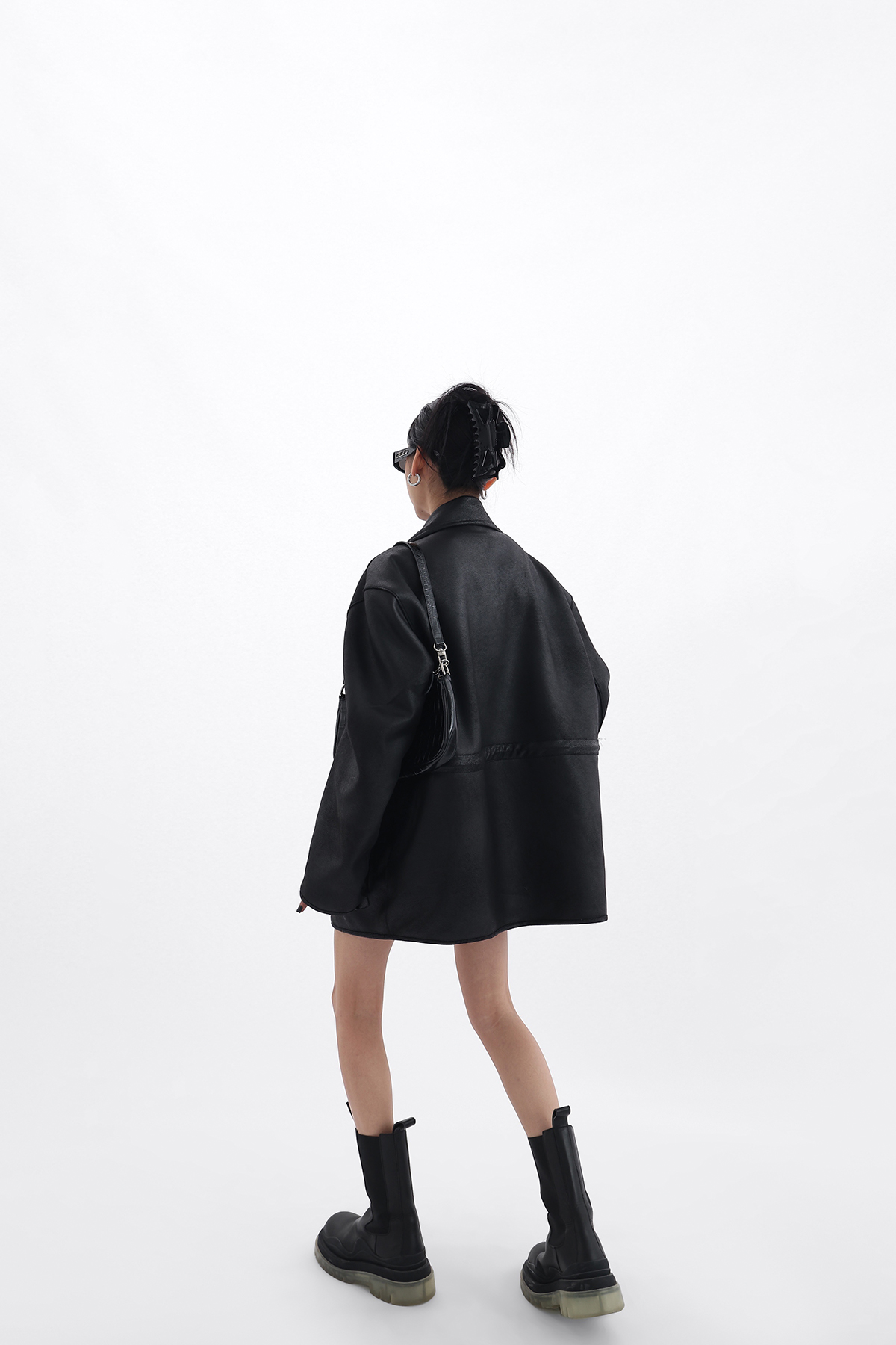 Acestudios 設計感寬鬆黑色皮衣外套女2023春季新款高街皮夾克潮
