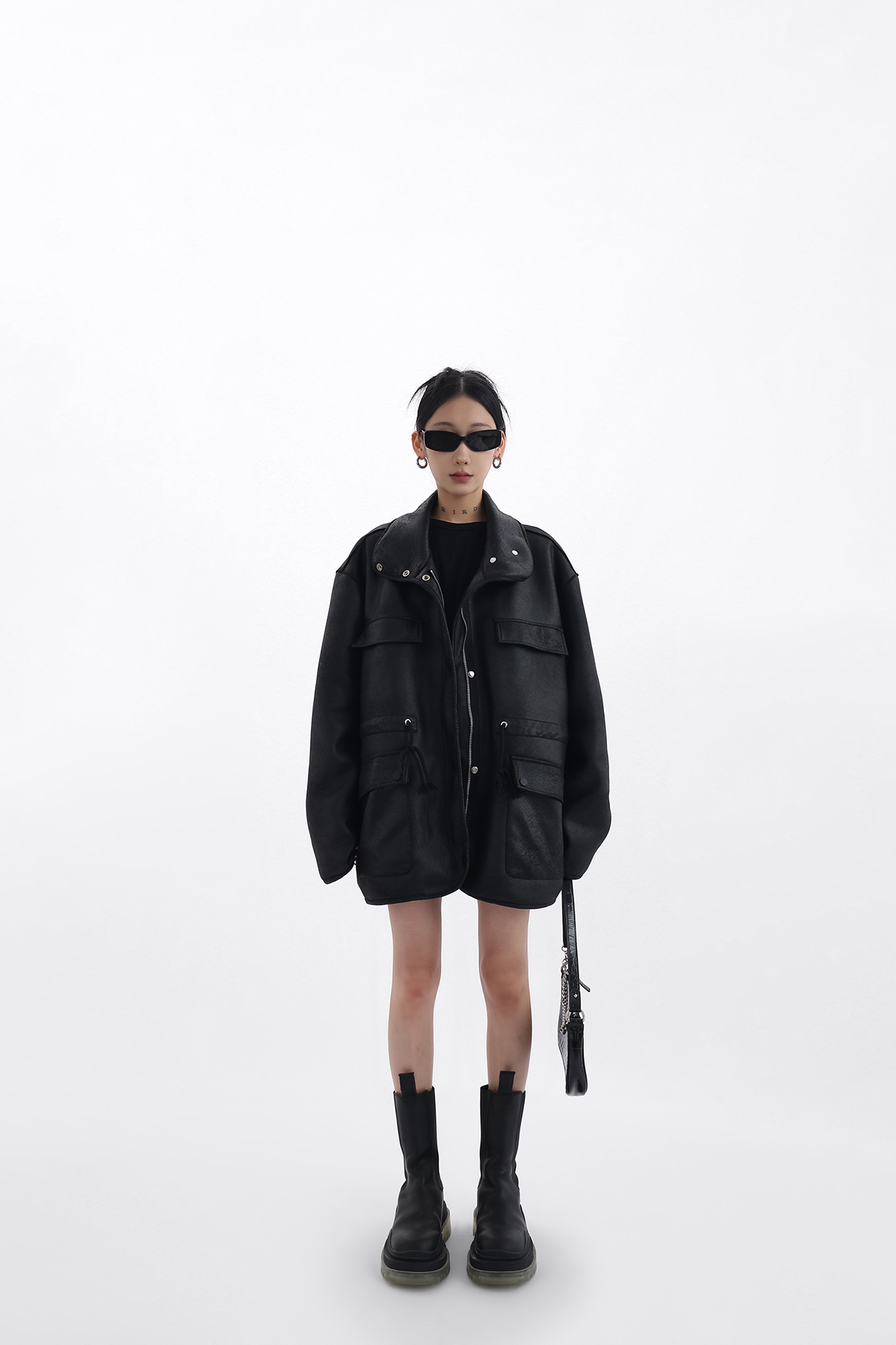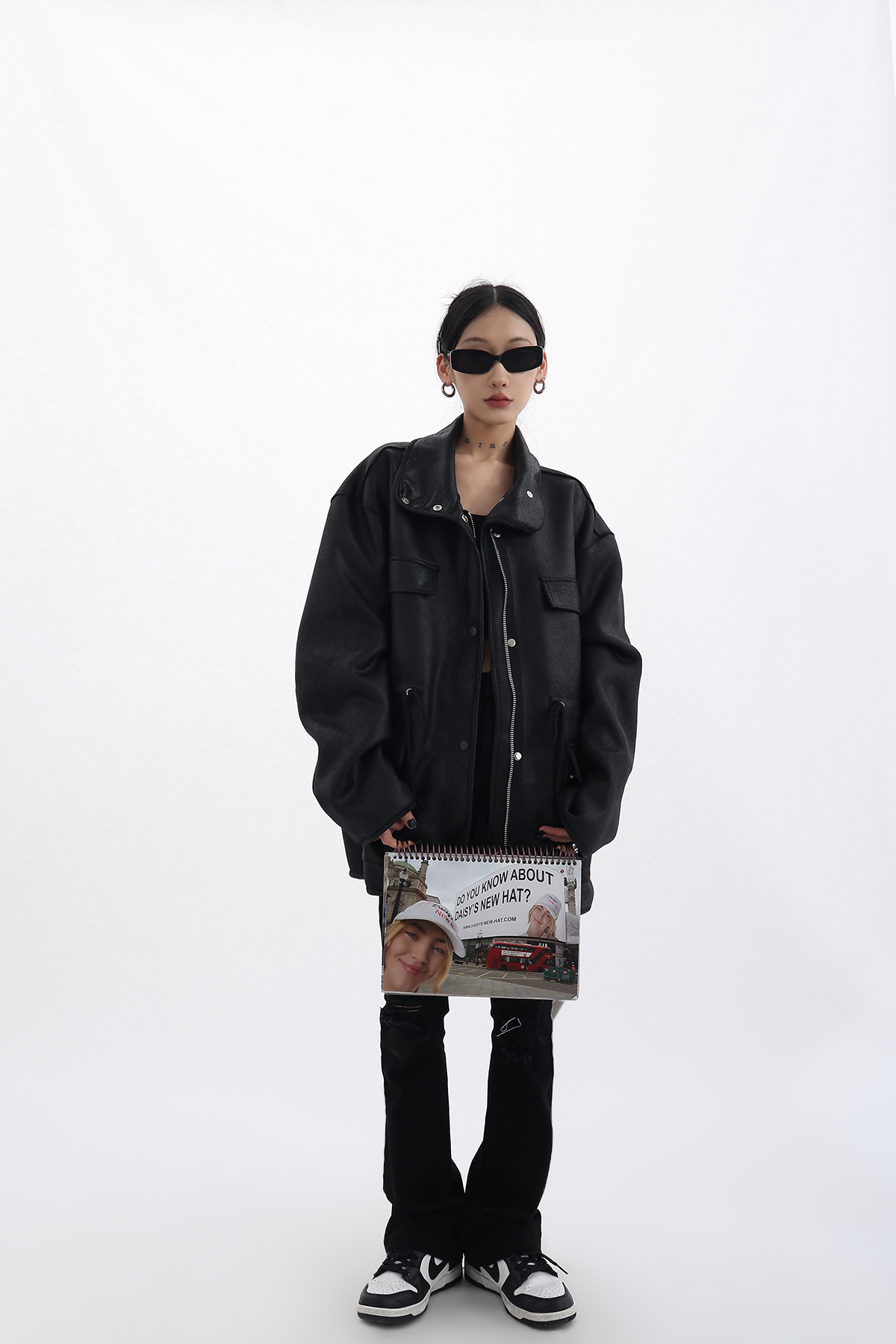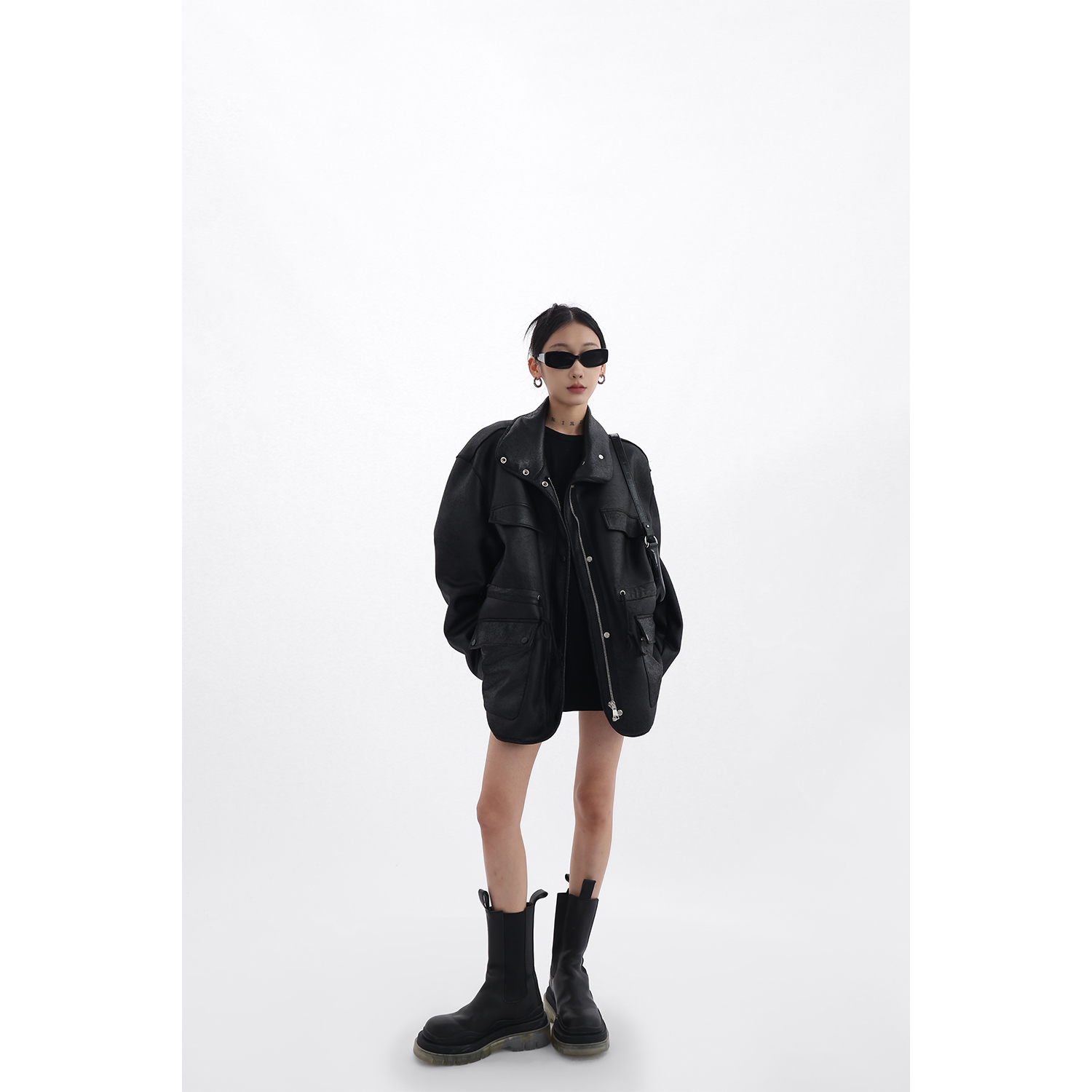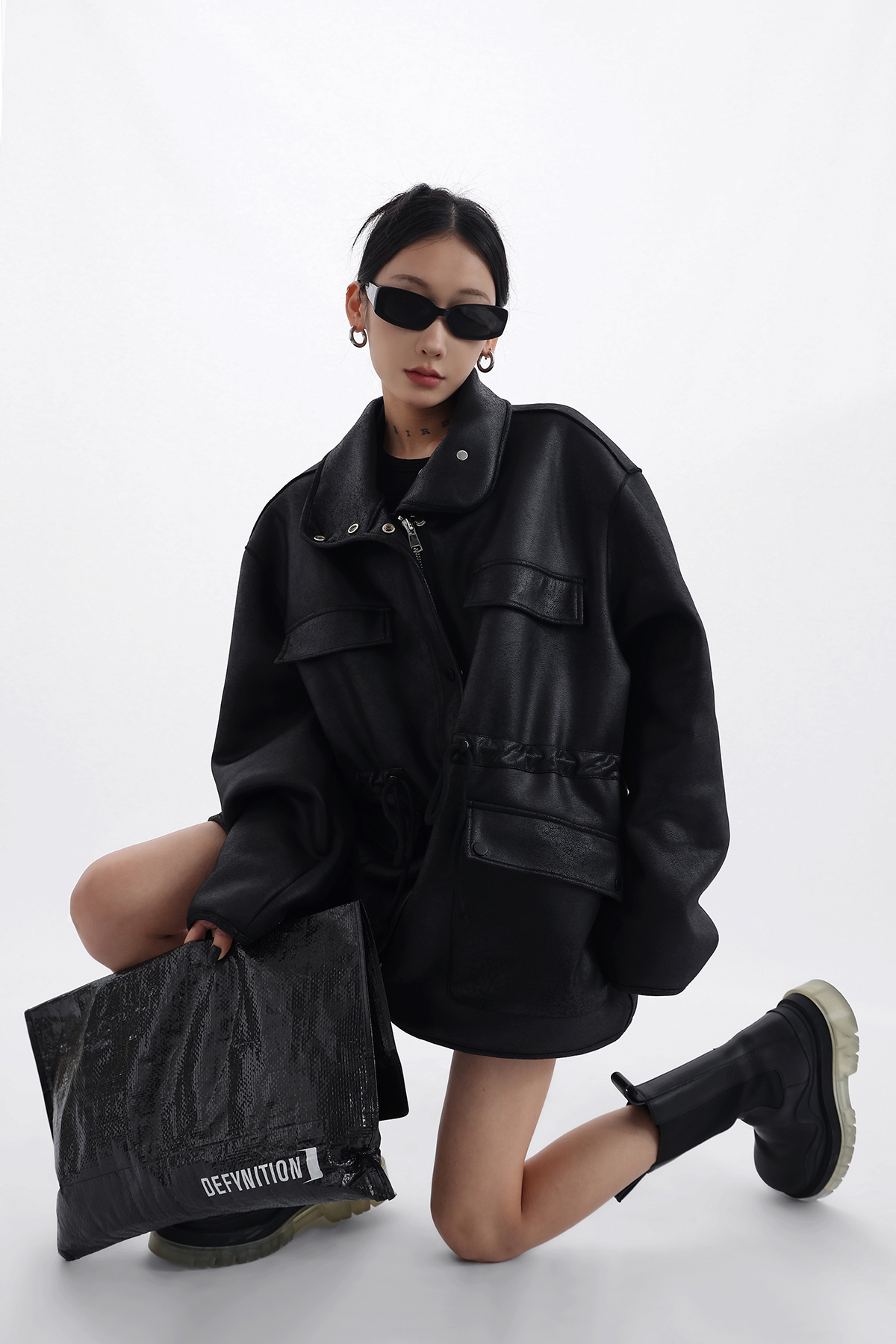 Acestudios 設計感寬鬆黑色皮衣外套女2023春季新款高街皮夾克潮