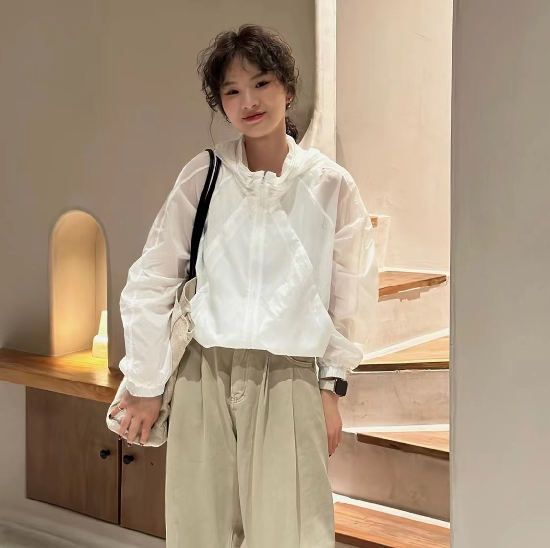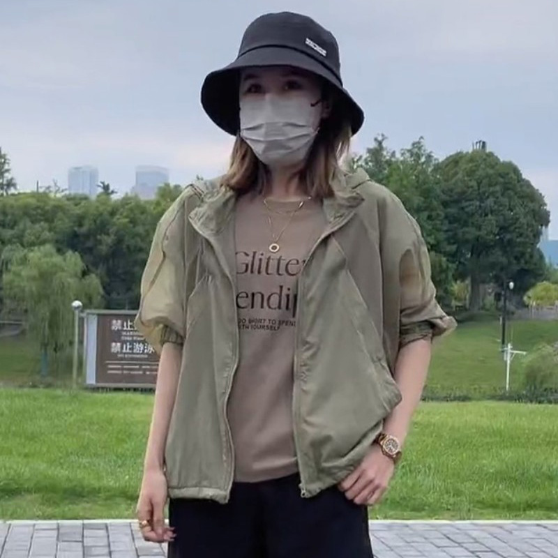 時尚寬鬆輕薄鏤空連帽防曬衣外套女2023夏高級感休閒洋派長袖開衫