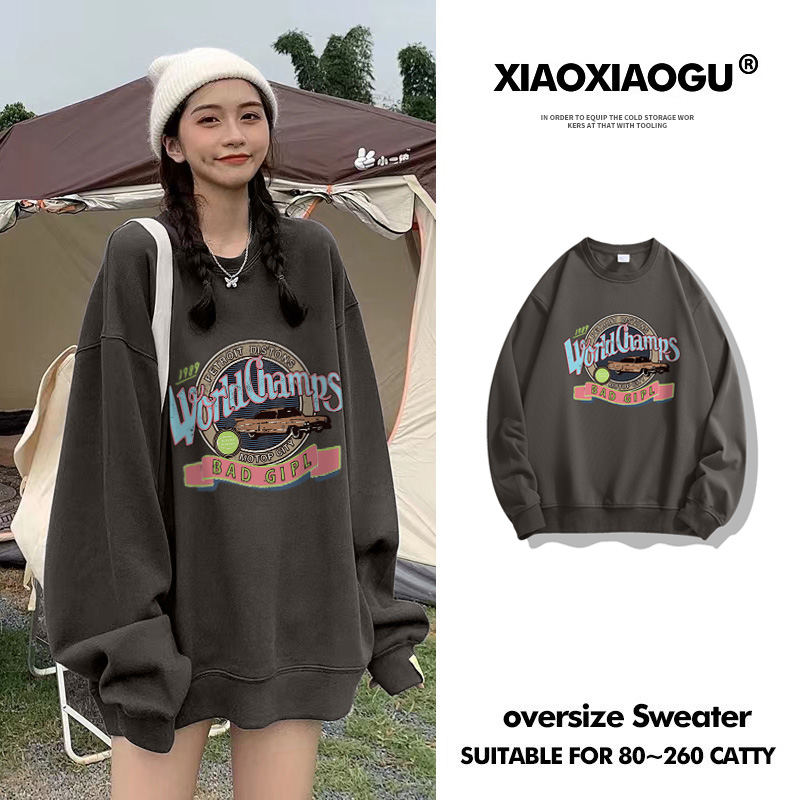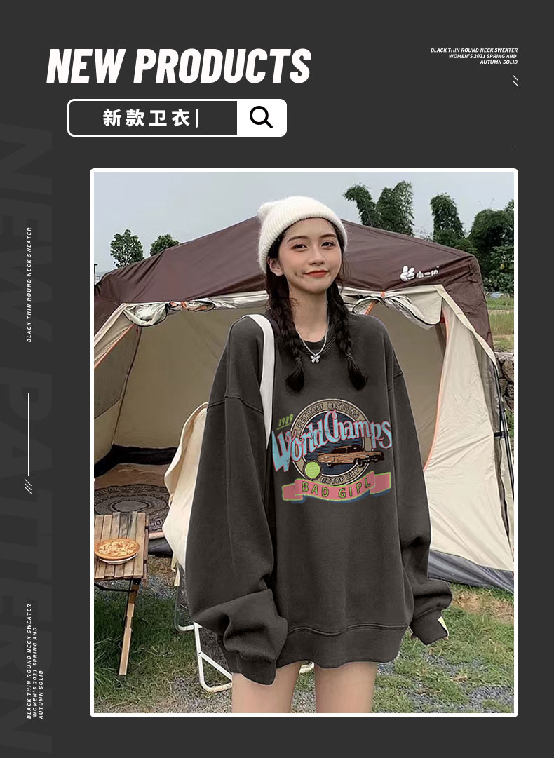 秋季衛衣女薄款學生韓版潮牌大尺碼寬鬆慵懶風圓領復古美式上衣長袖