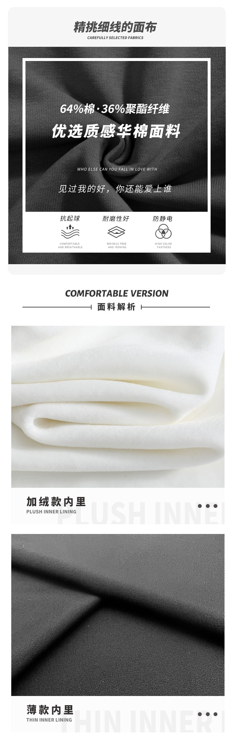 材質成分 棉64% 聚酯纖維36%