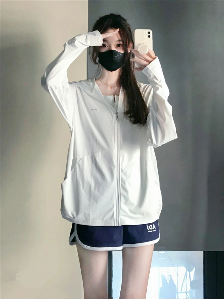 白色冰絲防曬衣女夏季2023新款戶外遮陽輕薄透氣開衫抗UV外套