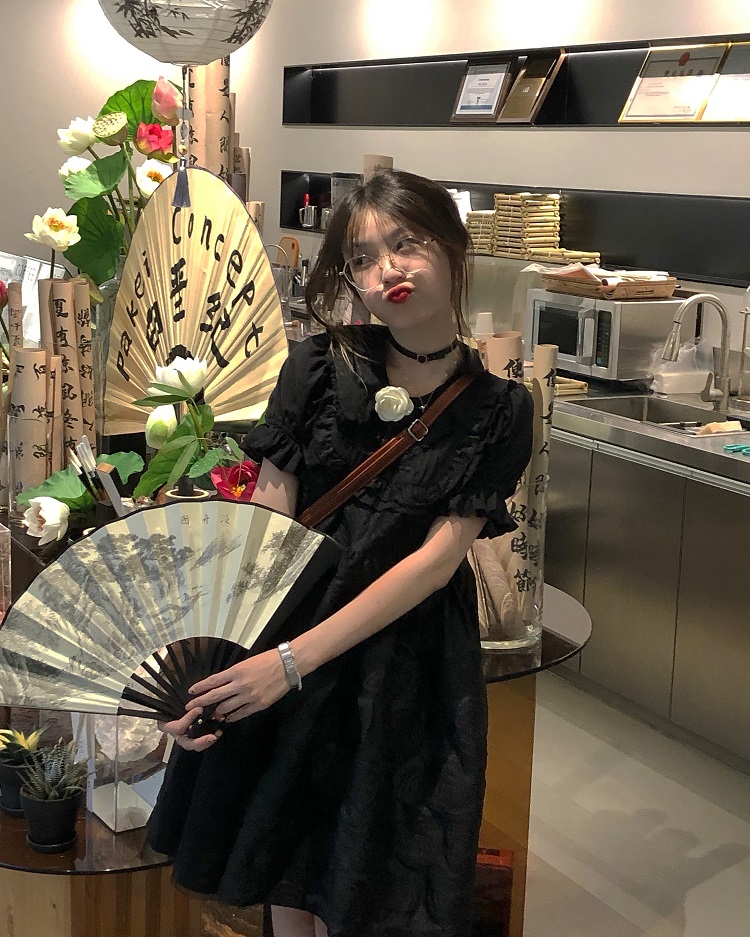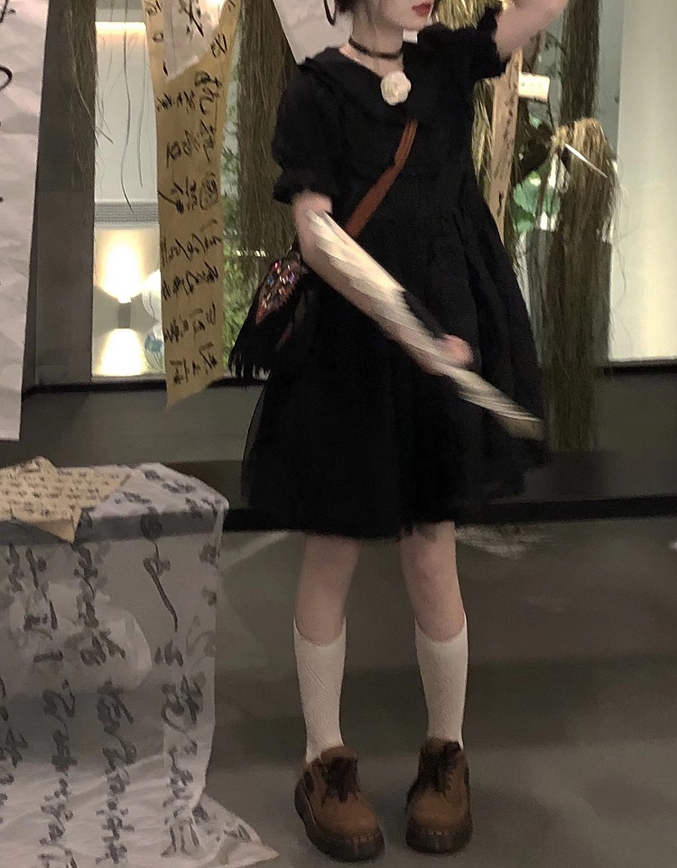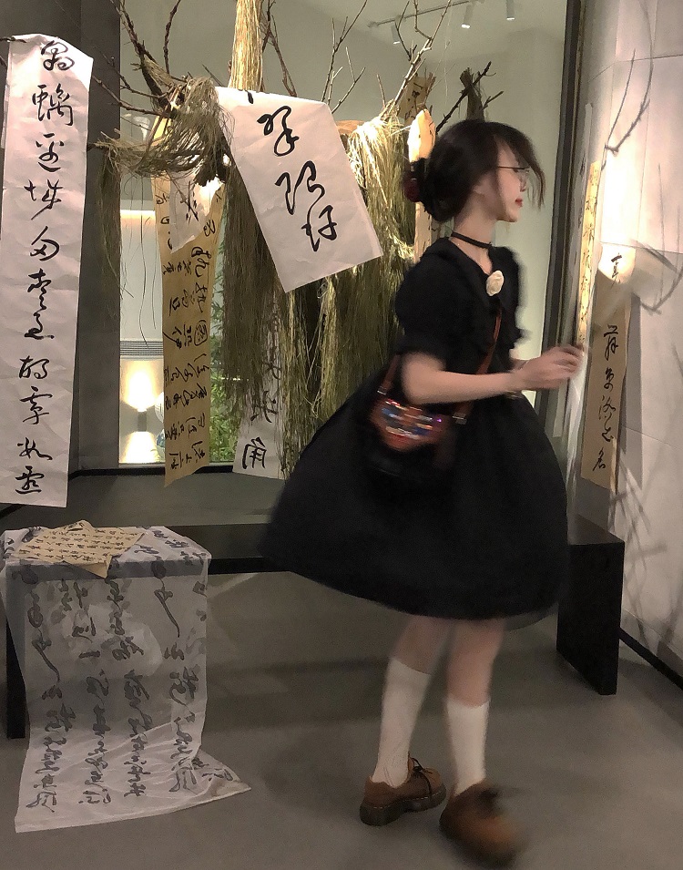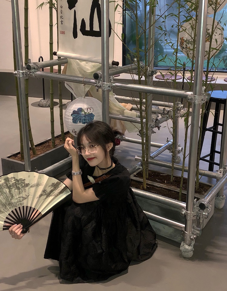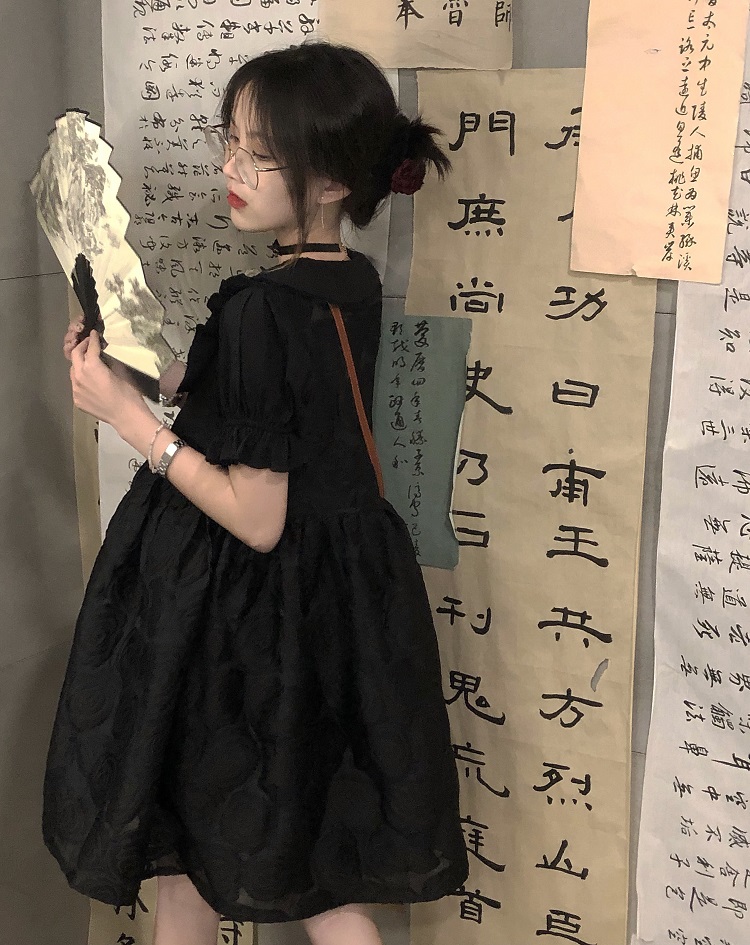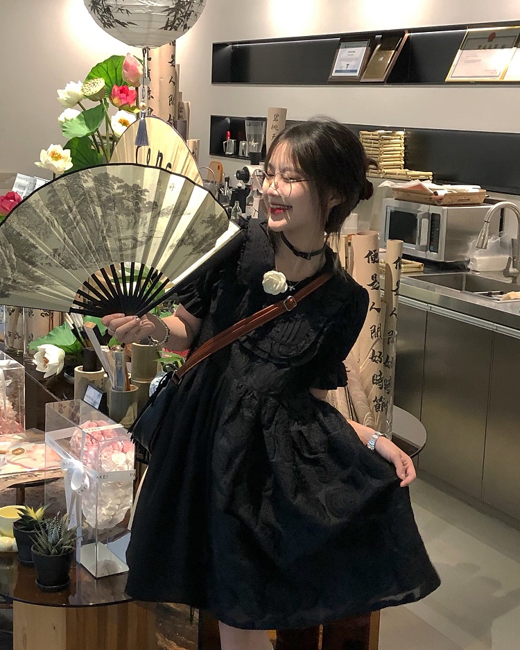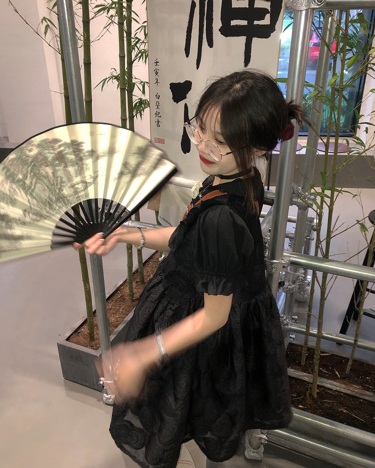 【ALITTLE 亂糟糟】[古香黑魔法]重工玫瑰提花拼接旗盤扣洋裝女