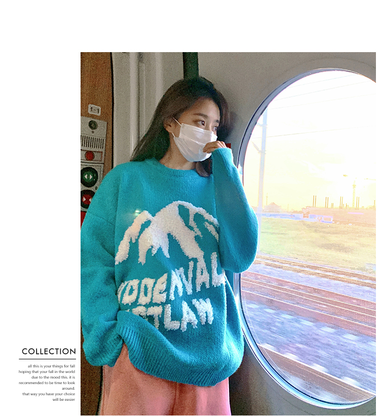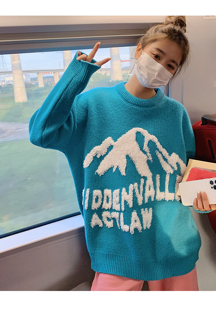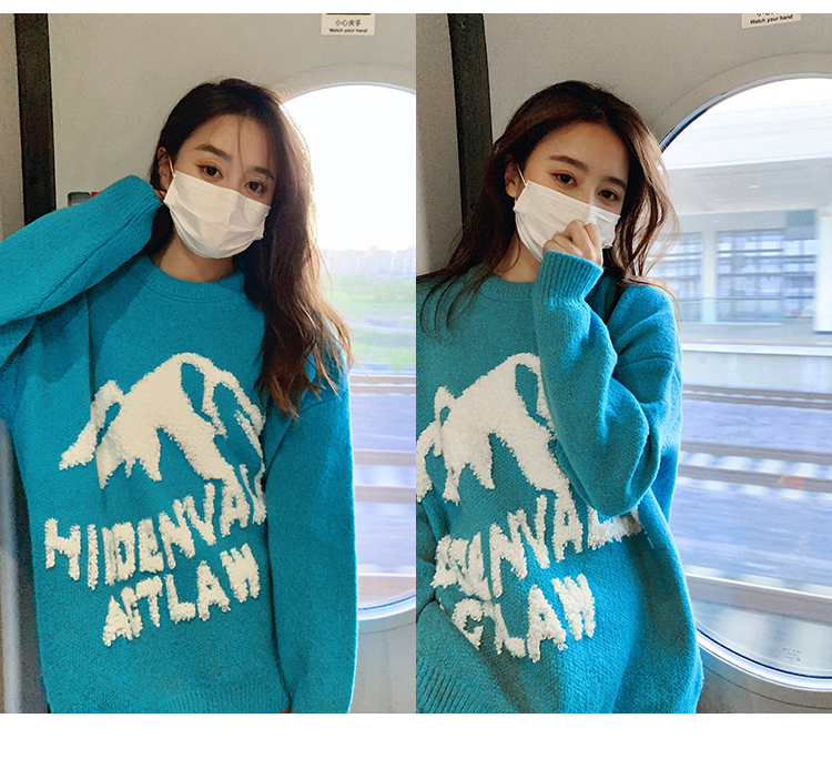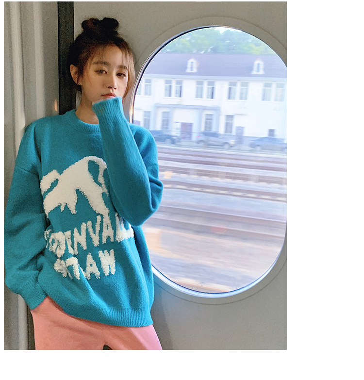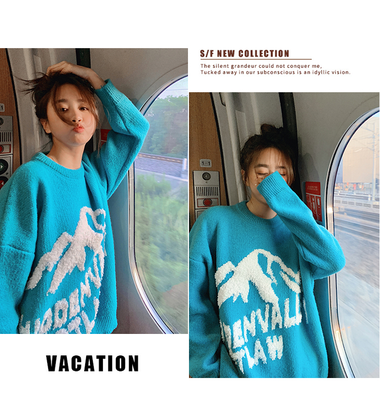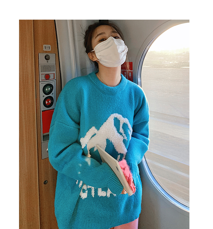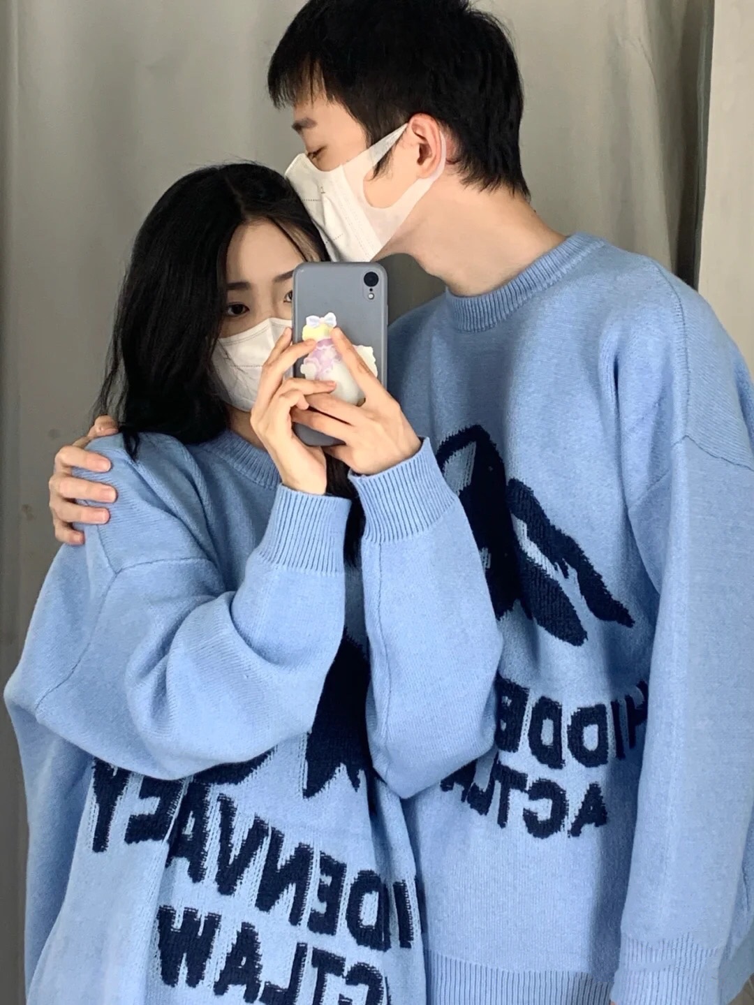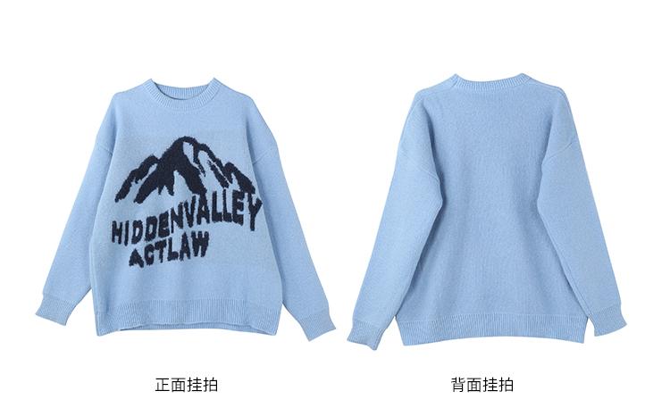 Jew4room奶藍色復古風慵懶風毛衣情侶潮牌寬鬆百搭套頭男針織外套
