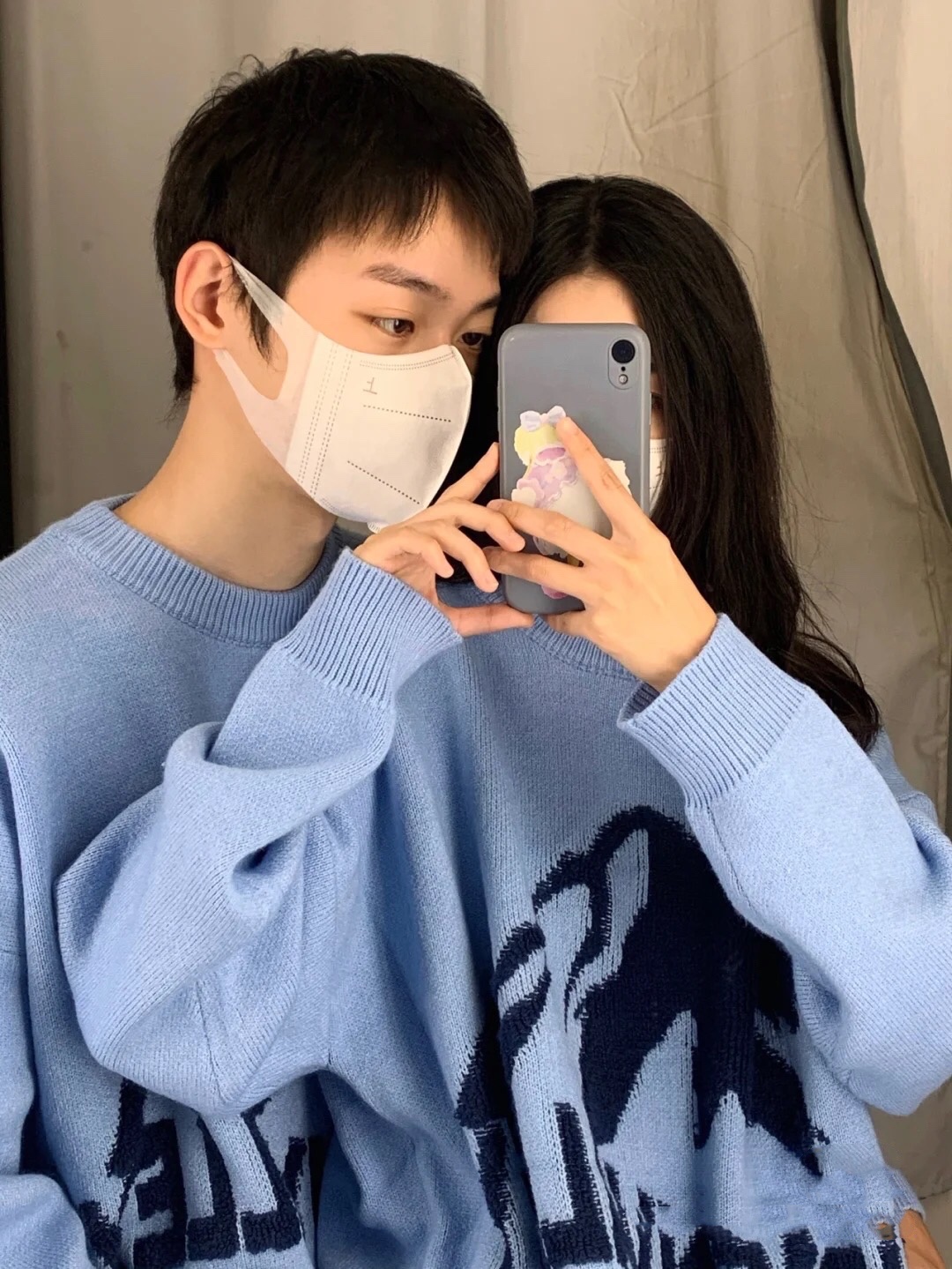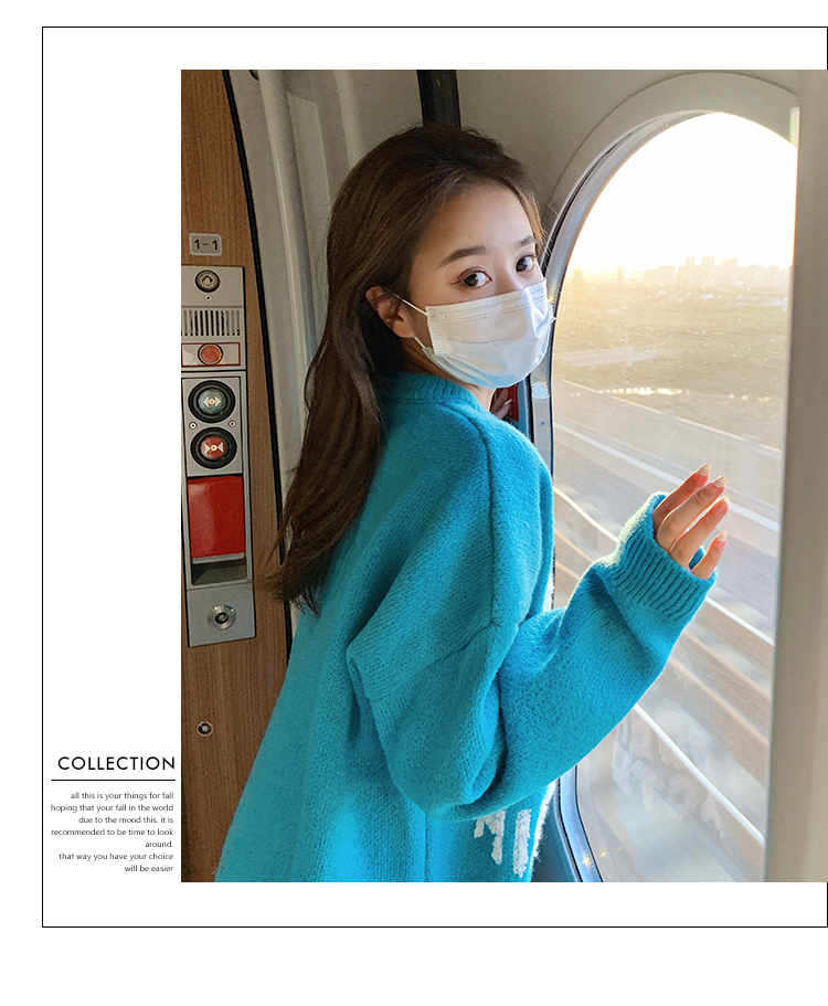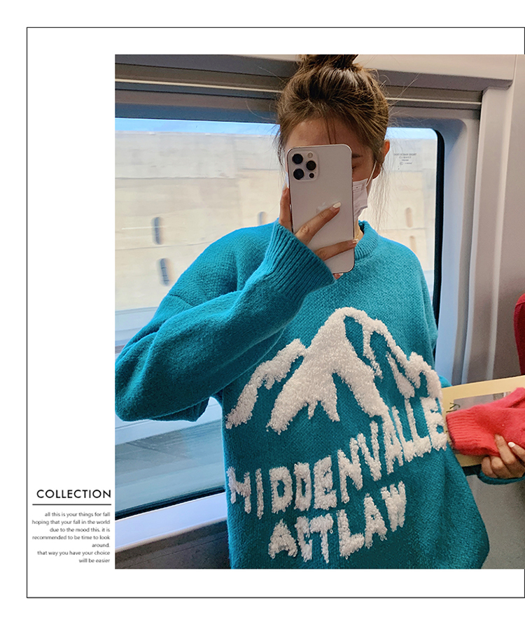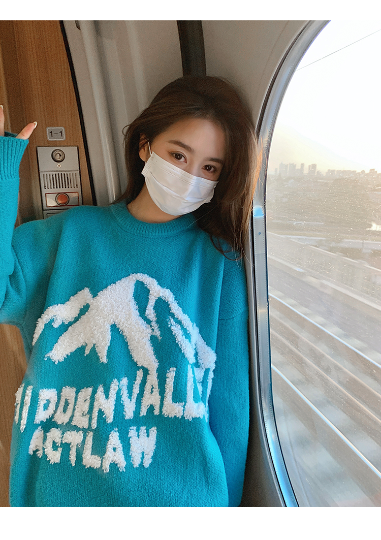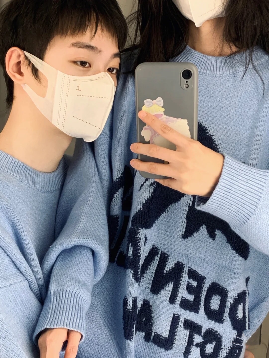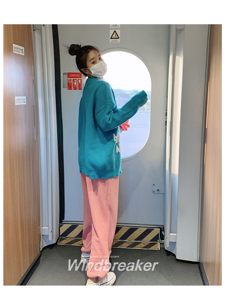 Jew4room奶藍色復古風慵懶風毛衣情侶潮牌寬鬆百搭套頭男針織外套
