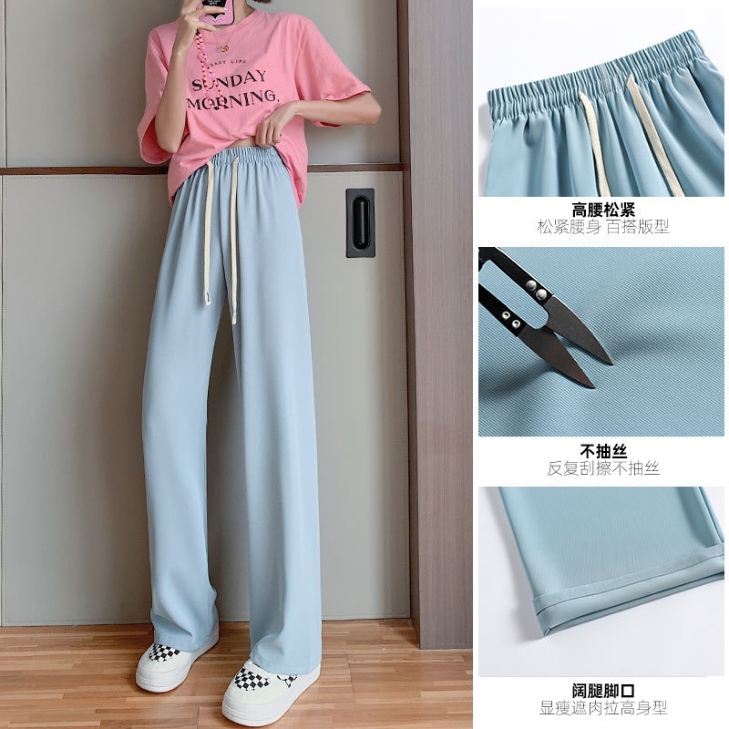 冰丝阔腿裤女夏薄款2023新款高腰显瘦宽松直筒垂感休闲西装裤