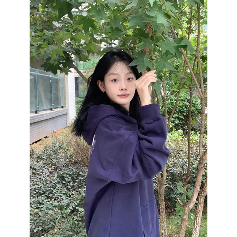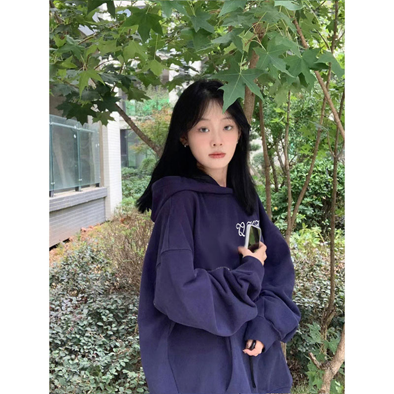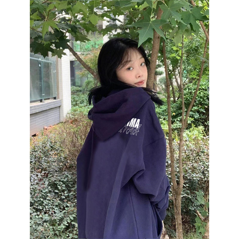 美式高街復古重磅加絨加厚連帽運動衫女2023秋冬季新款小眾上衣女潮
