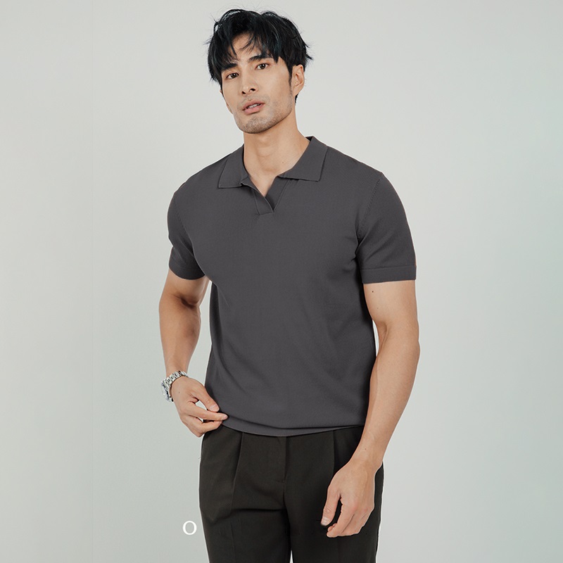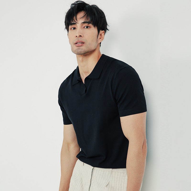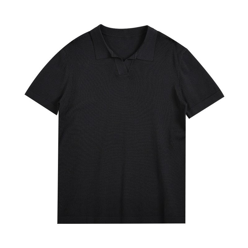 輕熟風夏季冰絲涼感男翻領針織POLO衫白色商務高級感黑色短袖T恤