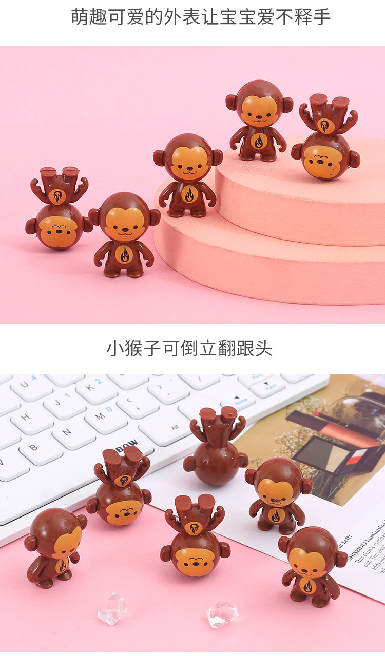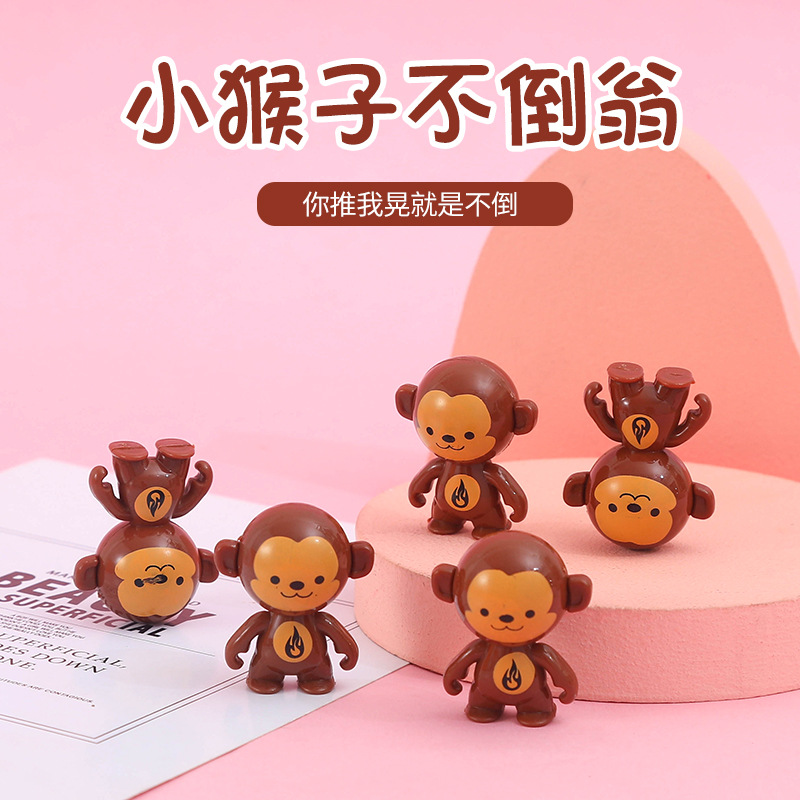 网红不倒翁卡通小玩具倒地旋转特技小呆萌猴子扭蛋地推礼品可代发