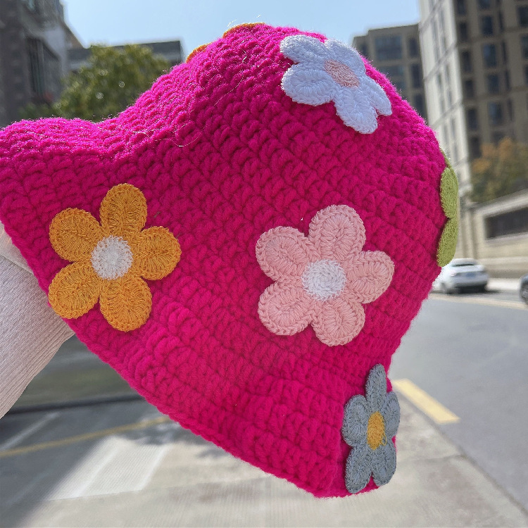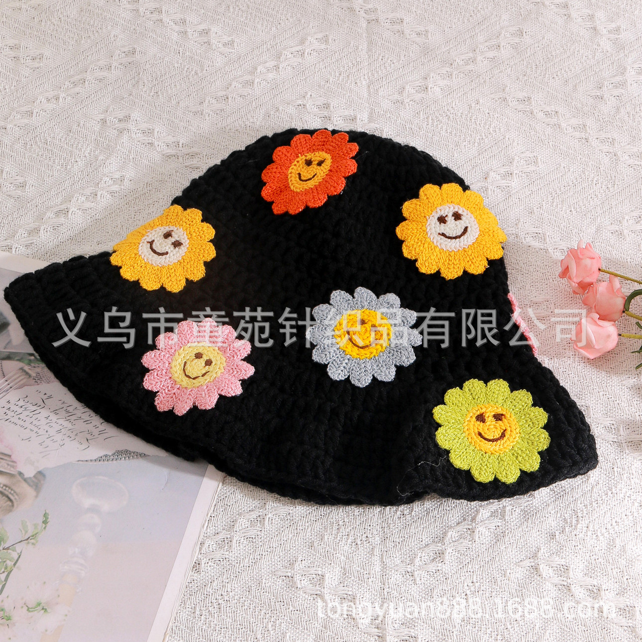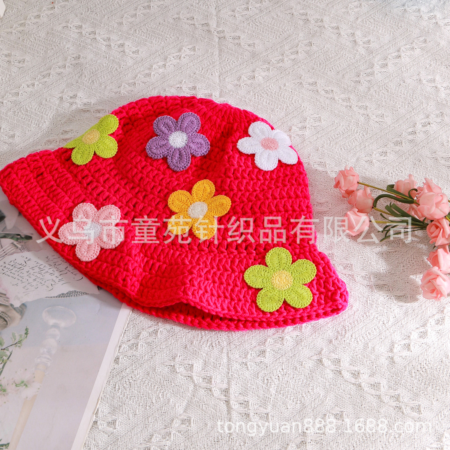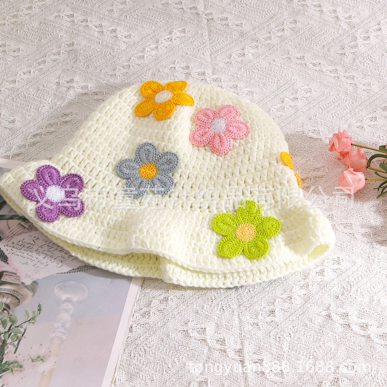 新款韩国渔夫帽百搭韩版毛线钩织手工花朵成人小清新地摊帽子批发