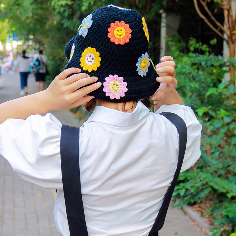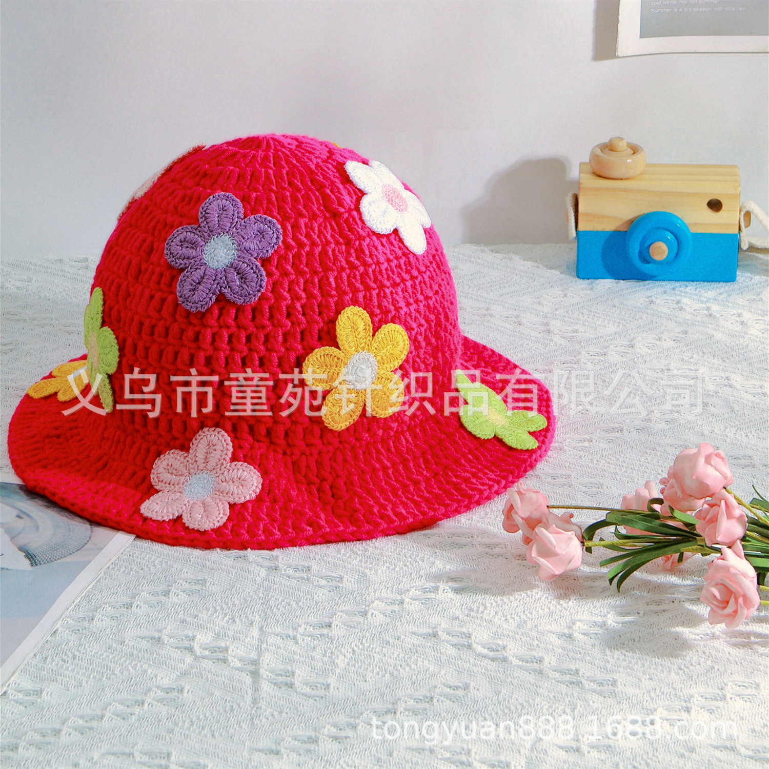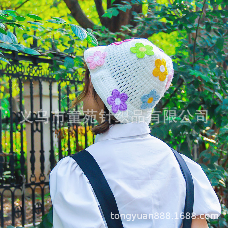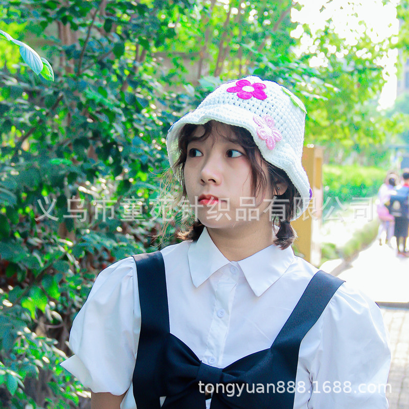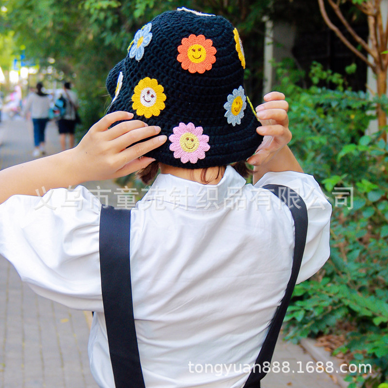 新款韩国渔夫帽百搭韩版毛线钩织手工花朵成人小清新地摊帽子批发