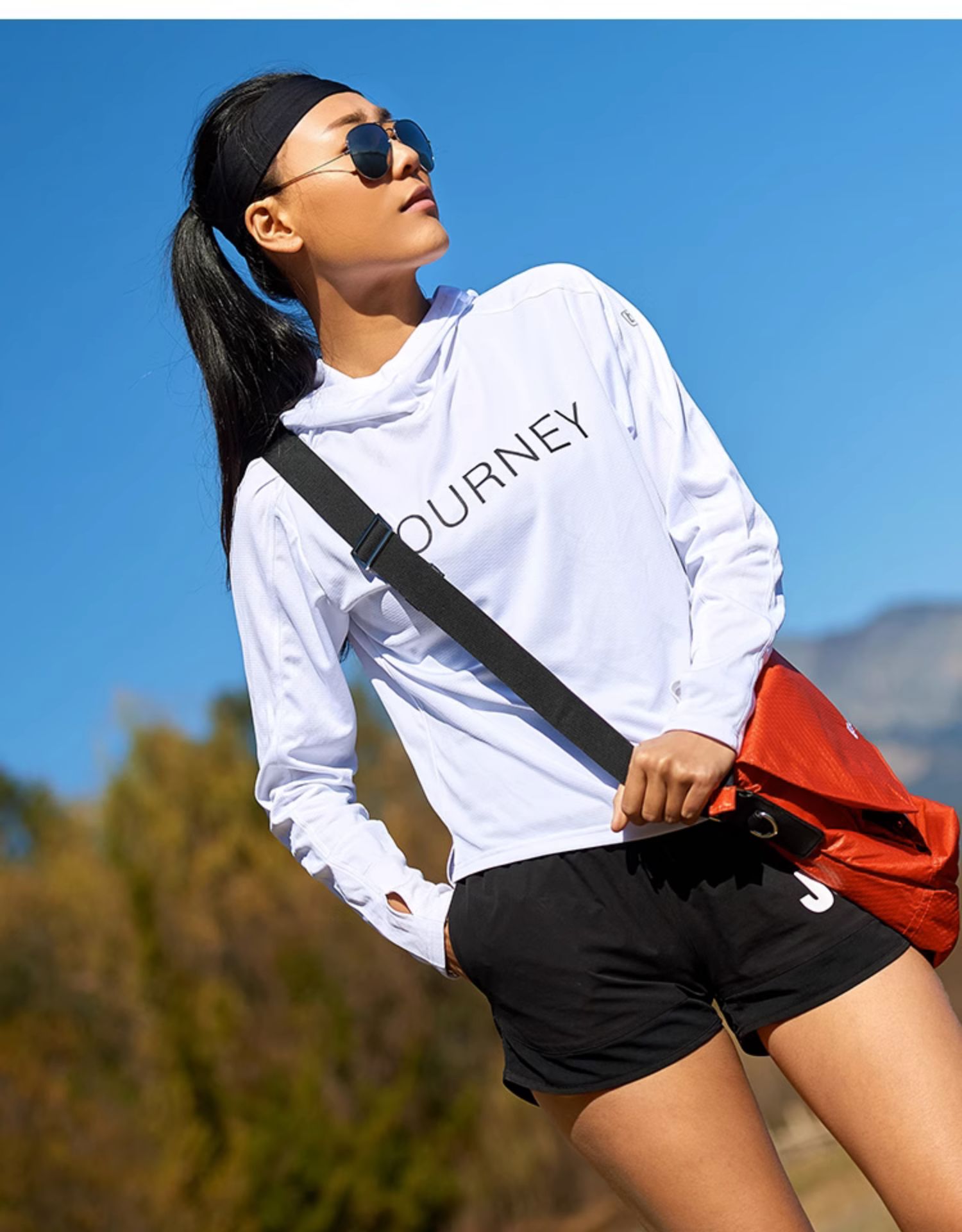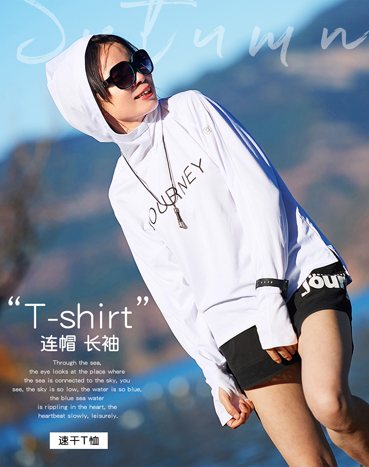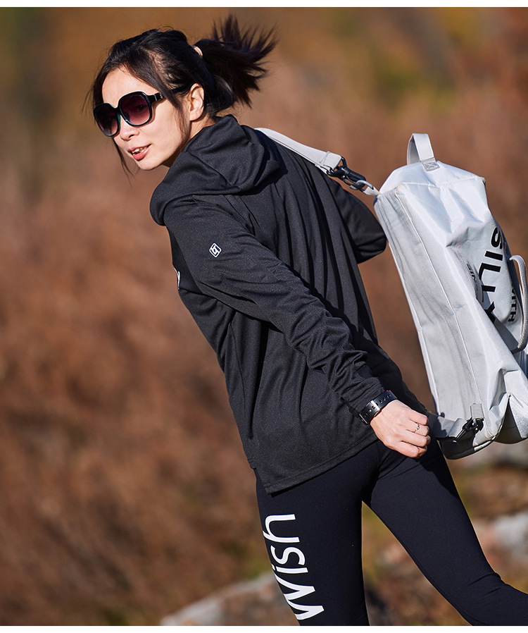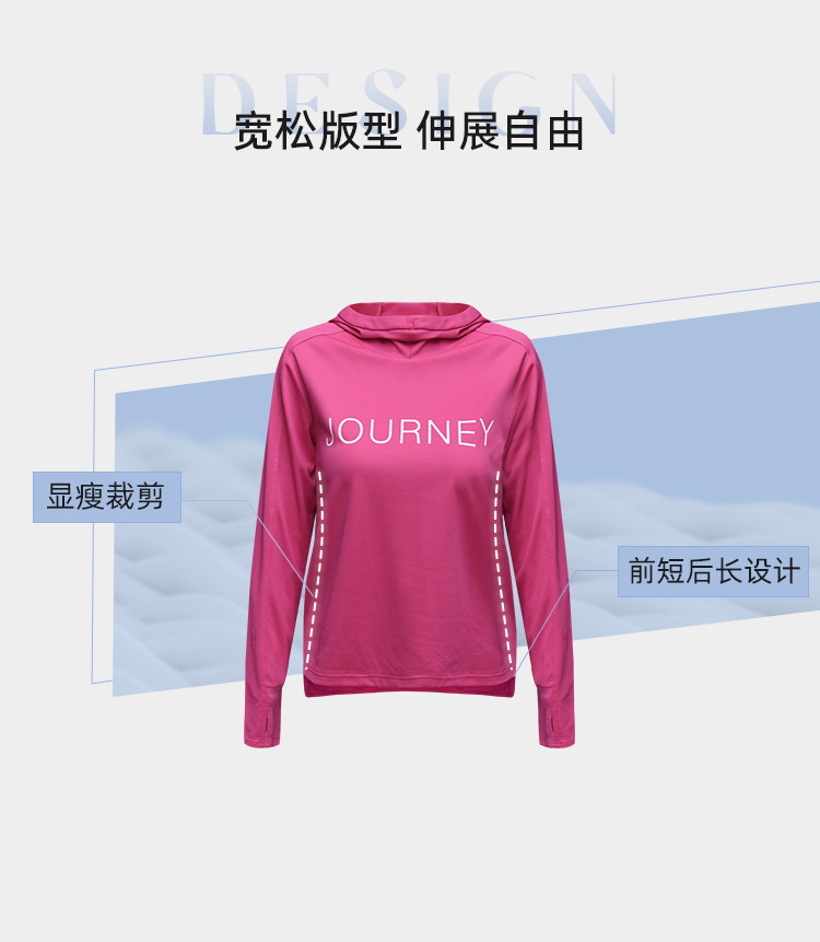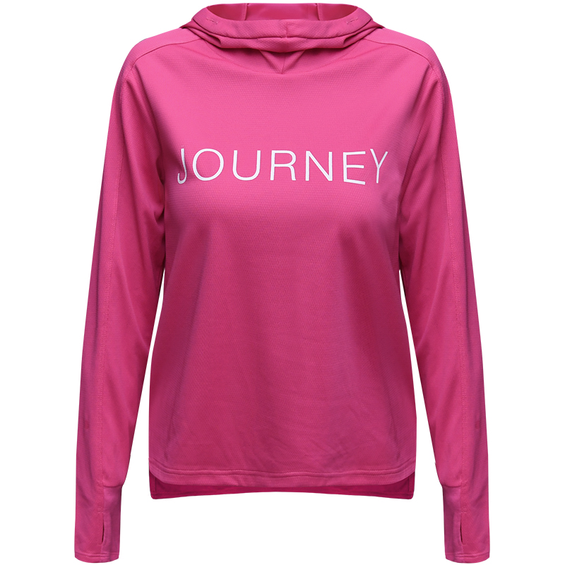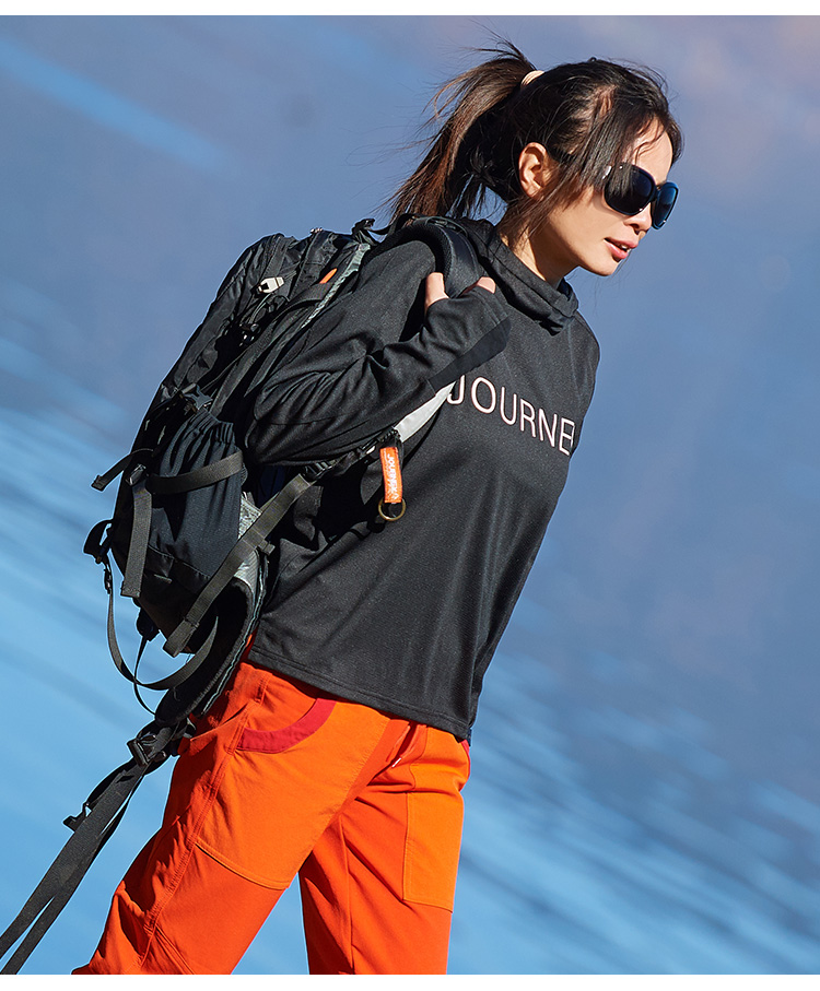 北京森林戶外旅行新品寬鬆休閒彈力跑步連帽速乾T恤長袖上衣女式