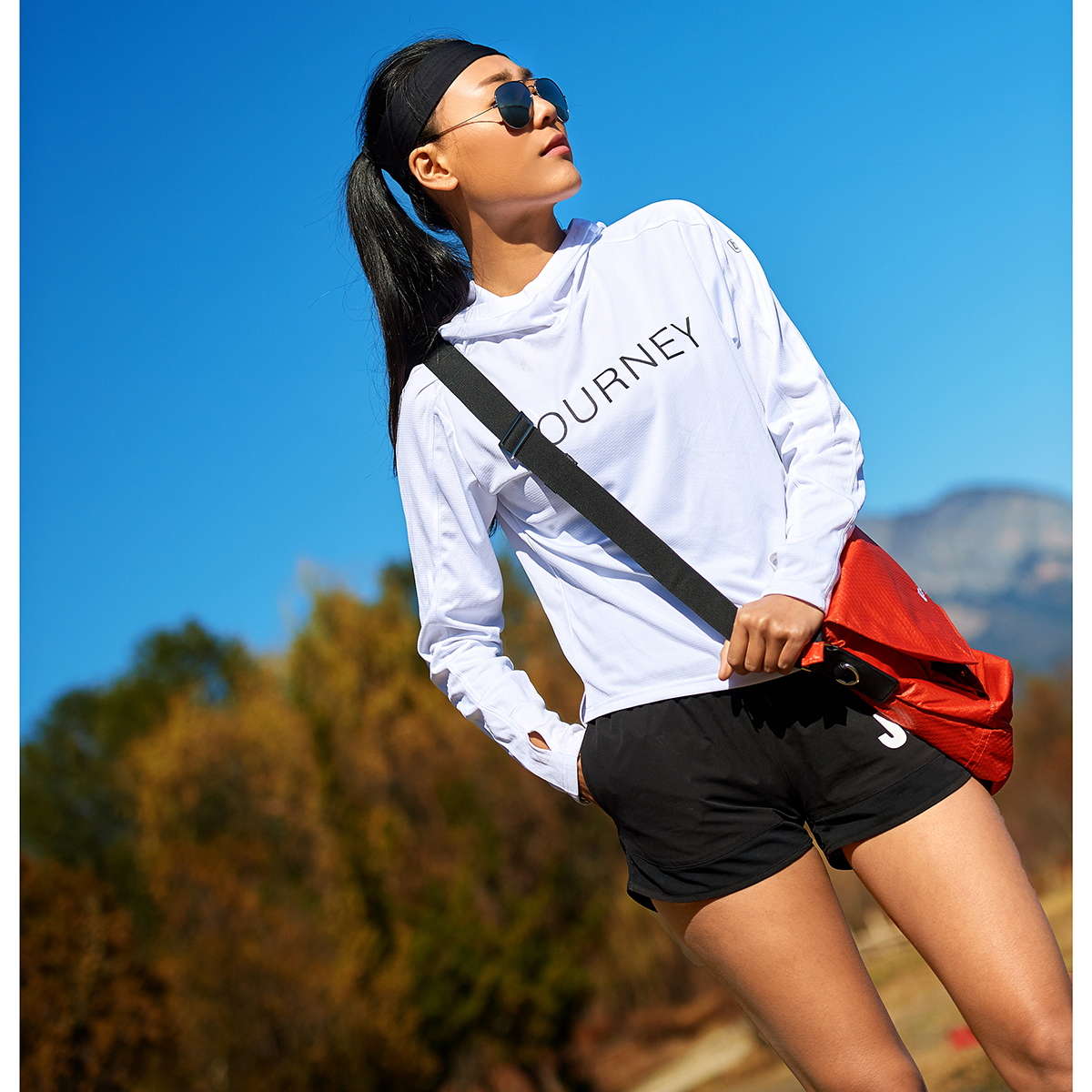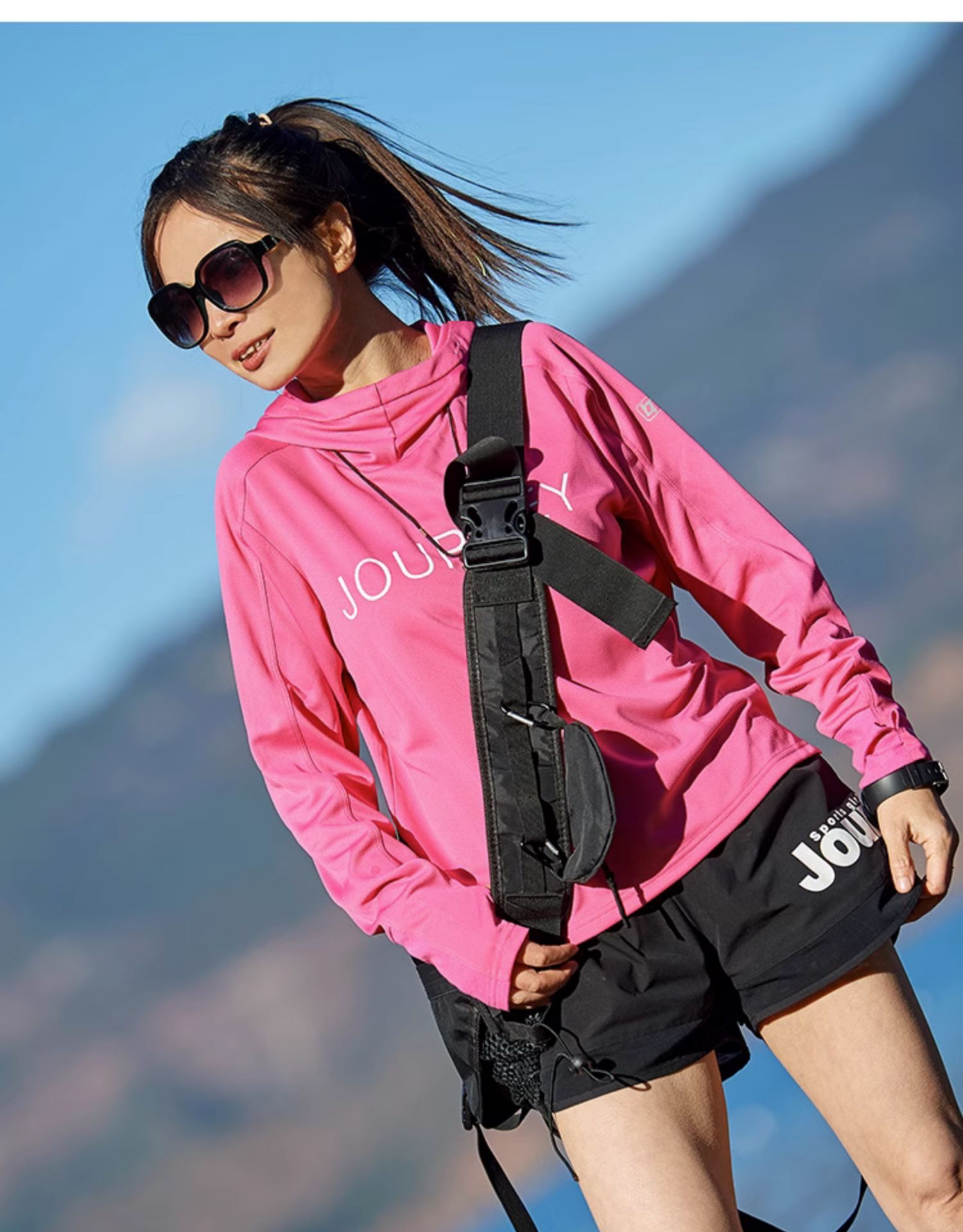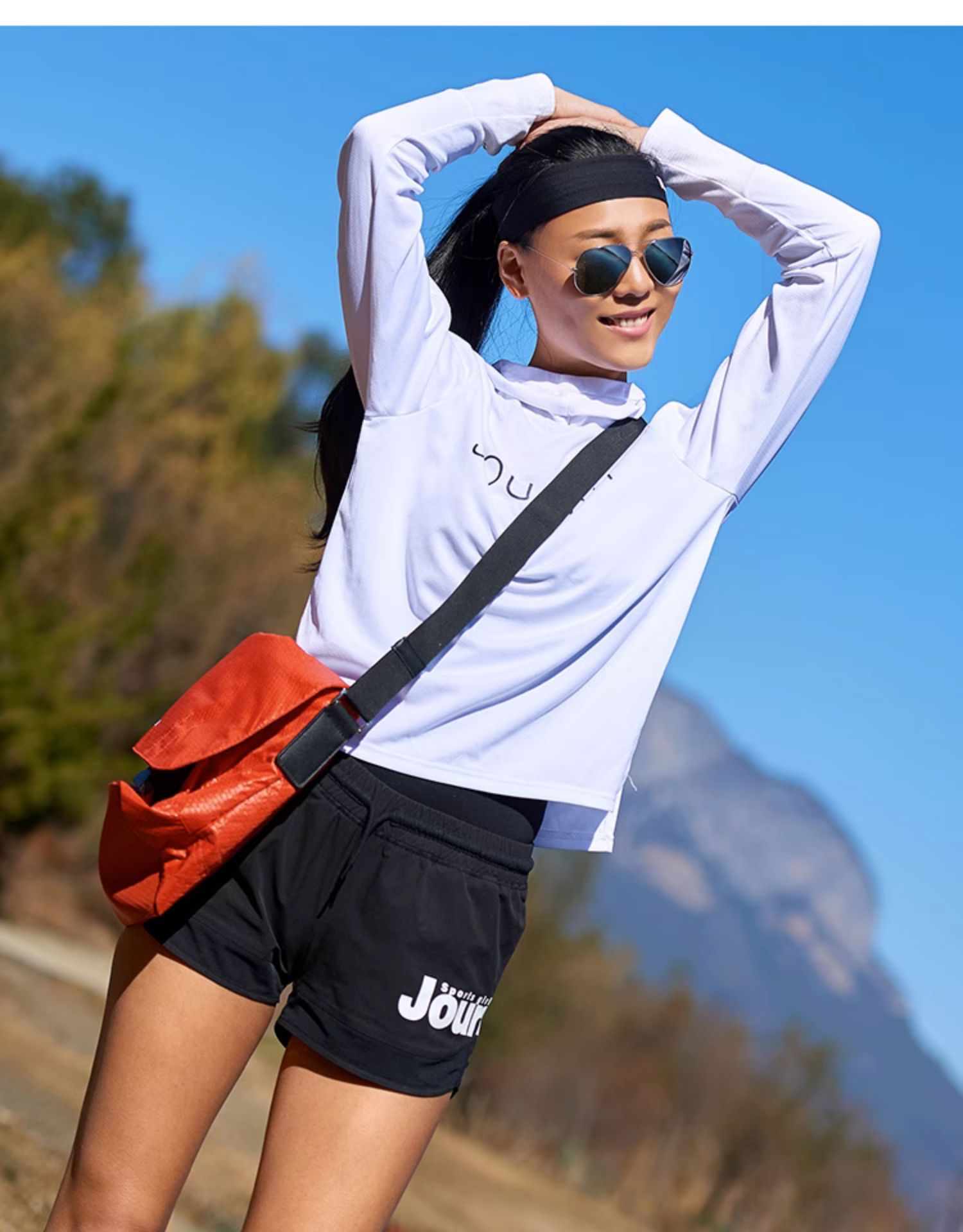北京森林戶外旅行新品寬鬆休閒彈力跑步連帽速乾T恤長袖上衣女式