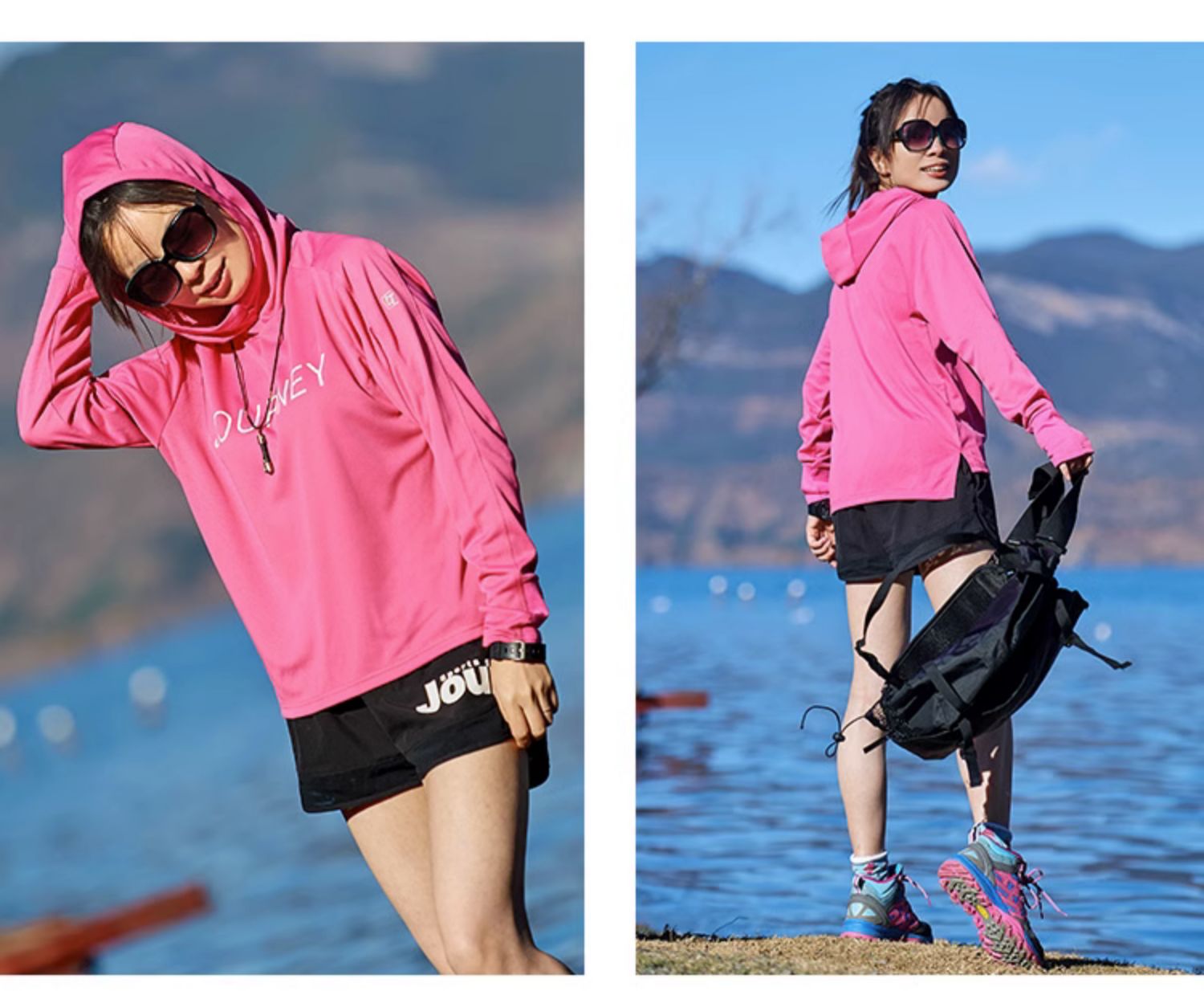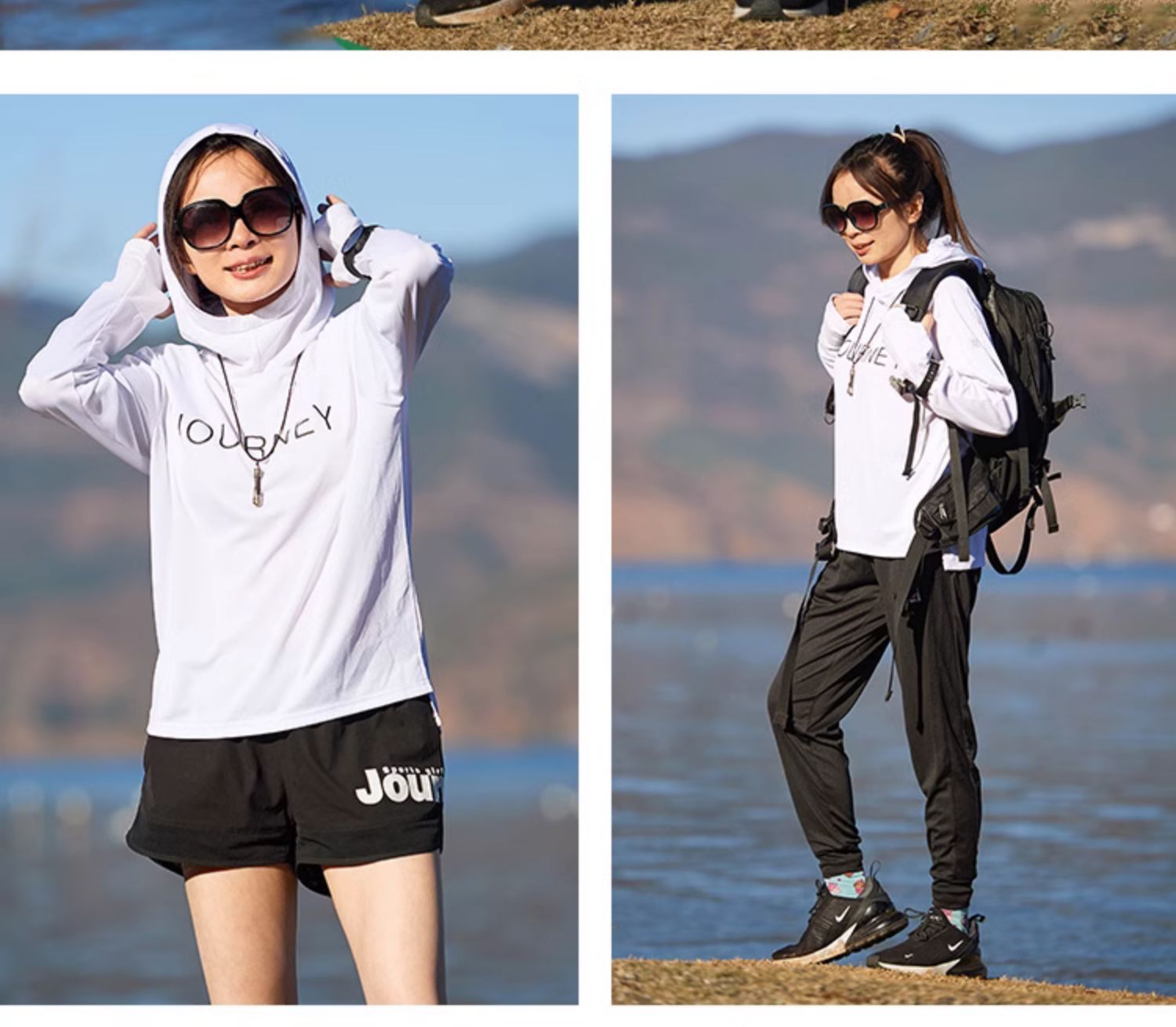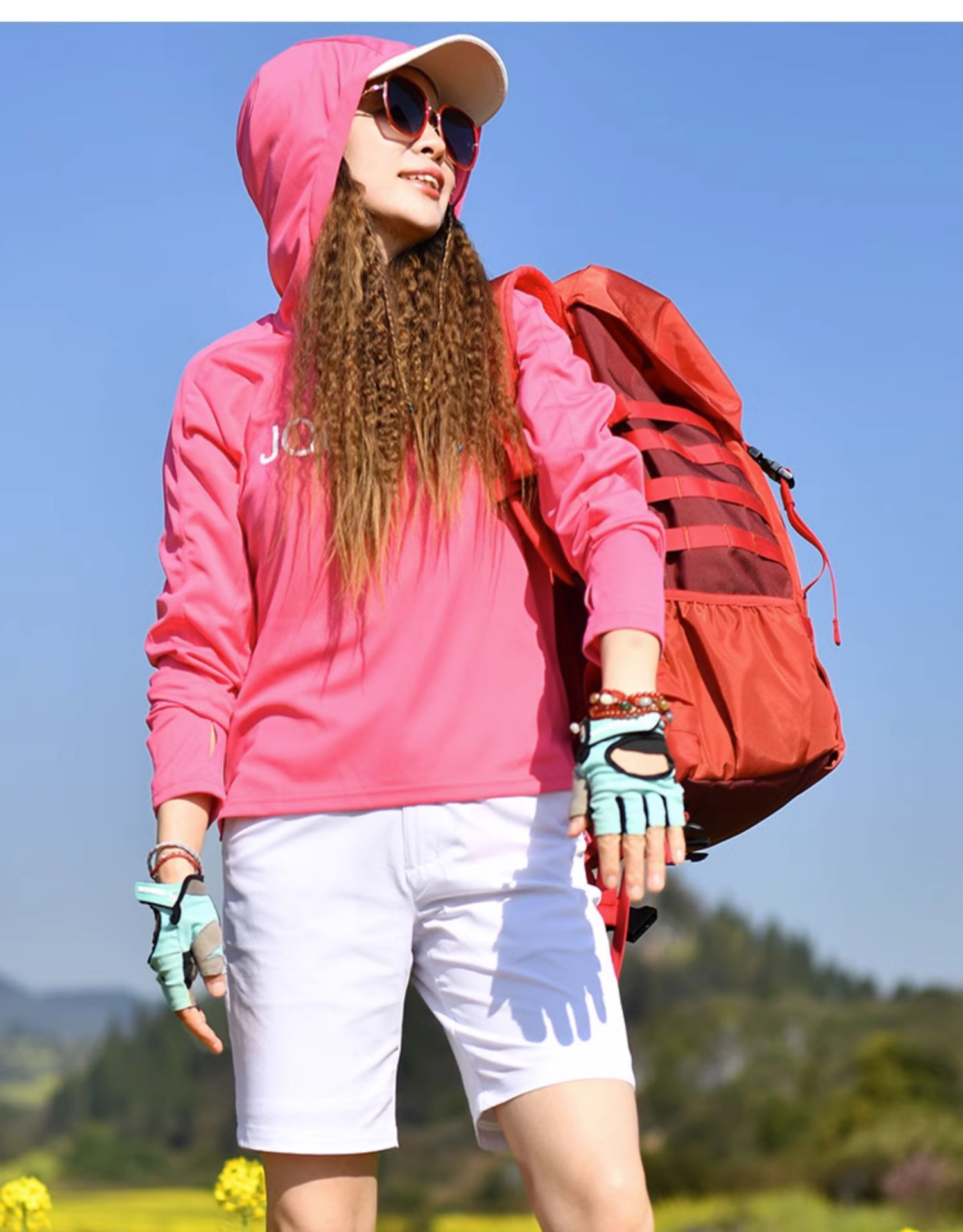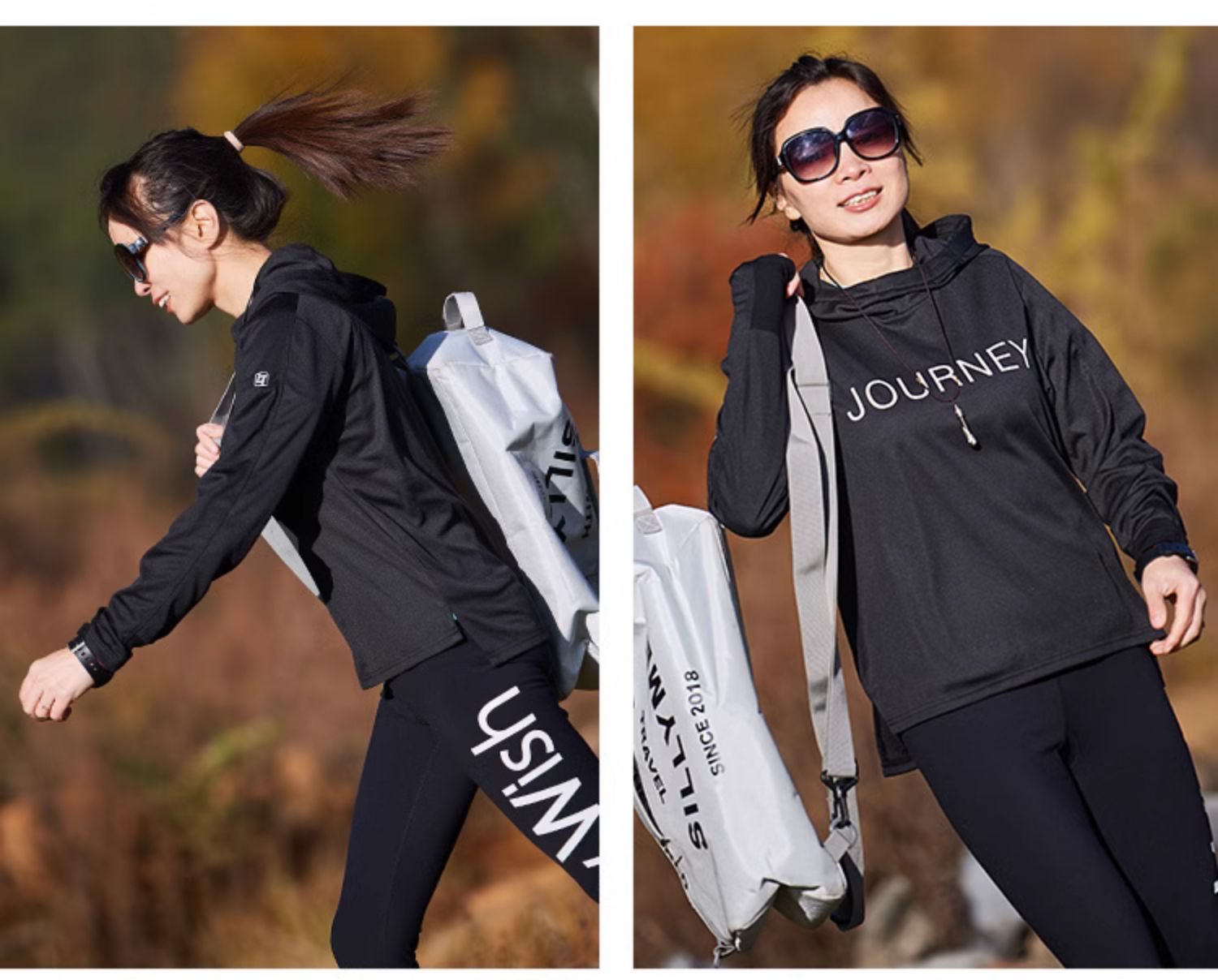 北京森林戶外旅行新品寬鬆休閒彈力跑步連帽速乾T恤長袖上衣女式