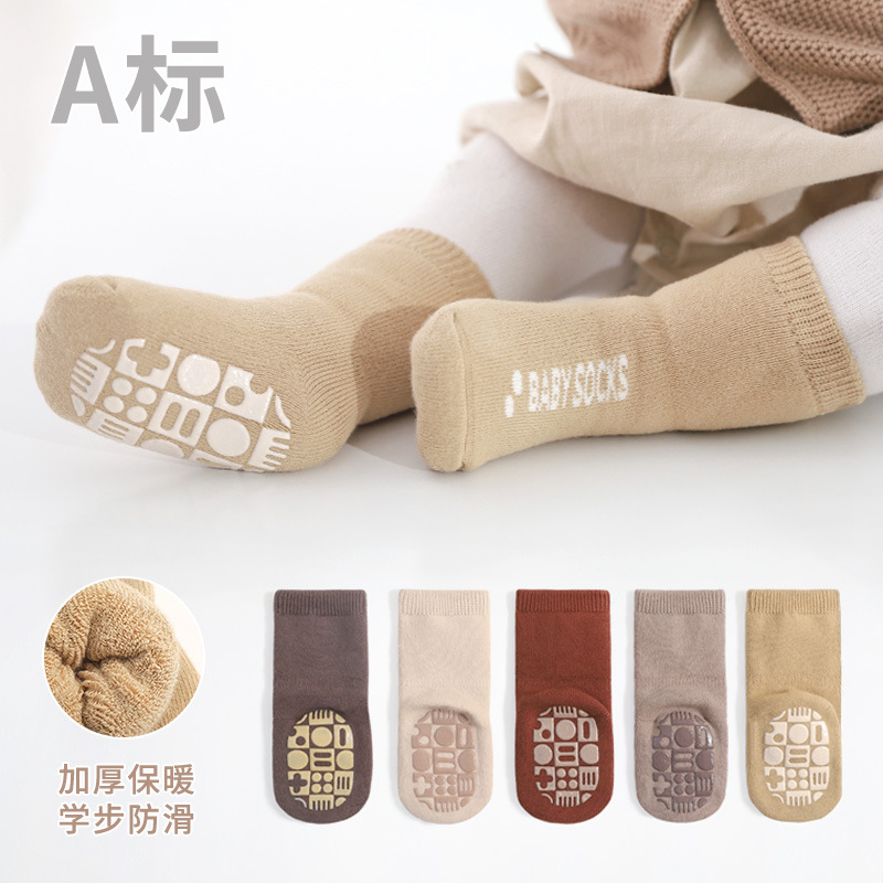 秋冬婴儿地板袜新生儿宝宝袜几何防滑学步袜精梳棉男女儿童中筒袜