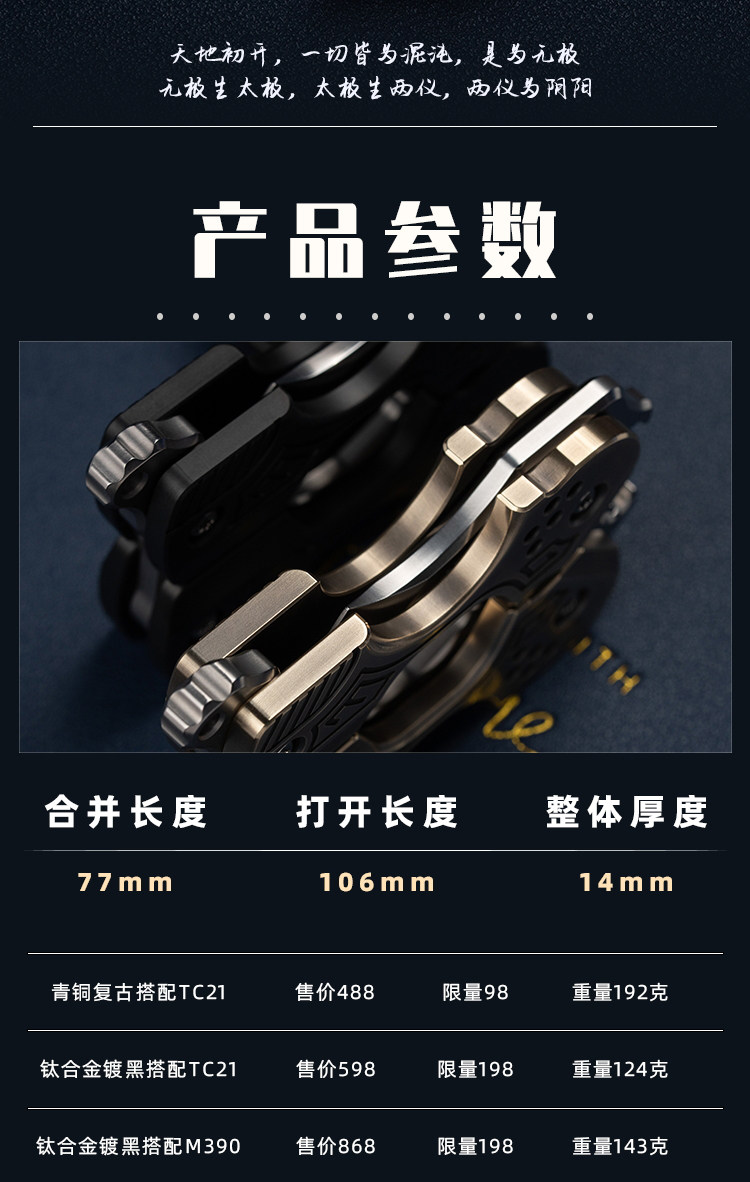 顏色分類 青銅配TC21 兩儀,鈦合金鍍黑配TC21 兩儀,鈦合金鍍黑配M390 兩儀