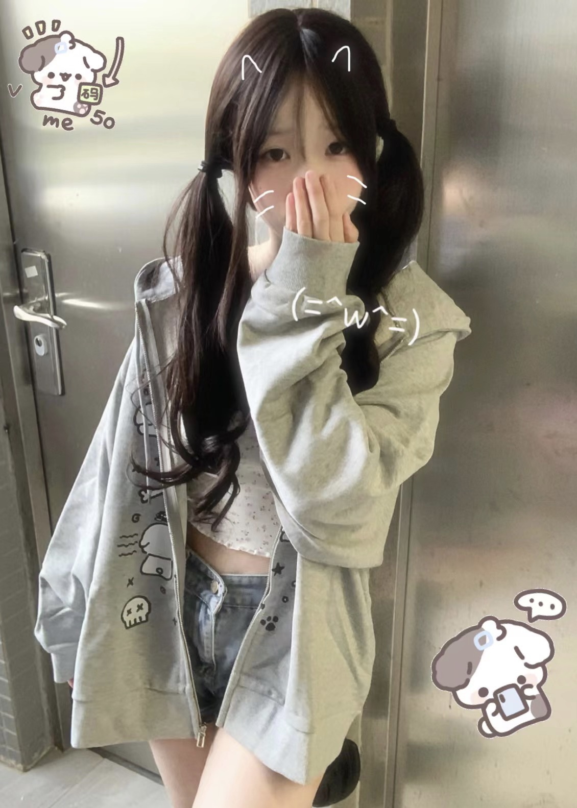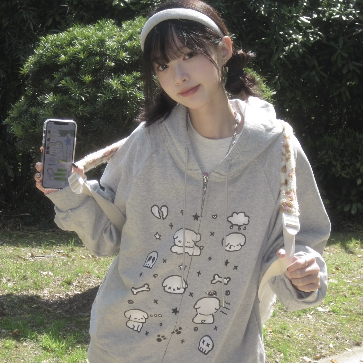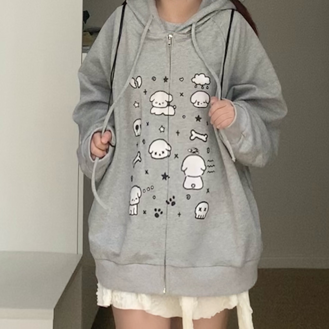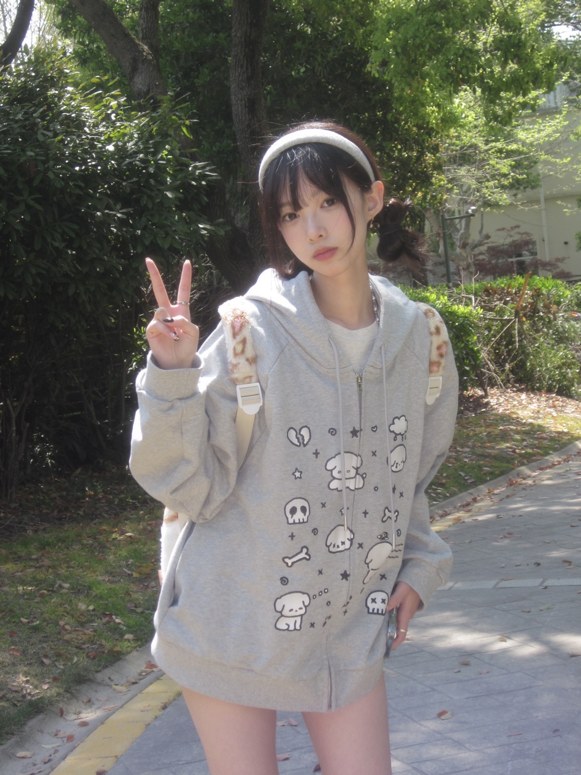 梨屋PEARHOUSE 原創 心碎小狗 連帽寬鬆2023春秋新款純棉外套女