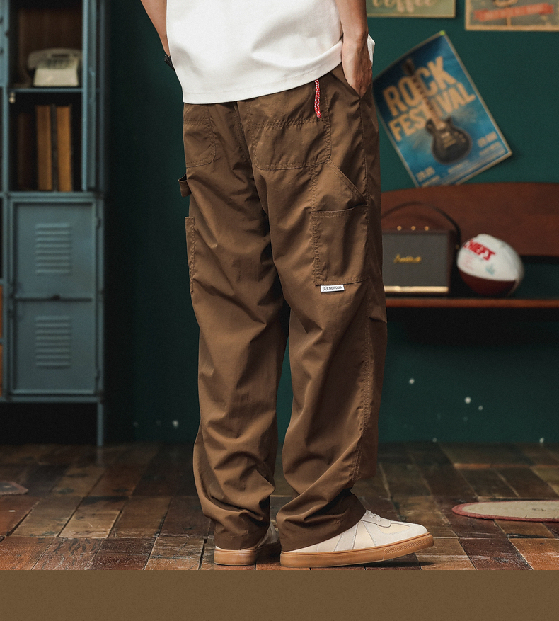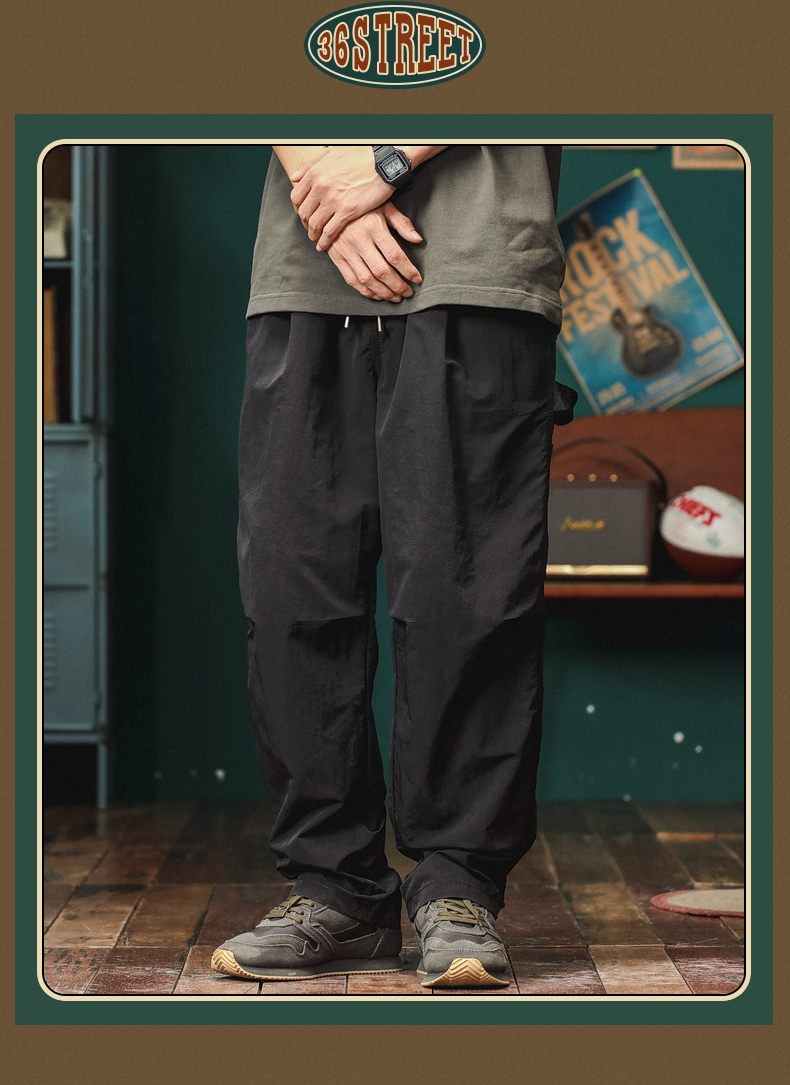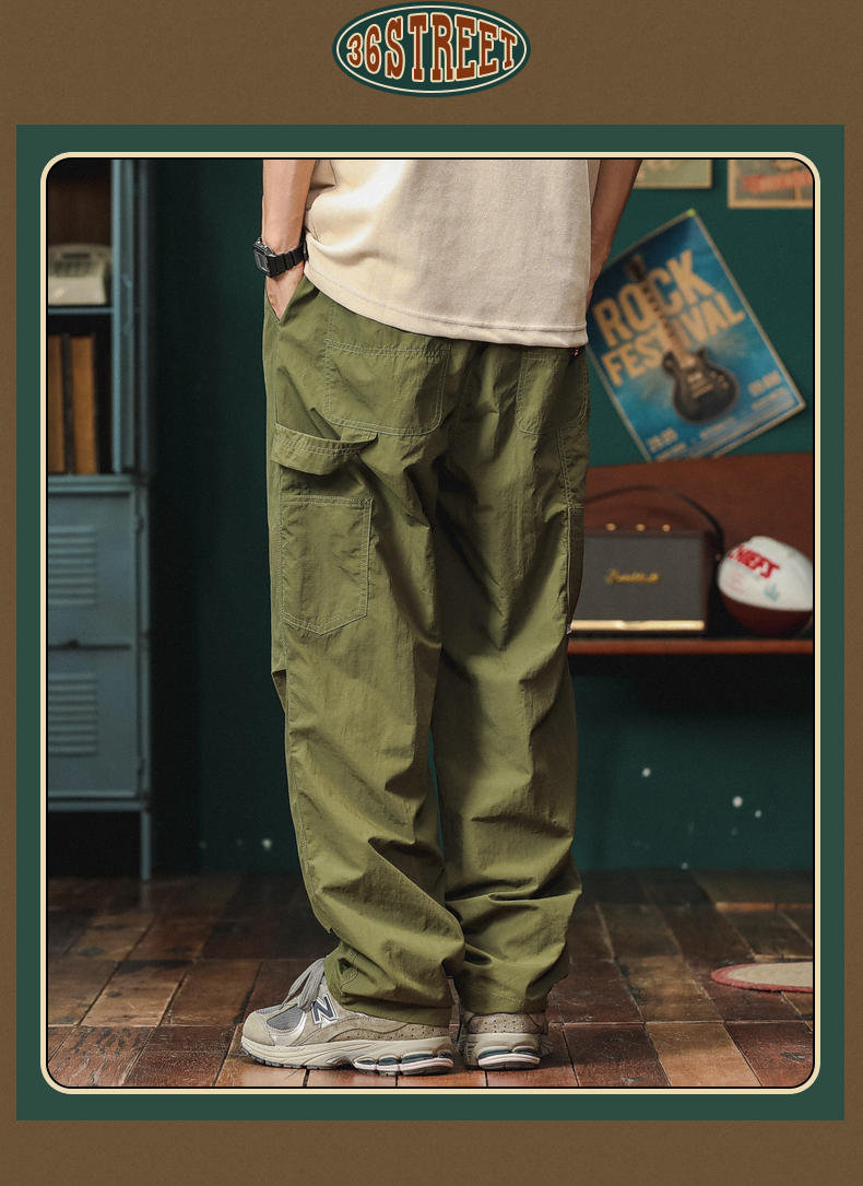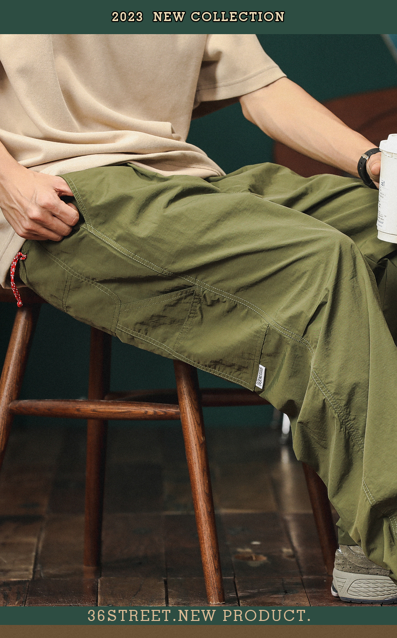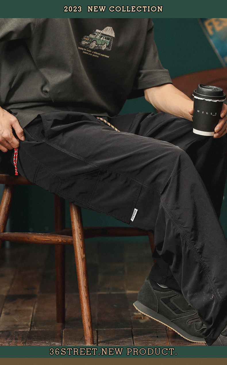 日系潮牌戶外露營衝鋒褲男薄款速乾工裝褲防潑水秋季直筒休閒長褲